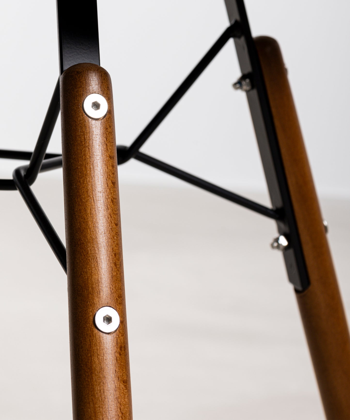 Its legs are made of high-quality beech wood in a walnut finish that, combined with black chrome-plated steel rods, make it an elegant, stylish and very functional chair.