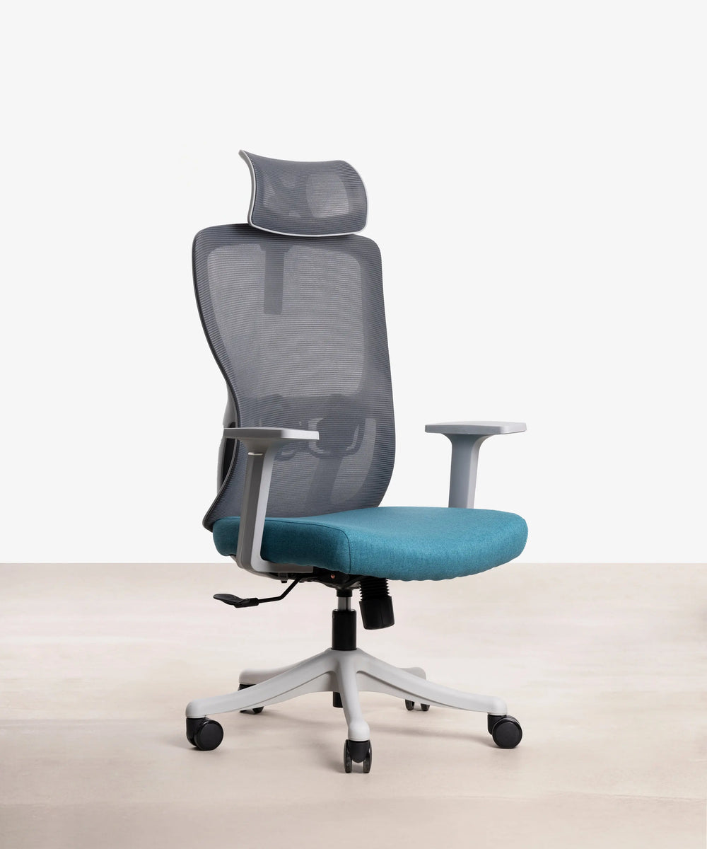 It combines a sturdy frame made of high-quality polypropylene with a soft polyester mesh backrest and a comfortable fabric seat. Ergonomic desk chair with lumbar support for correct posture.