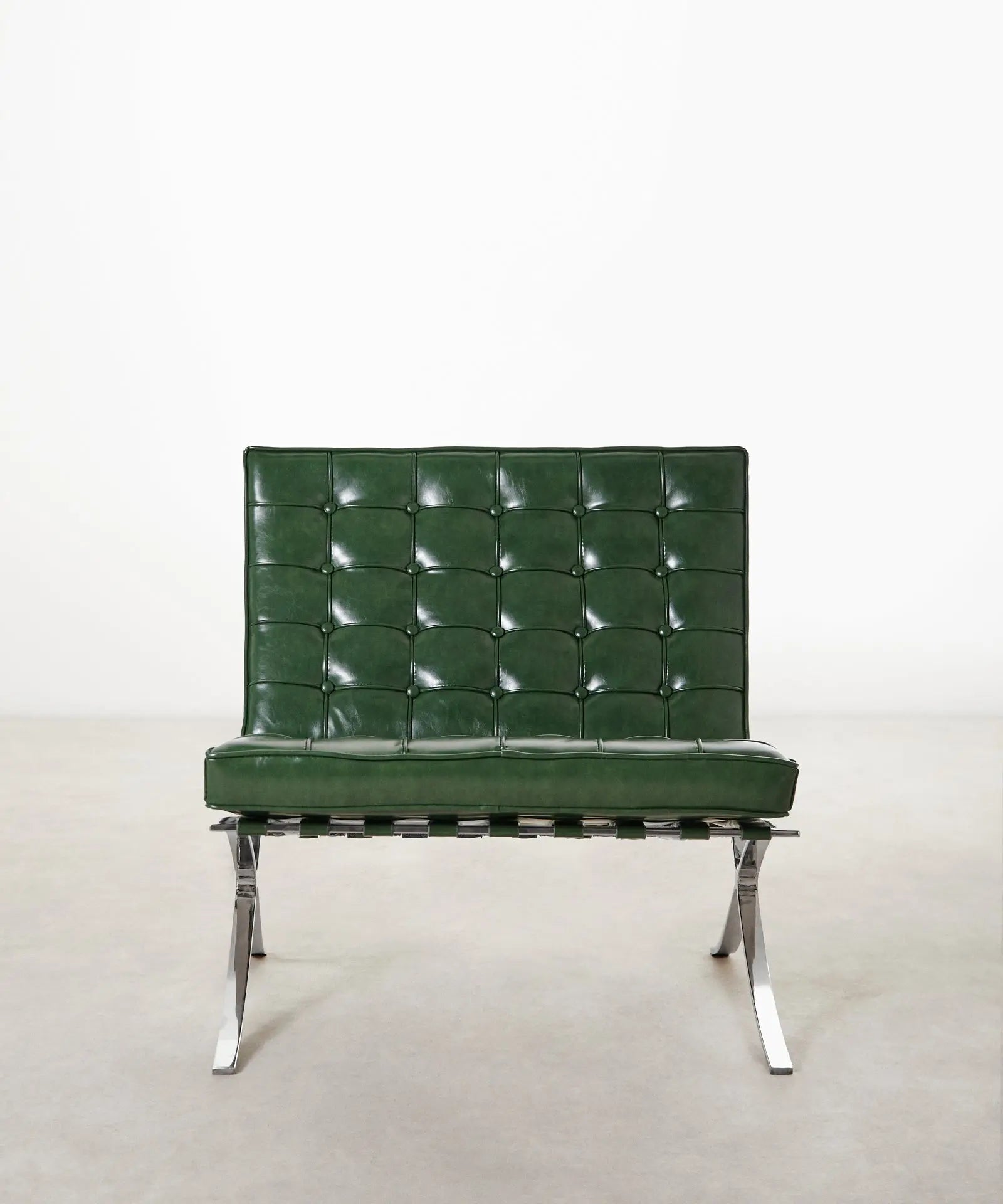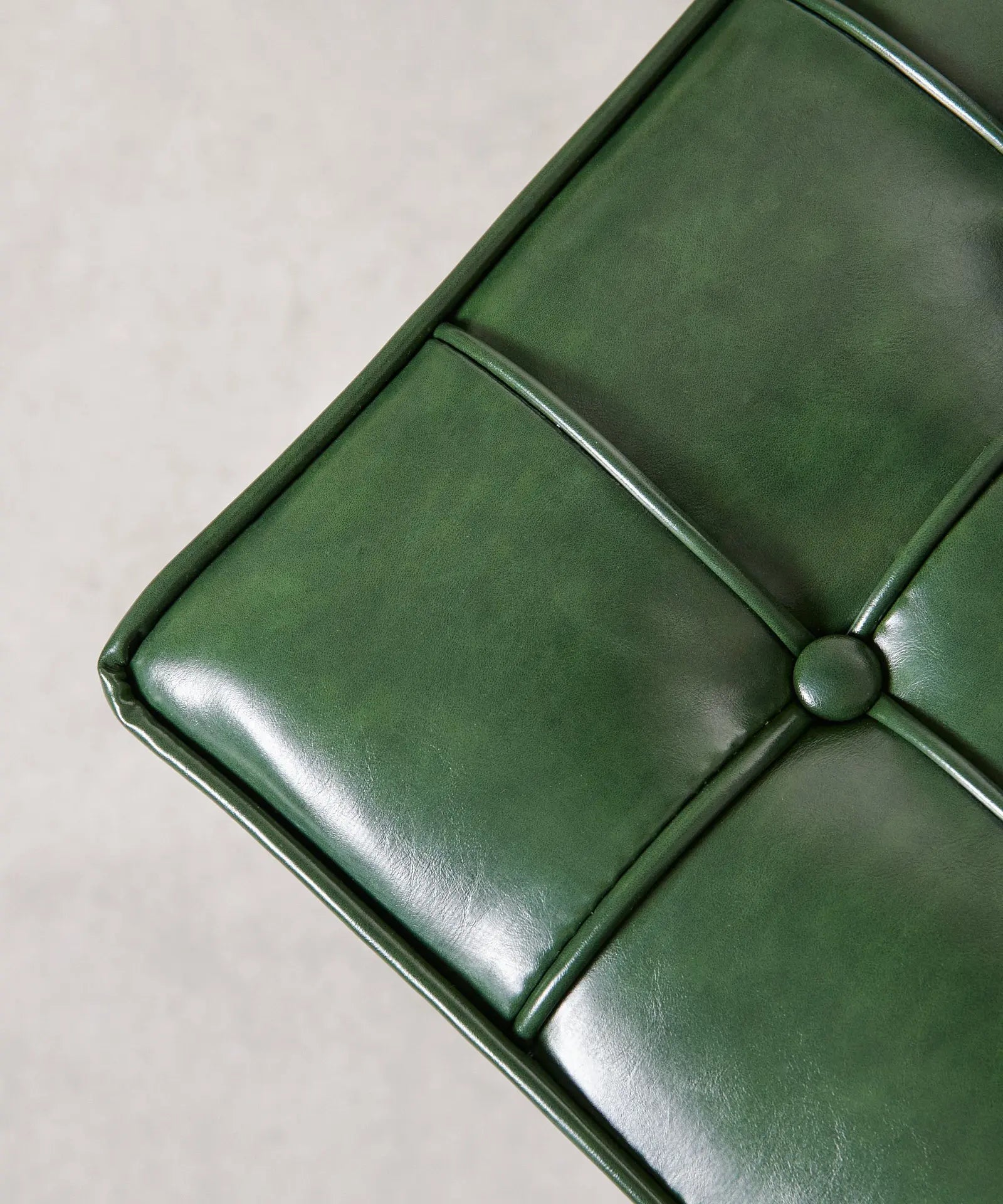The upholstery is made from high-quality, durable faux leather. The buttons are hand-stitched using the original technique.