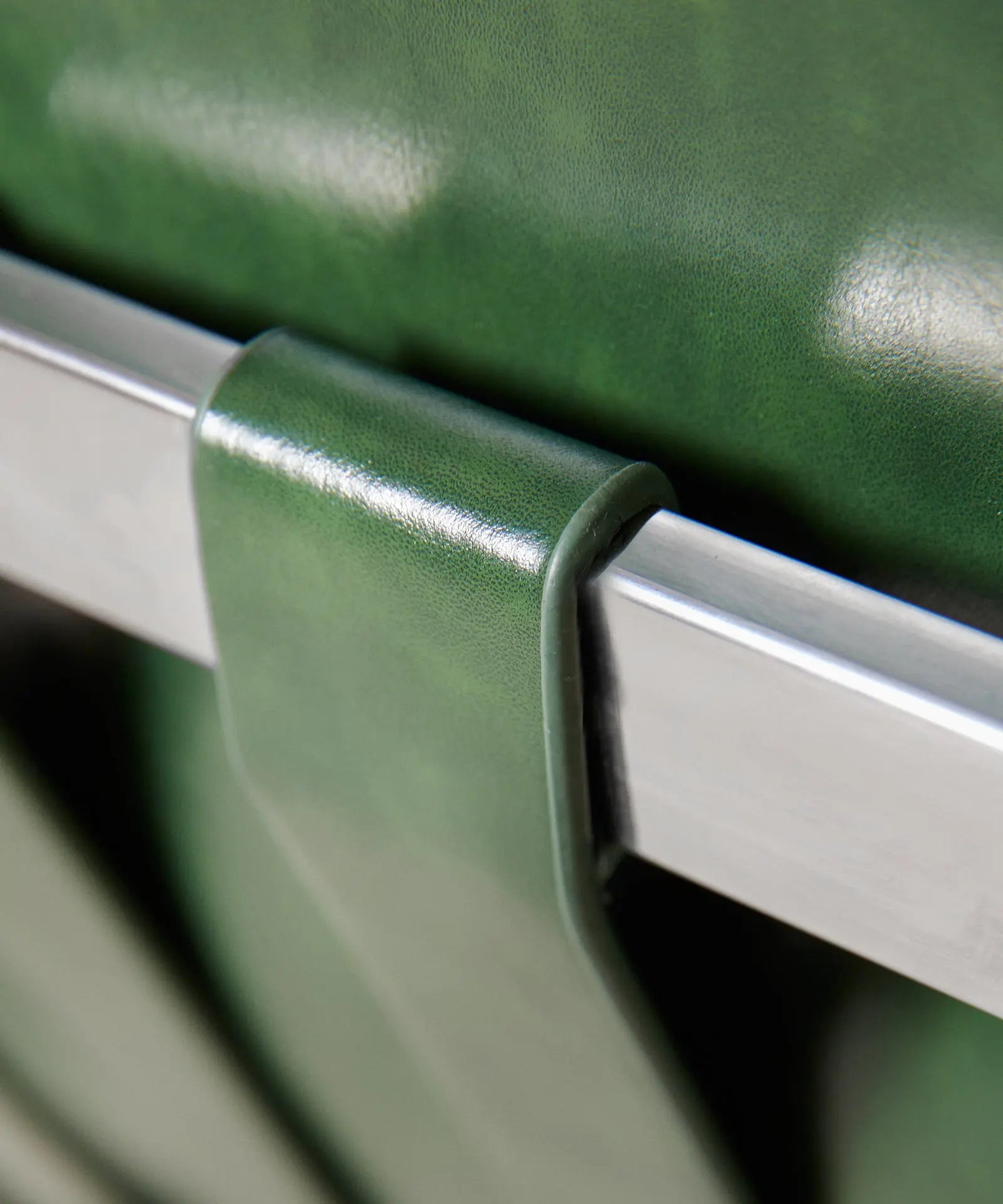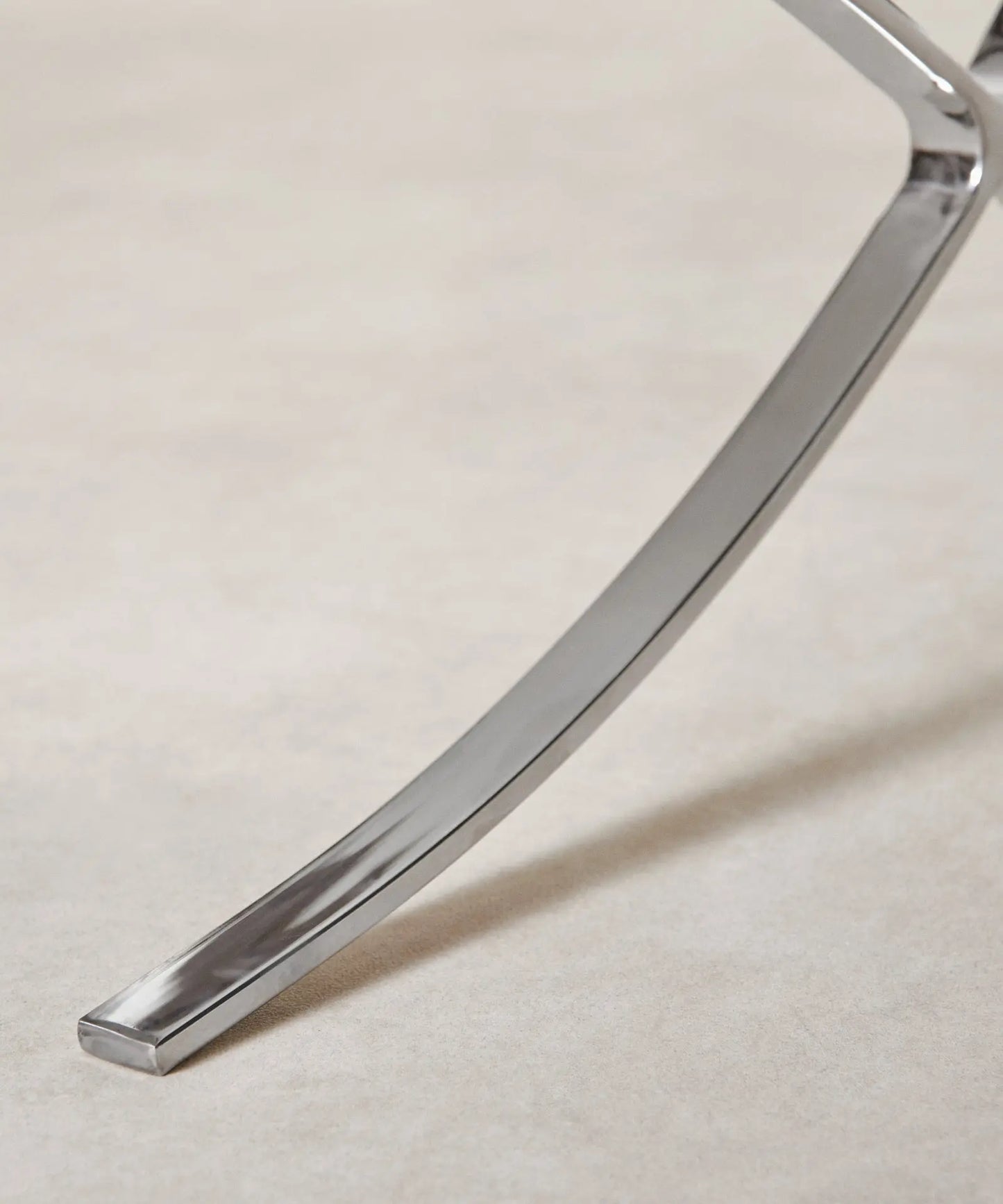 The Seline chair in faux leather is made from robust piece of polished, chrome-plated stainless steel, 12 mm thick, making it an incredibly comfortable and durable chair.
