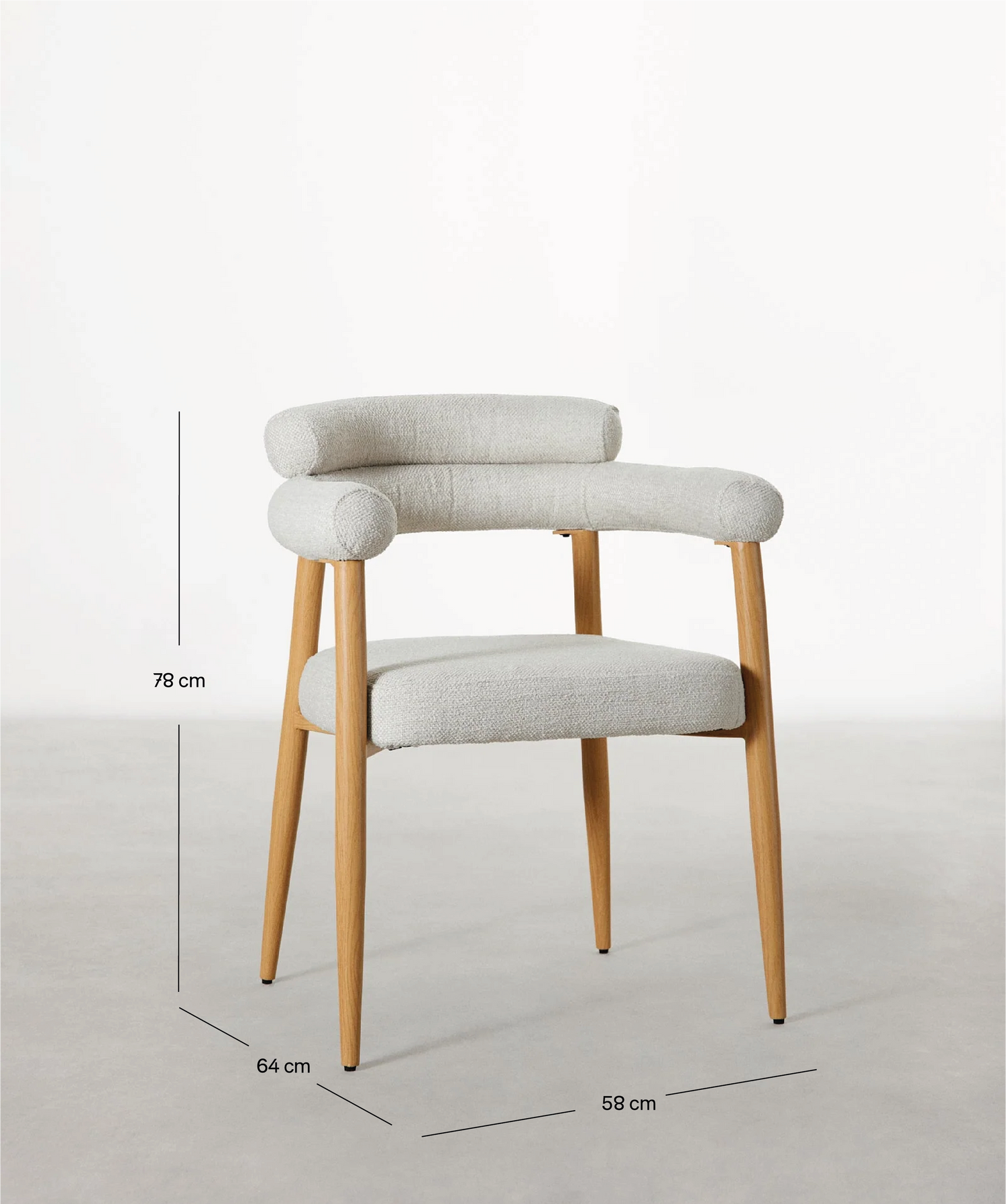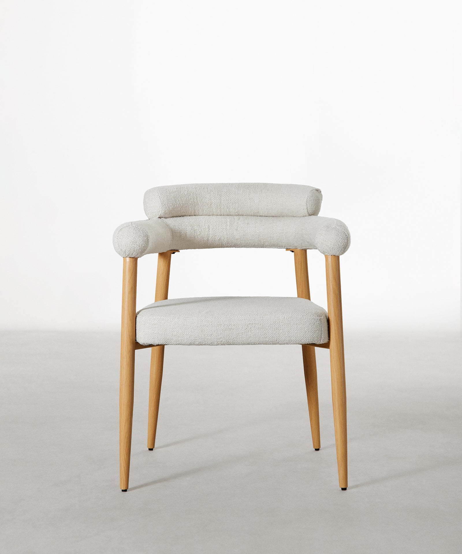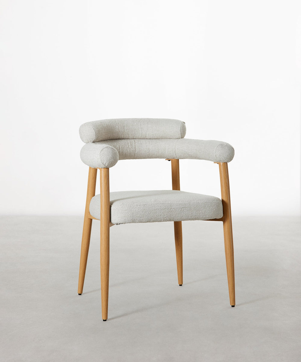 The Serena Chair combines a contemporary design with the elegance of natural materials. Its metallic structure adds warmth and sophistication, while the upholstered seat and backrest offer a harmonious and versatile contrast that adapts to different decorative styles.