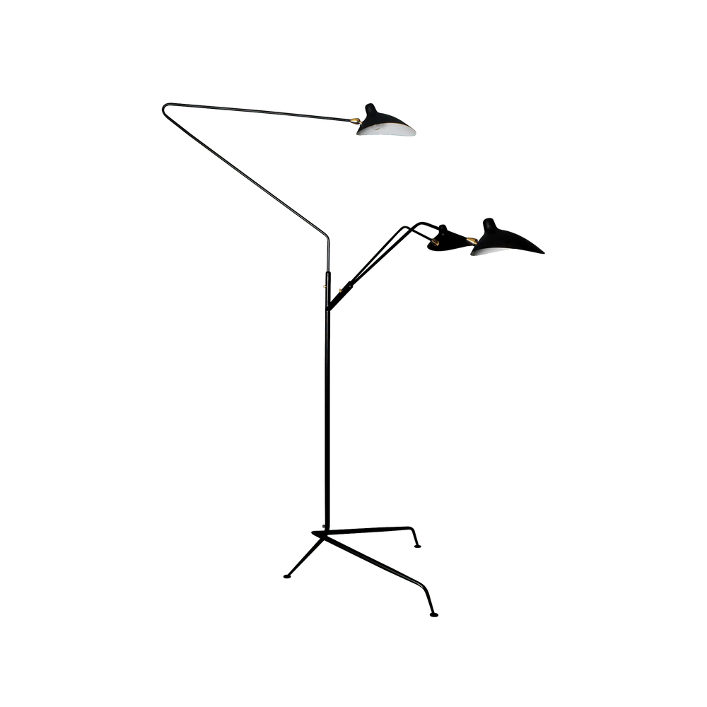 Cette pièce est en acier au carbone avec une finition à effet mat. C'est une lampe simple et élémentaire composée de trois bras rigides avec des abat-jours réglables. Vous pourrez éclairer la zone et rediriger facilement le foyer de la lumière!