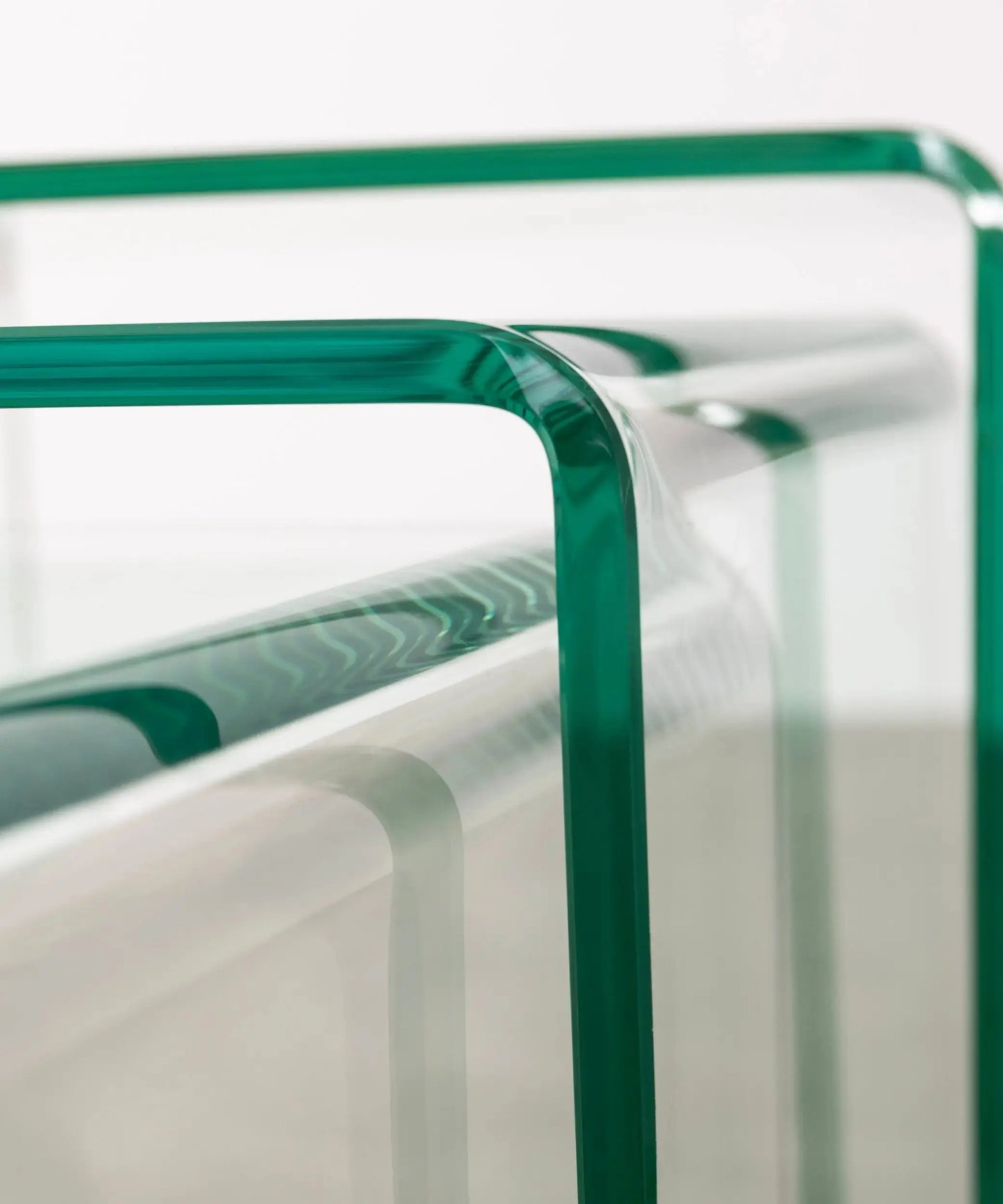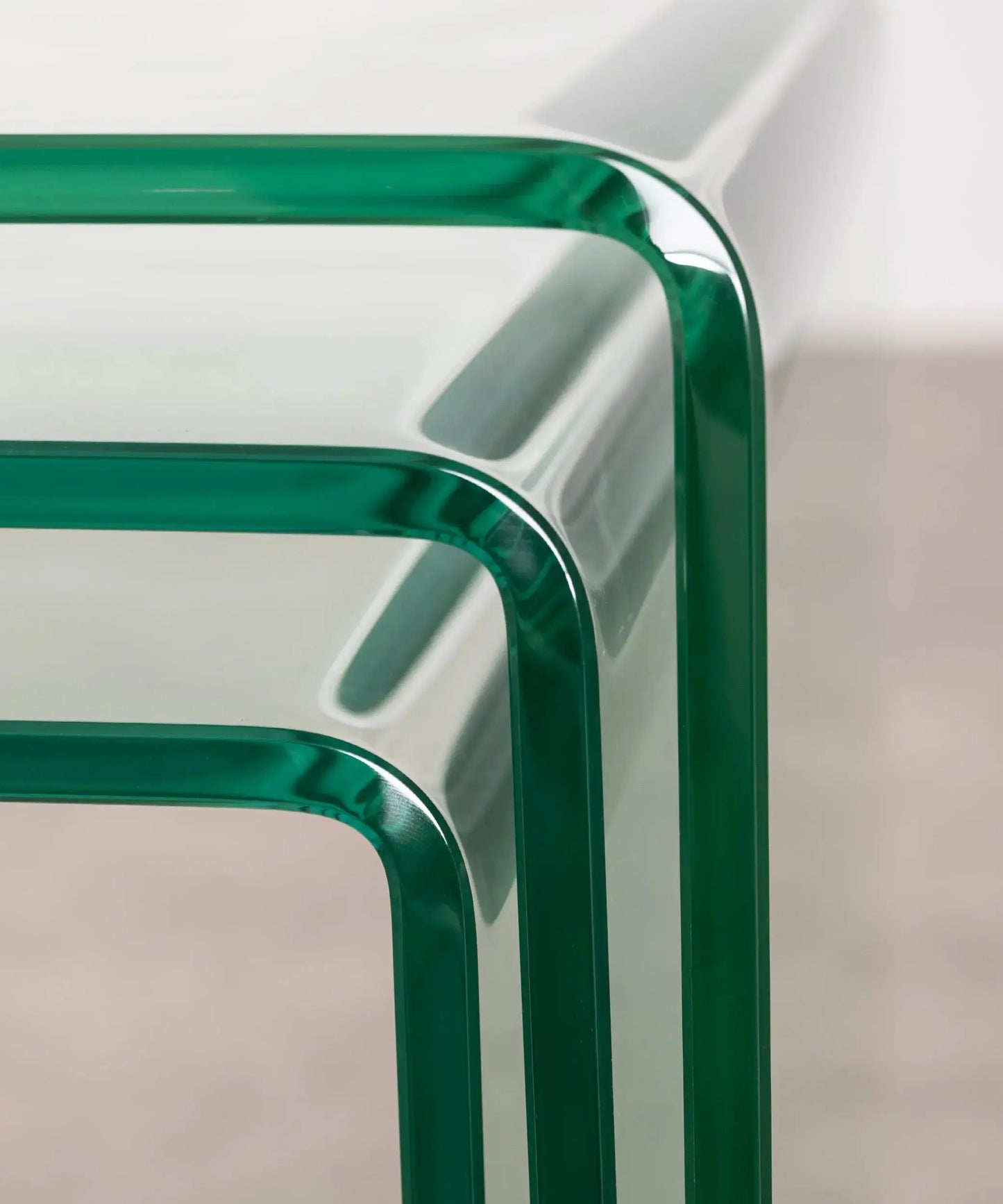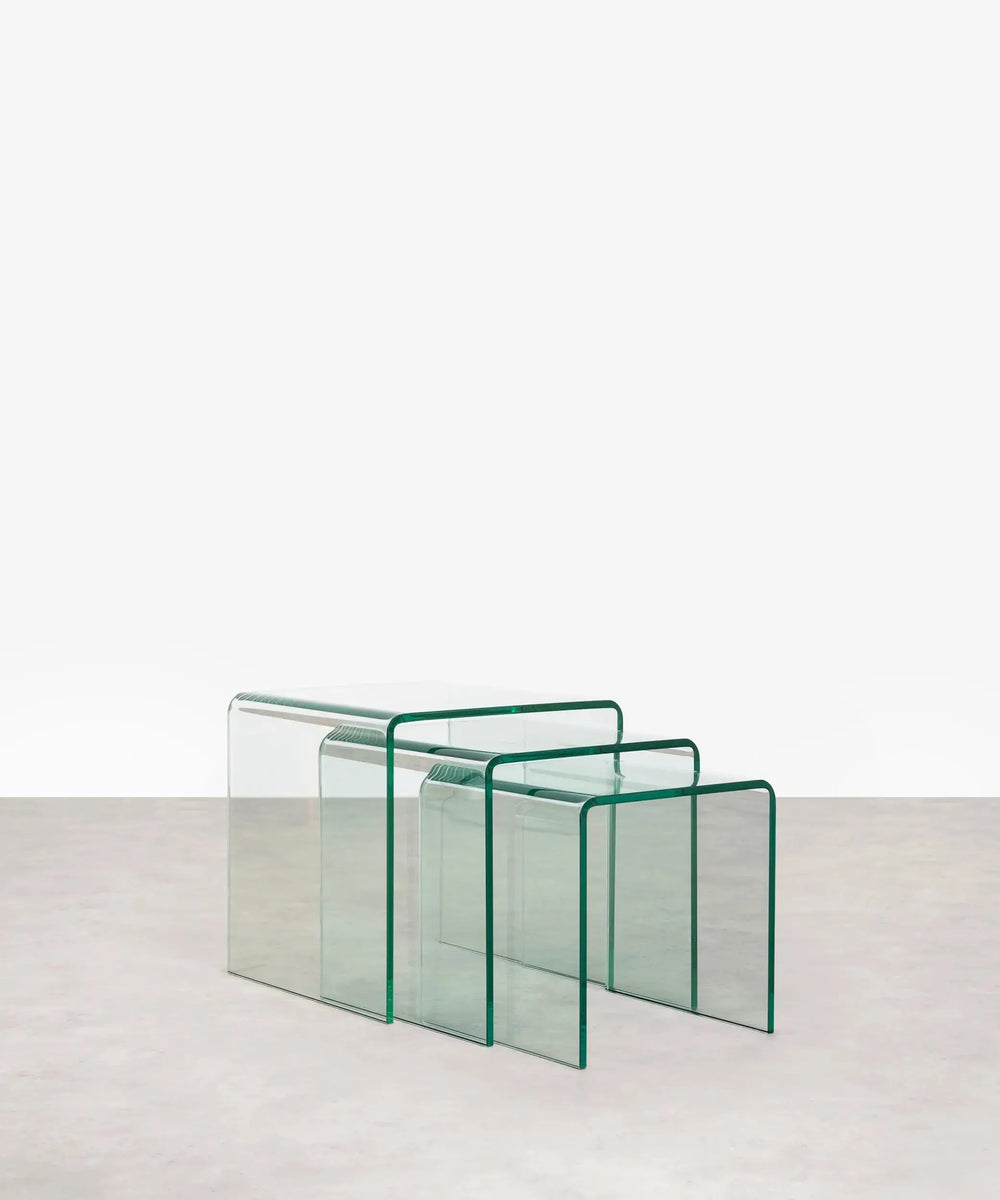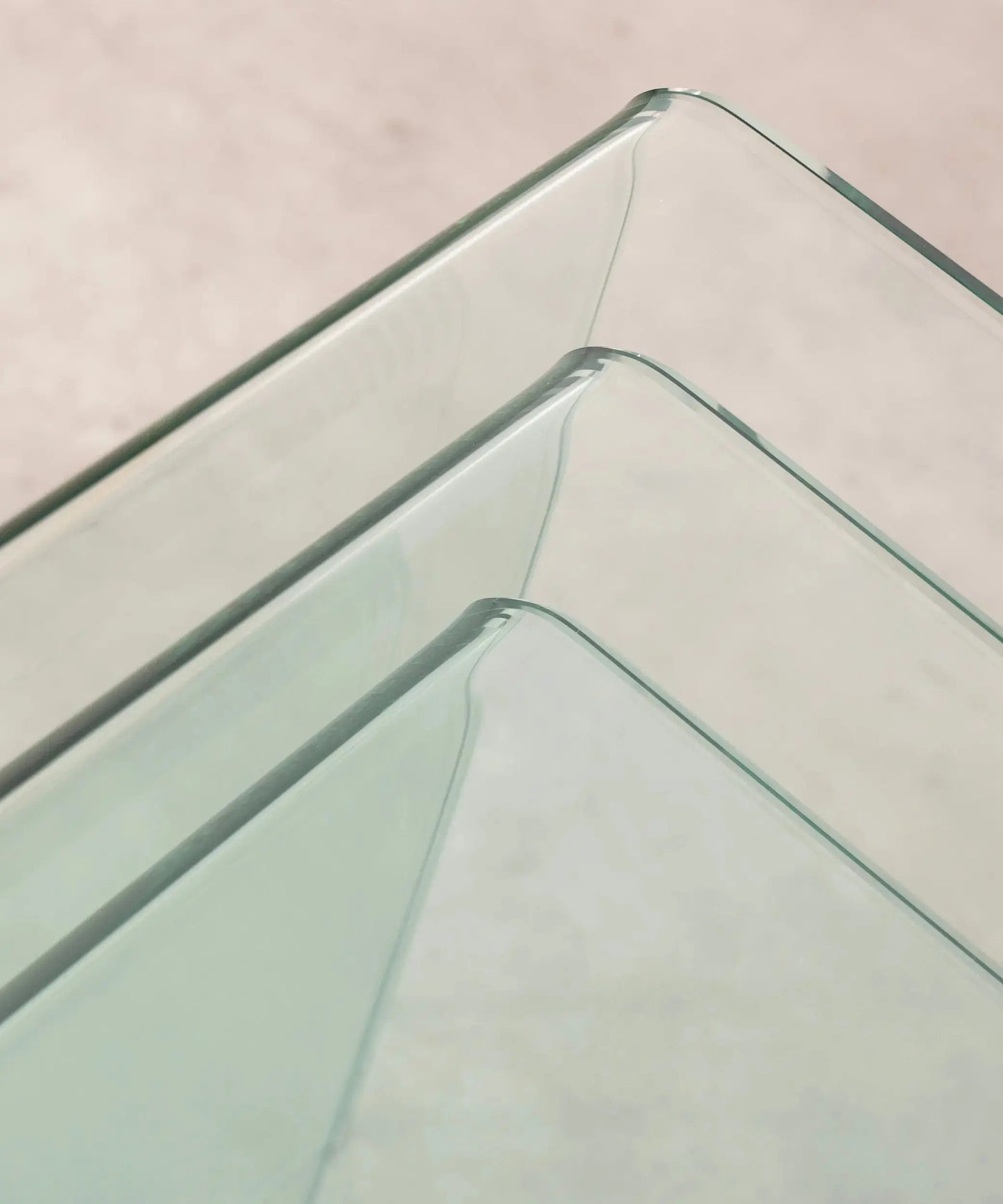 Voici le nouveau set de tables gigognes Vulcano, un ensemble de 3 tables d'appoint au design nordique, entièrement réalisées en verre trempé de 12 mm d'épaisseur .
