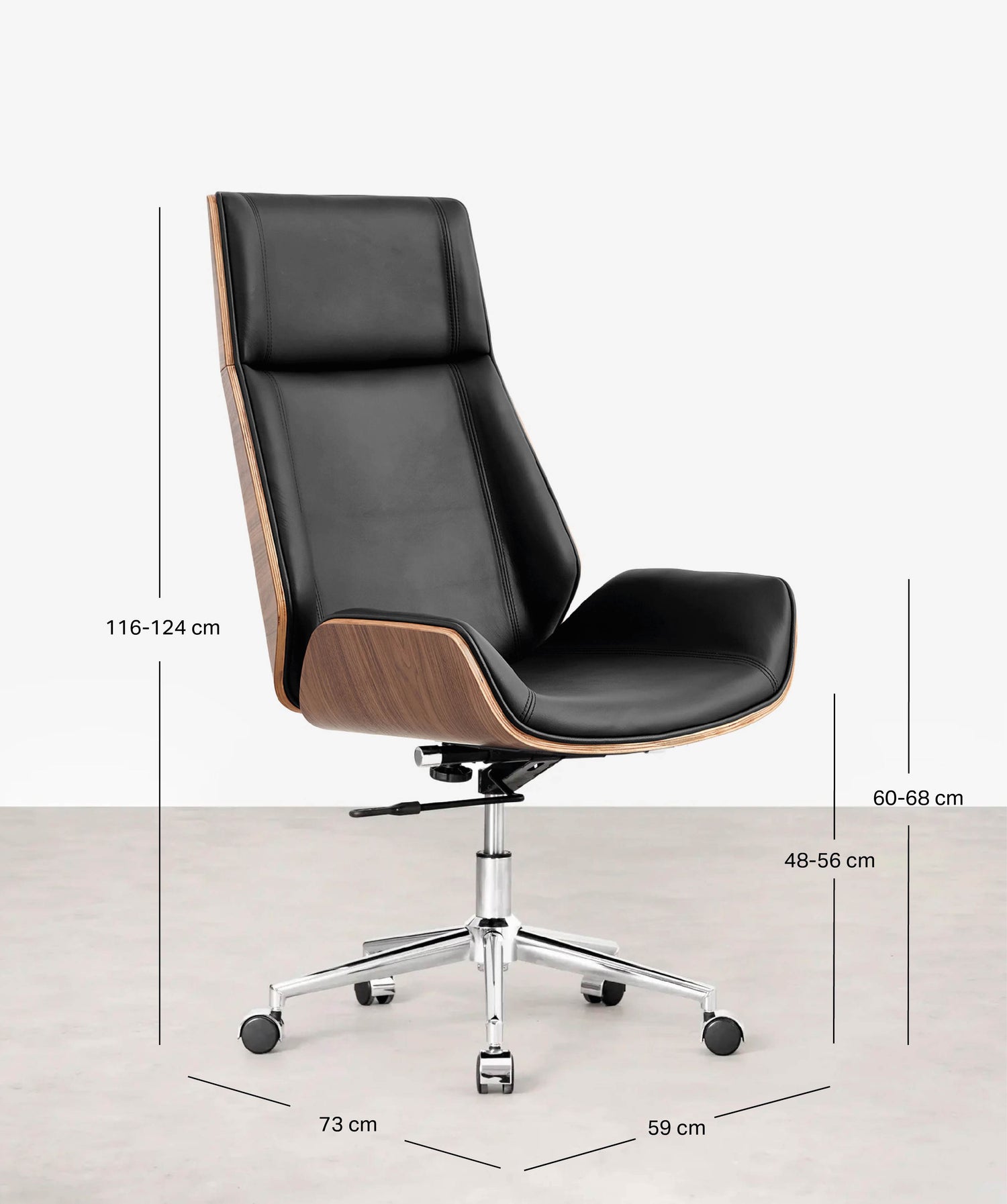 La structure de la chaise est renforcée par un cadre en bois laminé. Son dossier haut et son assise rembourrée offrent un support confortable et adapté à la posture, parfait pour de longues journées de travail.
