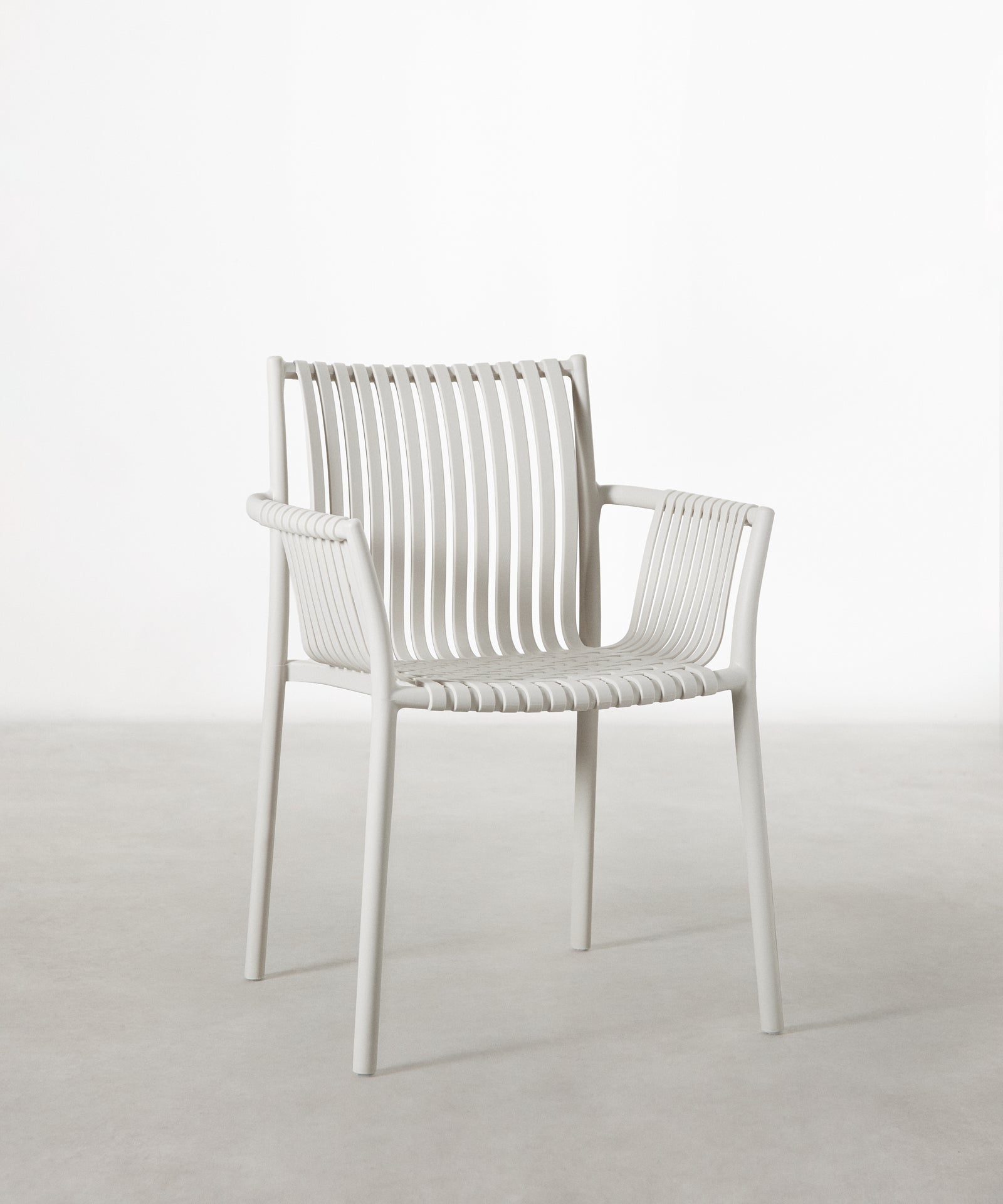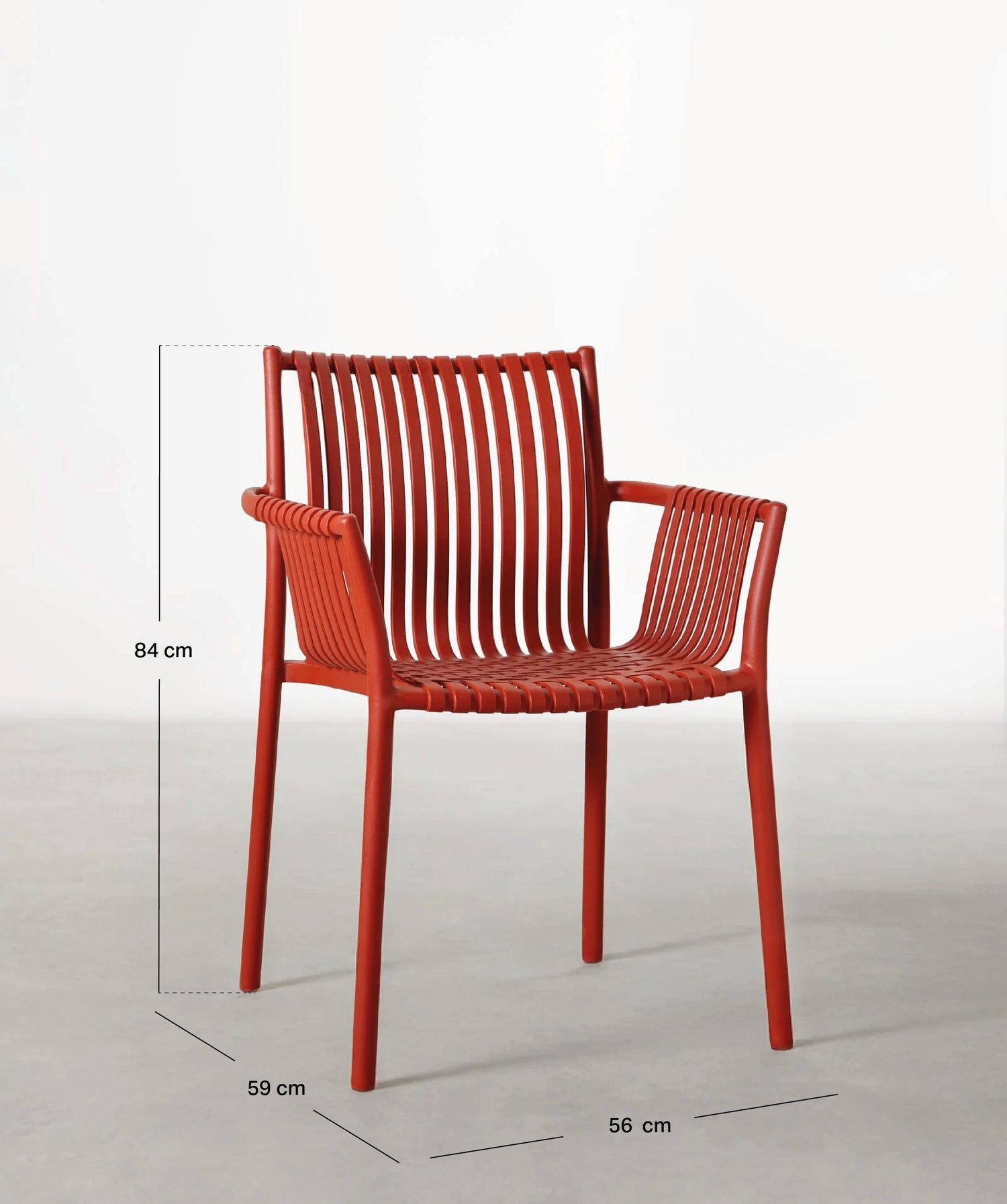 Elle est fabriquée en polypropylène résistant et de haute qualité, idéale pour un usage quotidien grâce à sa durabilité et sa facilité d’entretien. Les accoudoirs intégrés et le dossier ajouré offrent plus de confort et de ventilation.