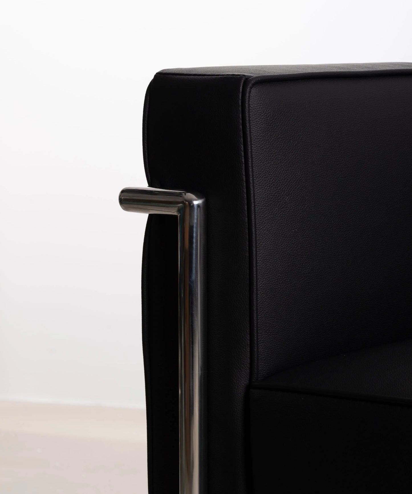 Notre réplique est réalisée avec un cadre tubulaire en acier inoxydable qui dépasse de la base, créant ainsi un canapé moderne et élégant aux lignes symétriques.