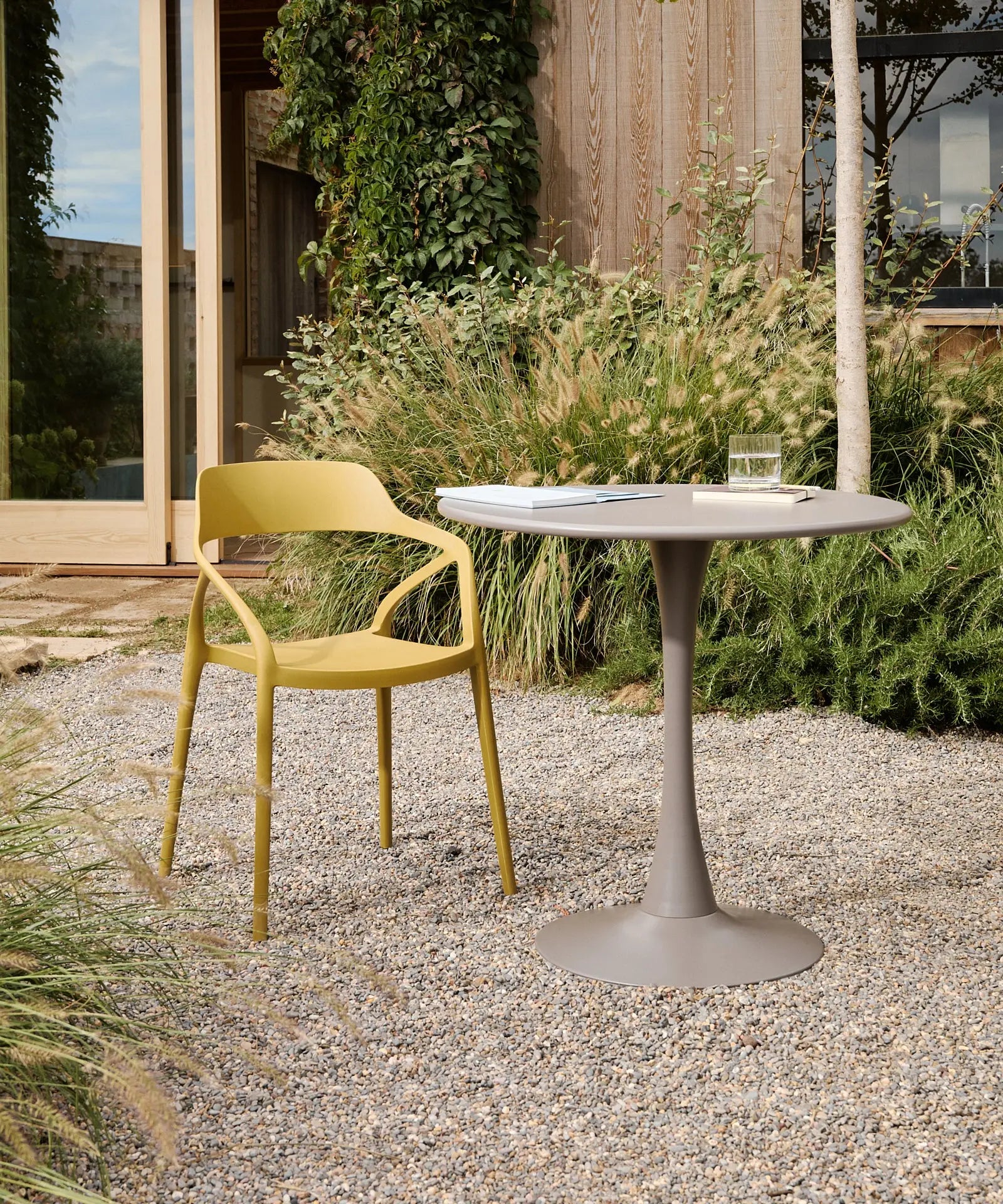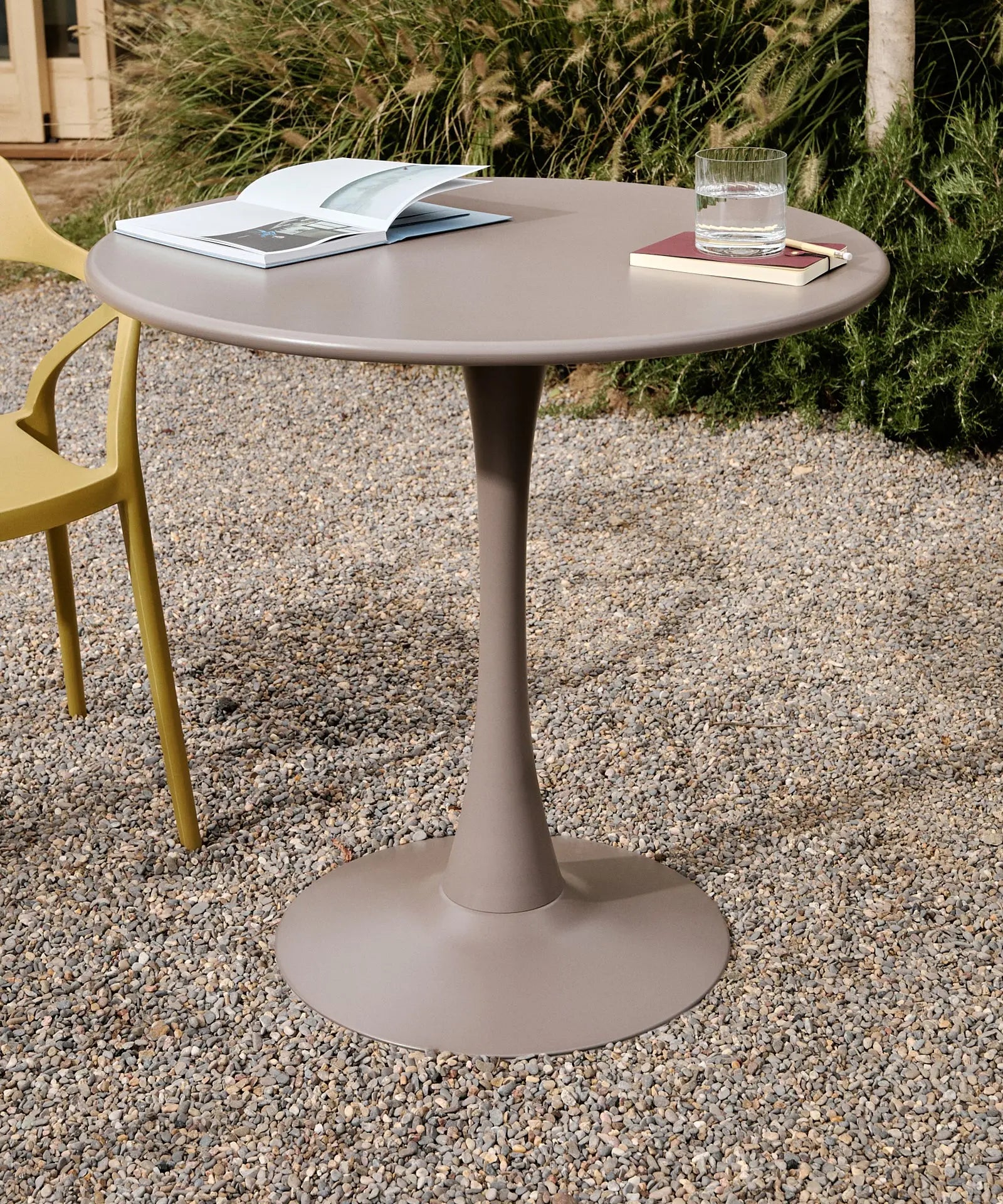 Il tavolo rotondo Tulia è una icona del design moderno, riconoscibile per la sua base centrale slanciata a forma di calice. La sua estetica minimalista e fluida elimina le gambe tradizionali, offrendo leggerezza visiva e maggiore comodità nella seduta.