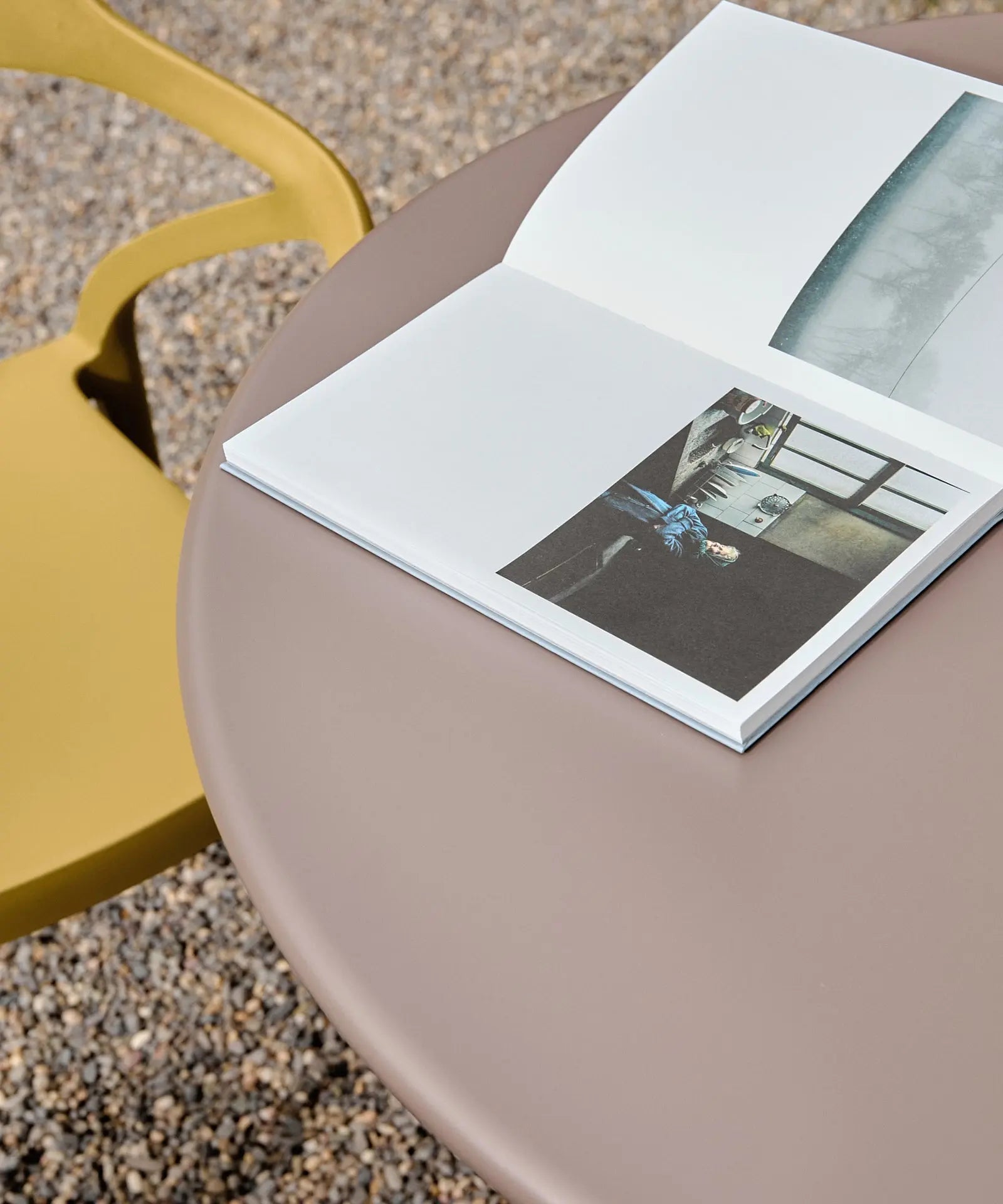 È realizzato in metallo, rivestito in fibra di vetro laccata bianca, con un piano liscio e lucido. Ideale per sale da pranzo, cucine o ambienti contemporanei, la sua superficie rotonda favorisce la conversazione e crea un’atmosfera accogliente ed equilibrata.