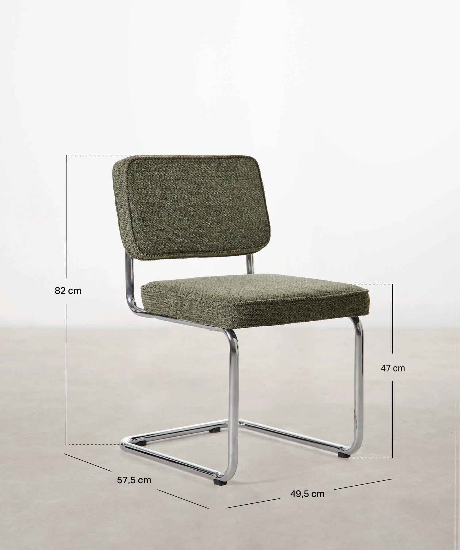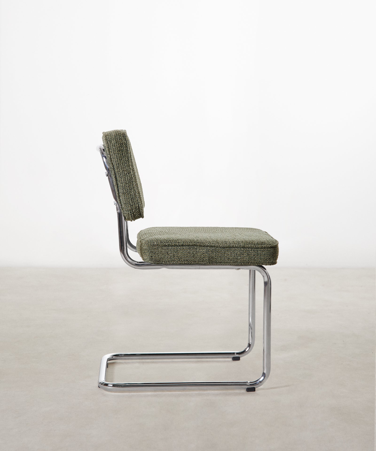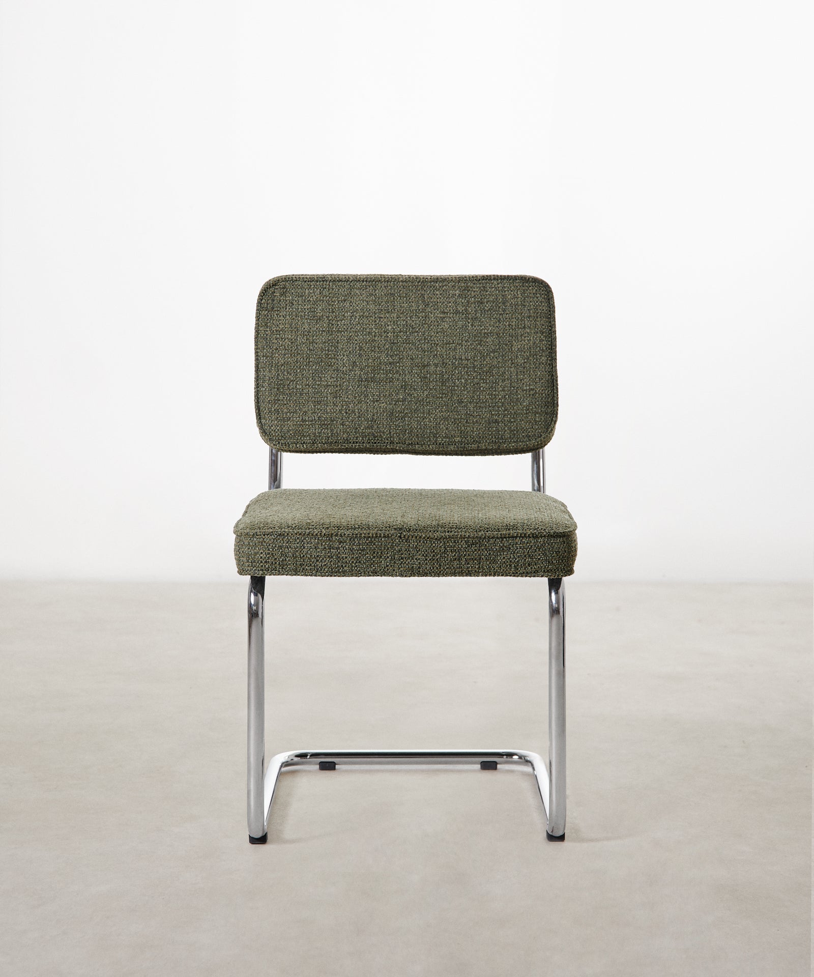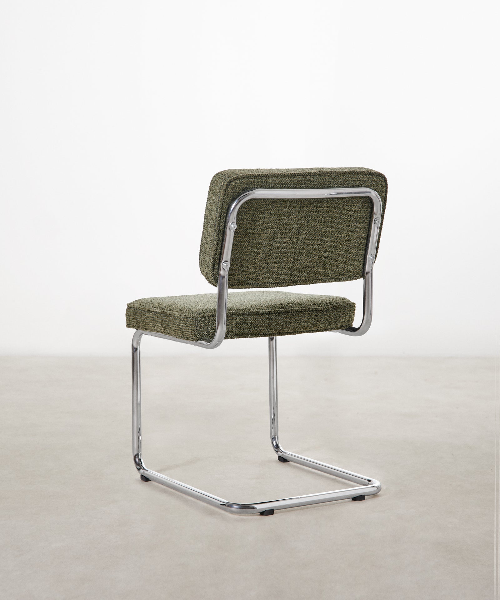 La sedia Anela reinterpreta il design classico in chiave contemporanea. La sua struttura tubolare cromata conferisce leggerezza e un tocco industriale, mentre il morbido rivestimento in tessuto verde le conferisce un aspetto caldo e accogliente.