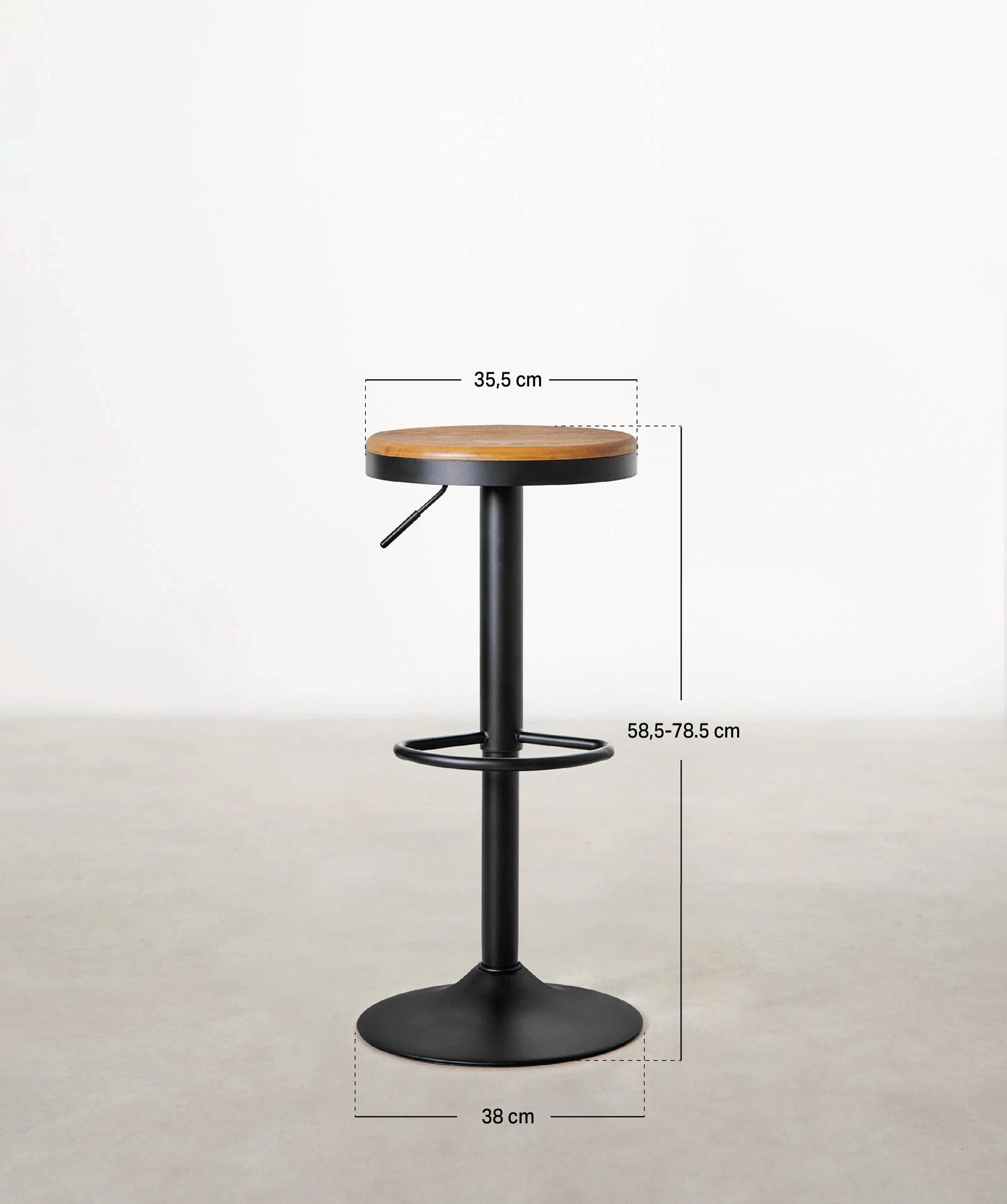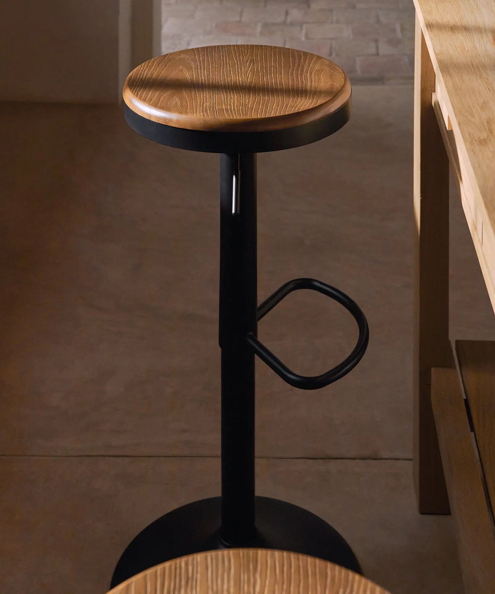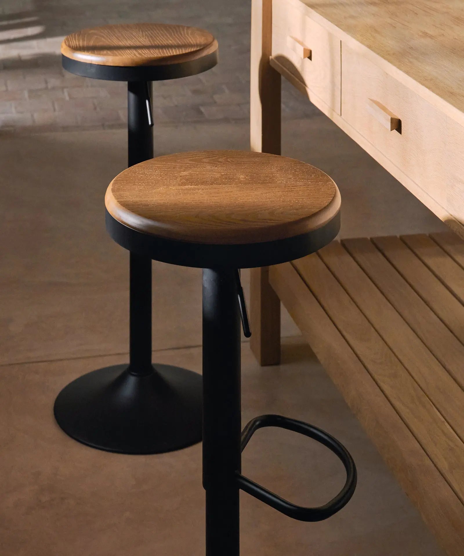 Sgabello Alto Regolabile in Acciaio e Legno Oslo