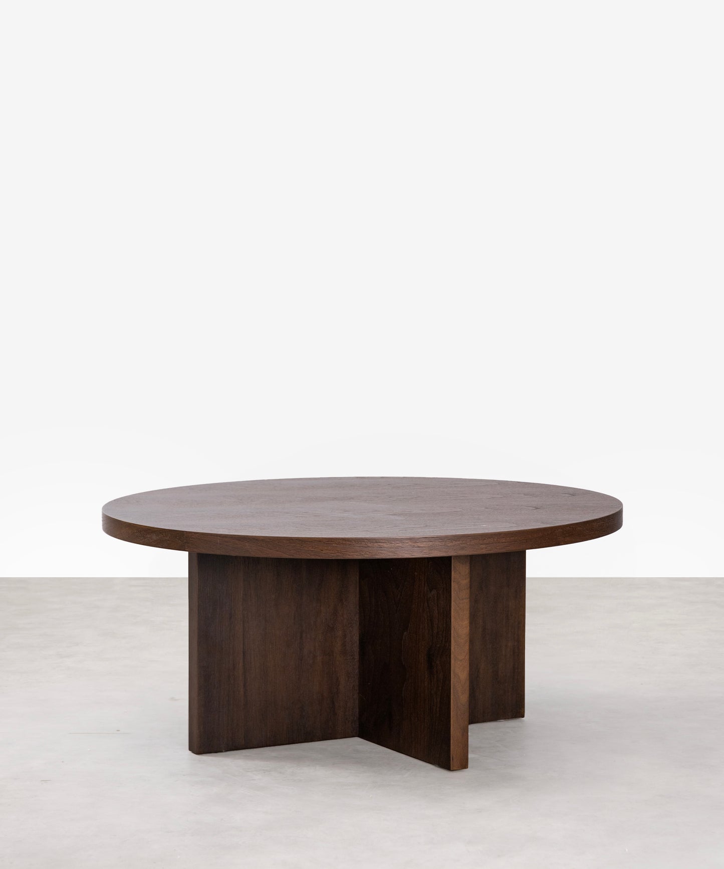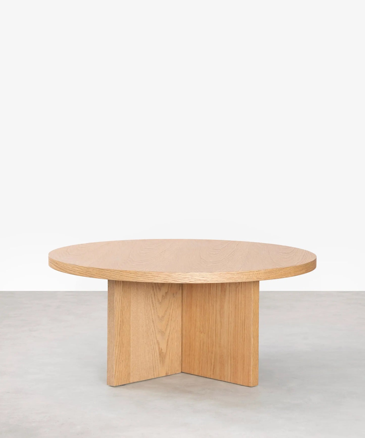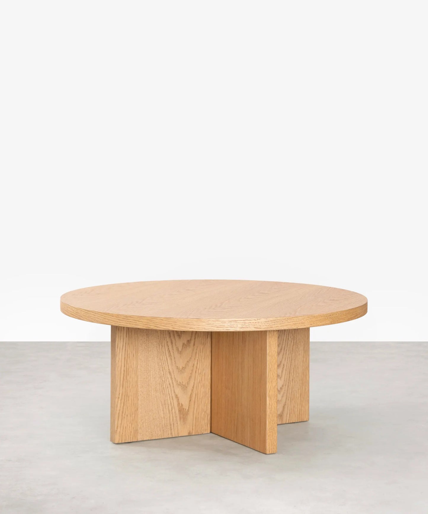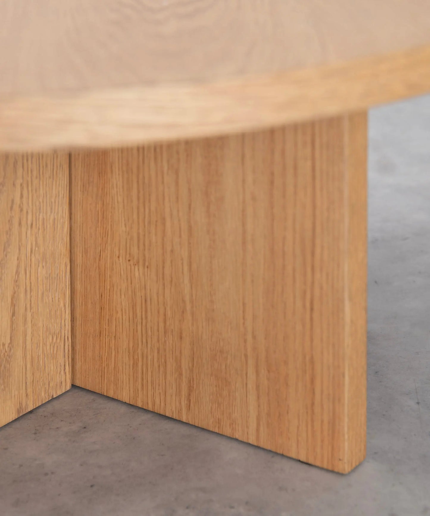 Il suo piano rotondo in legno naturale valorizza le venature del legno. La base centrale a forma di croce garantisce stabilità e dona uno stile architettonico senza tempo.