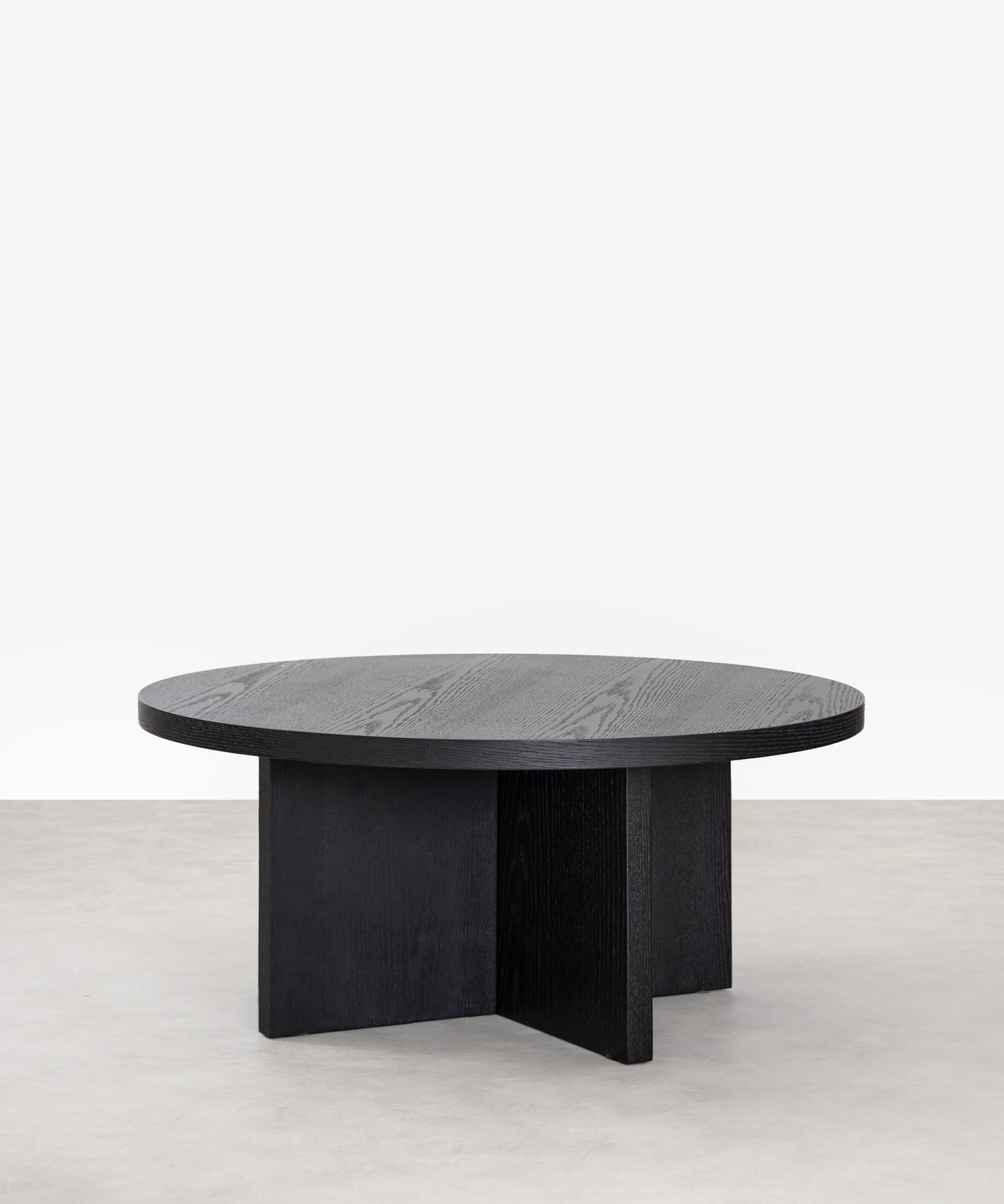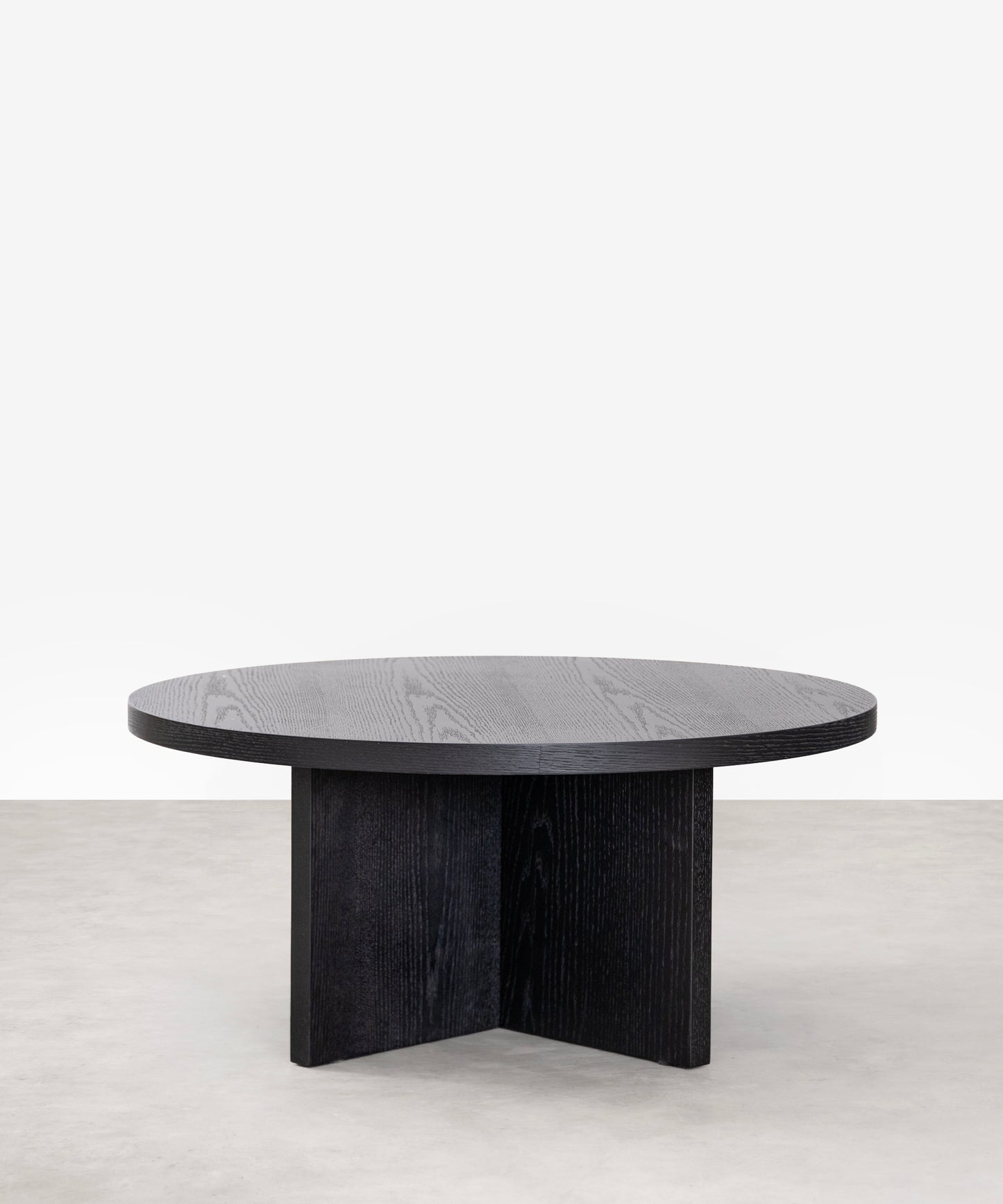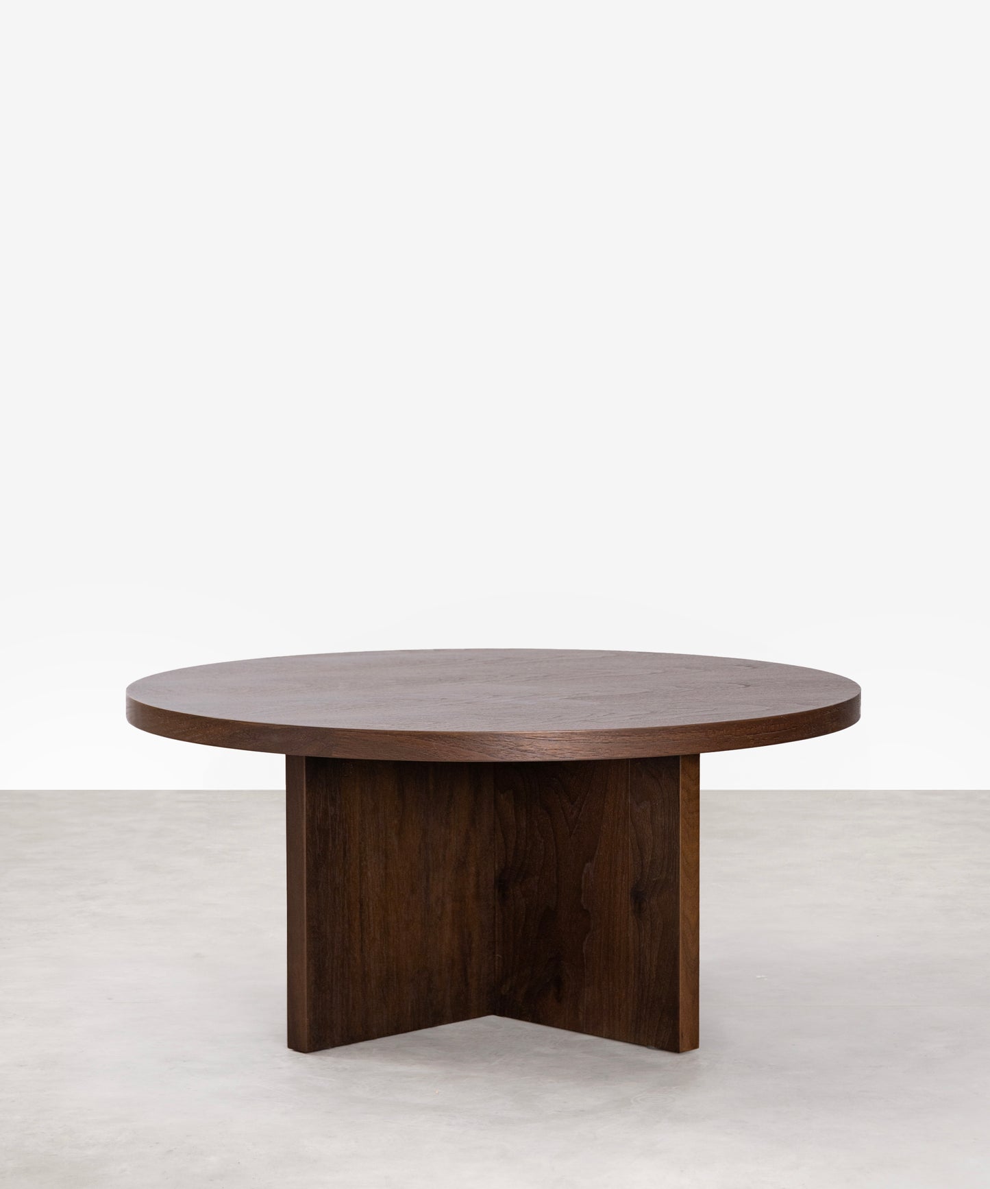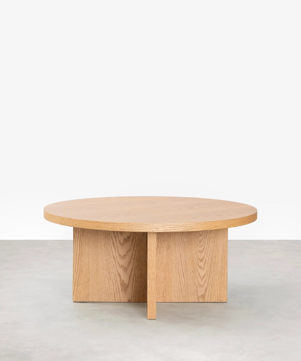 Il suo piano rotondo in legno naturale valorizza le venature del legno. La base centrale a forma di croce garantisce stabilità e dona uno stile architettonico senza tempo.