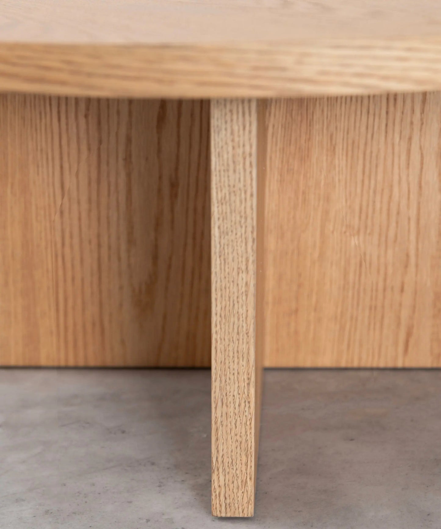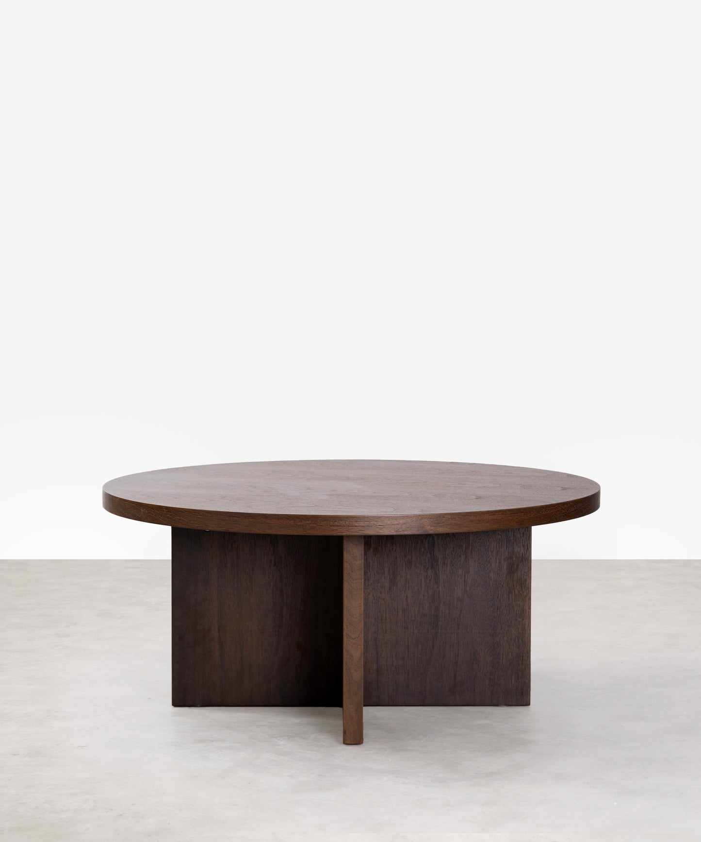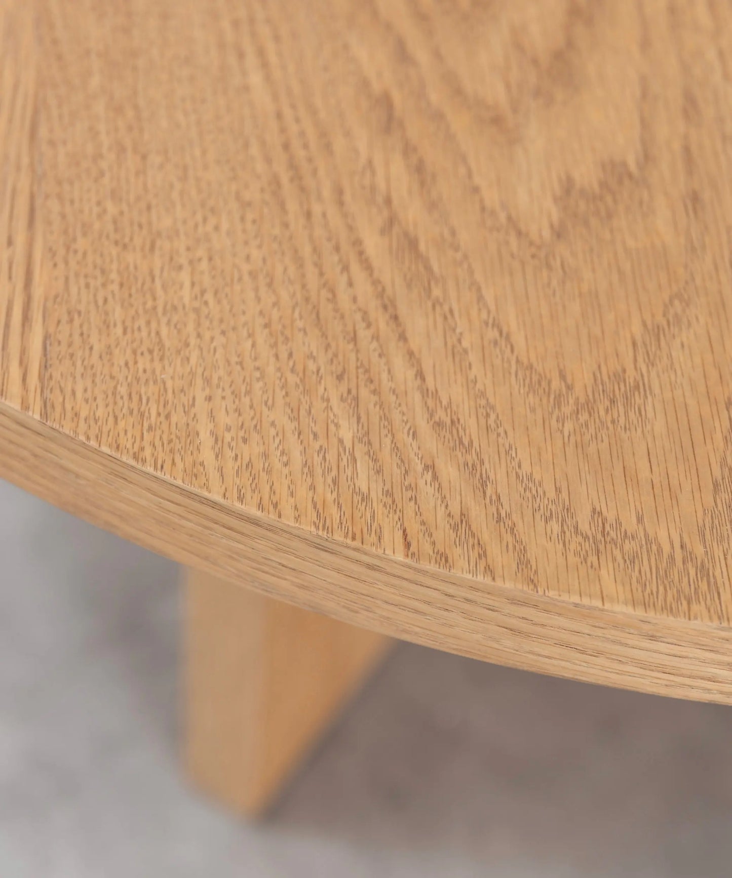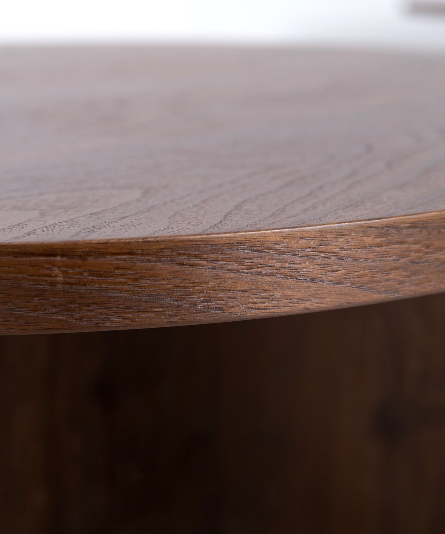 Il suo piano rotondo in legno naturale valorizza le venature del legno. La base centrale a forma di croce garantisce stabilità e dona uno stile architettonico senza tempo.
