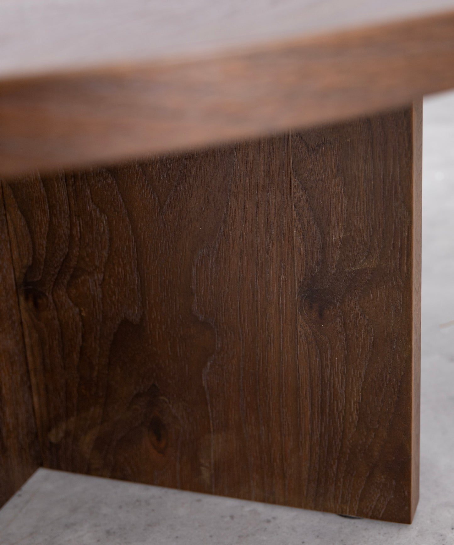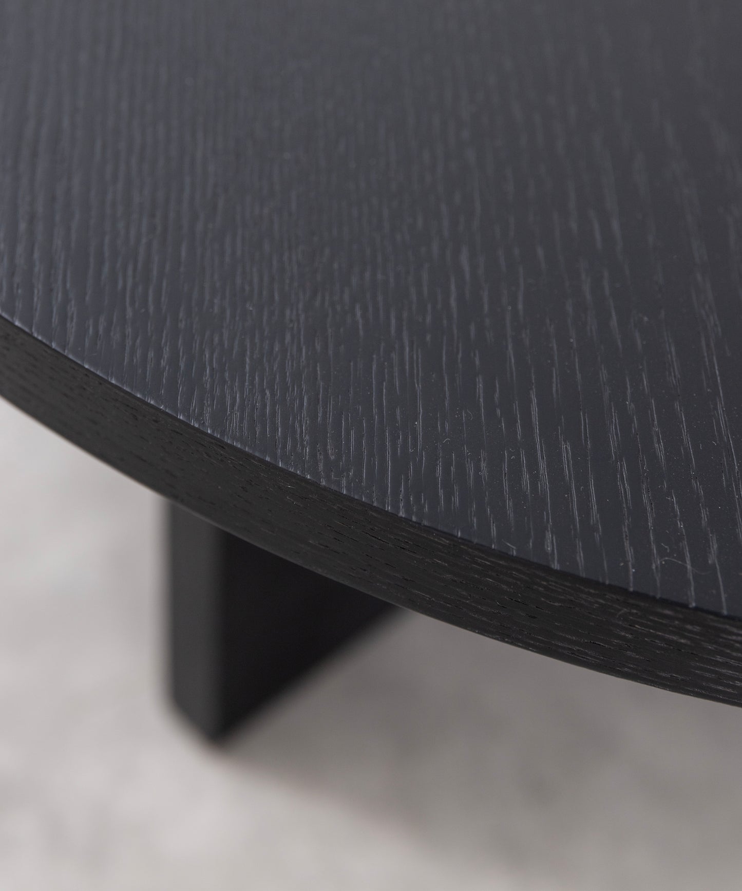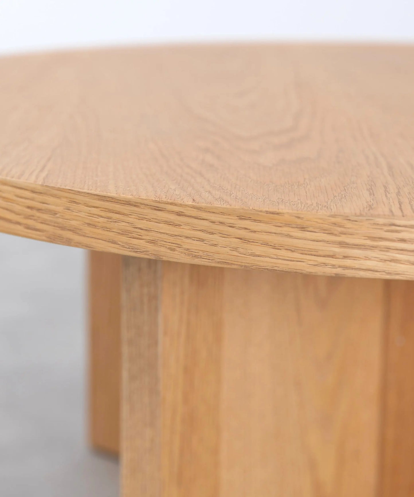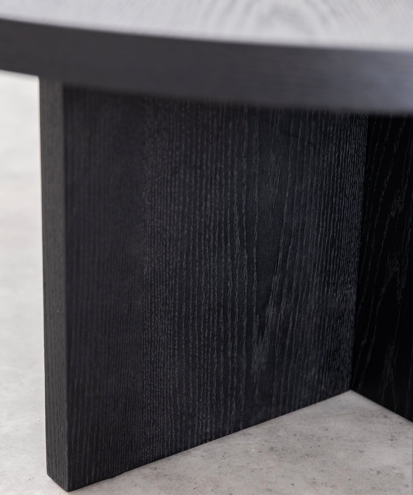 Il suo piano rotondo in legno naturale valorizza le venature del legno. La base centrale a forma di croce garantisce stabilità e dona uno stile architettonico senza tempo.