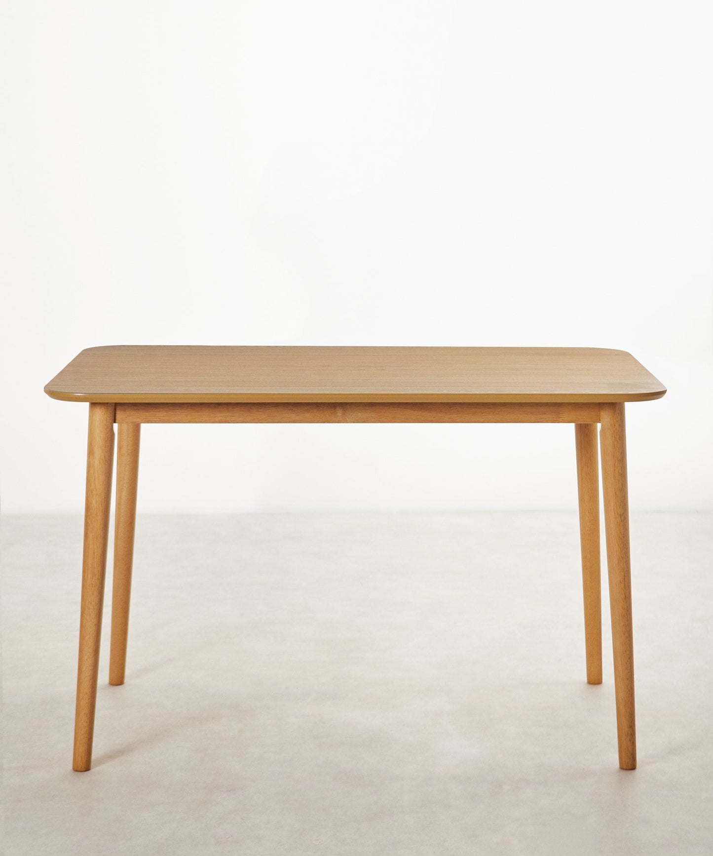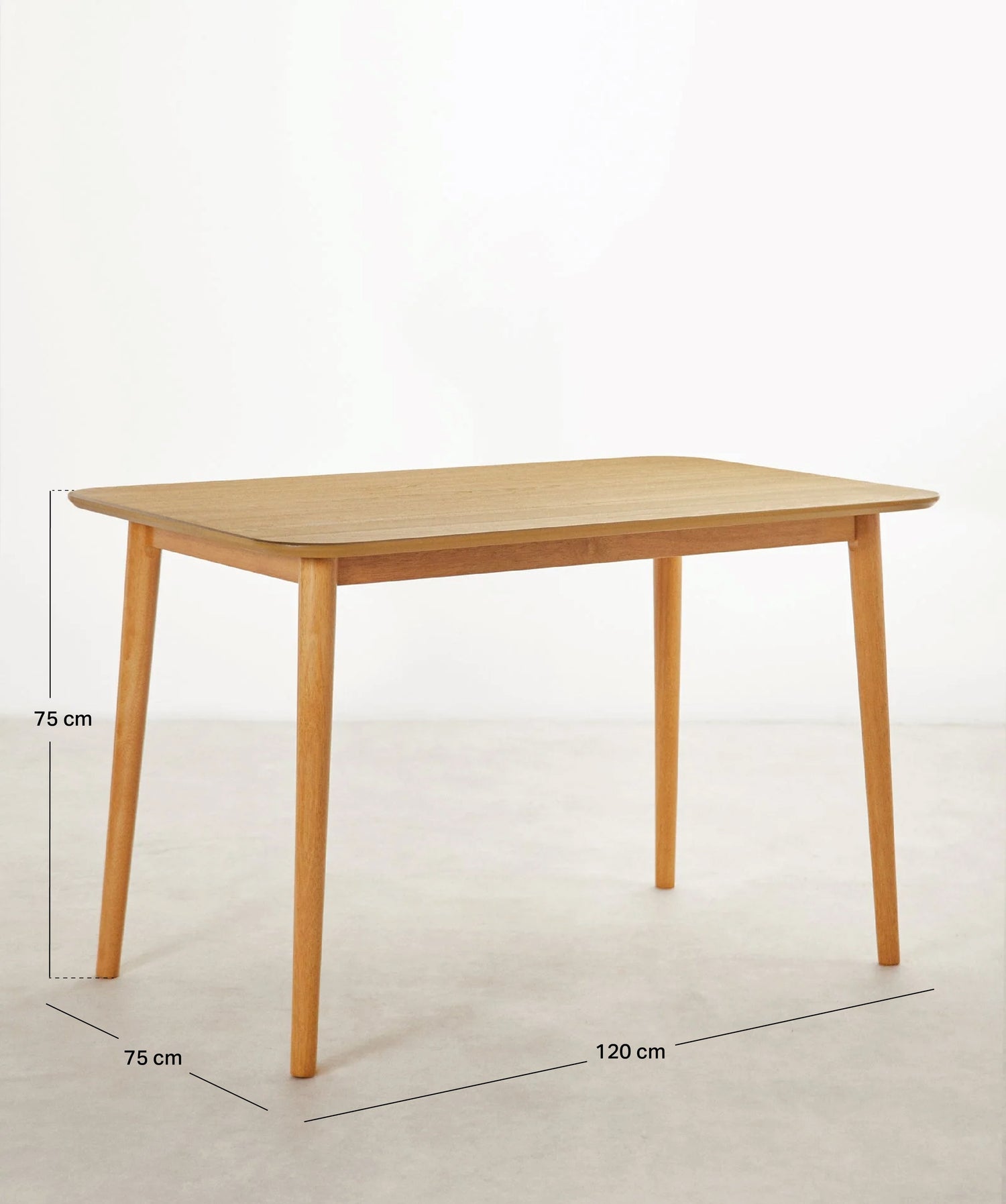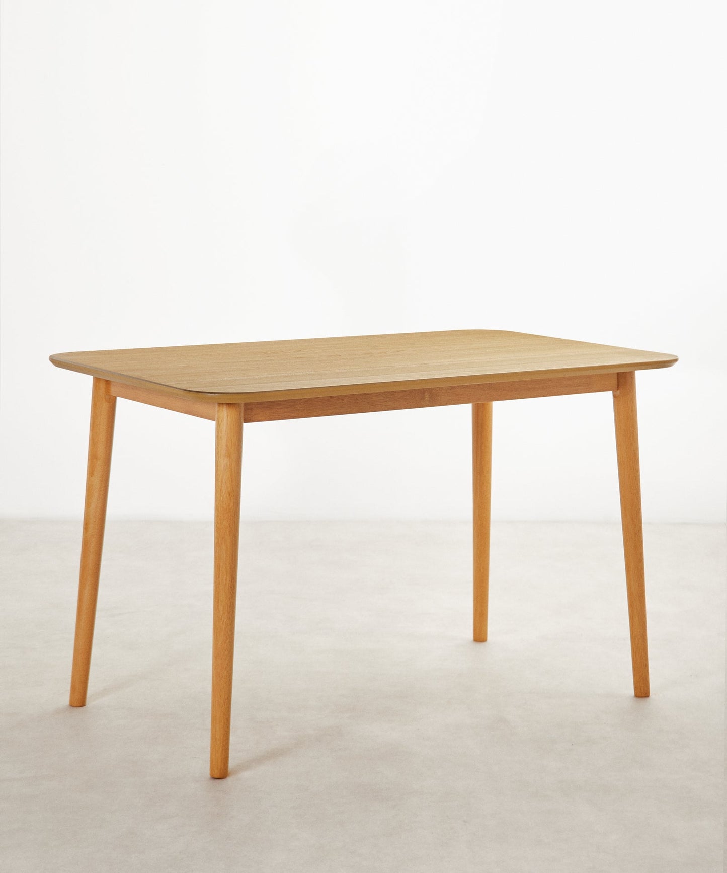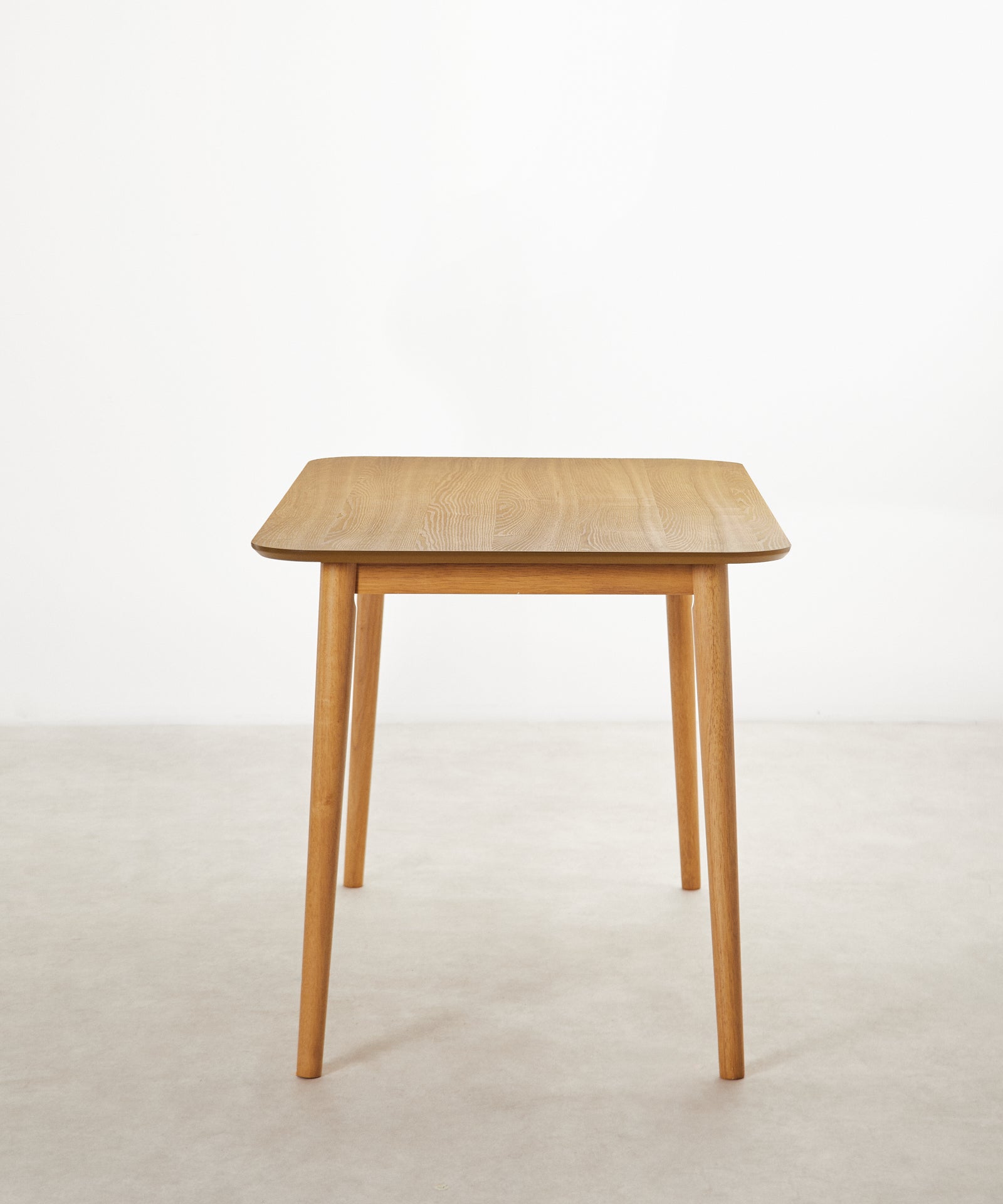 Il piano è realizzato in MDF con impiallacciatura in rovere, che conferisce un aspetto elegante e naturale, con una superficie stabile e facile da mantenere. Le gambe in legno massello garantiscono solidità e durata, mentre gli angoli arrotondati aumentano la sicurezza e la delicatezza del design.