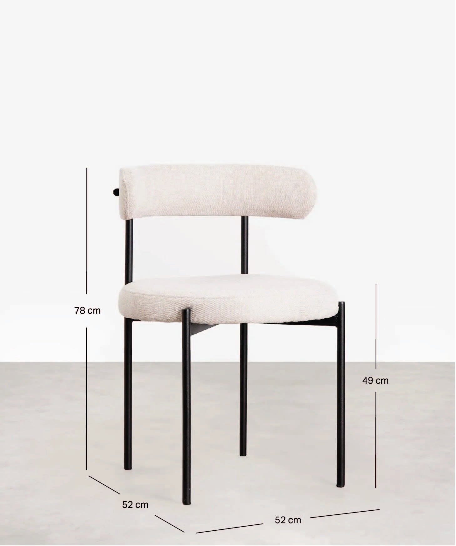 La sua struttura in metallo fornisce una base solida e stabile. Lo schienale curvo rivestito in tessuto si distingue per la sua estetica minimalista e ergonomia, garantendo il massimo comfort durante l'uso.
