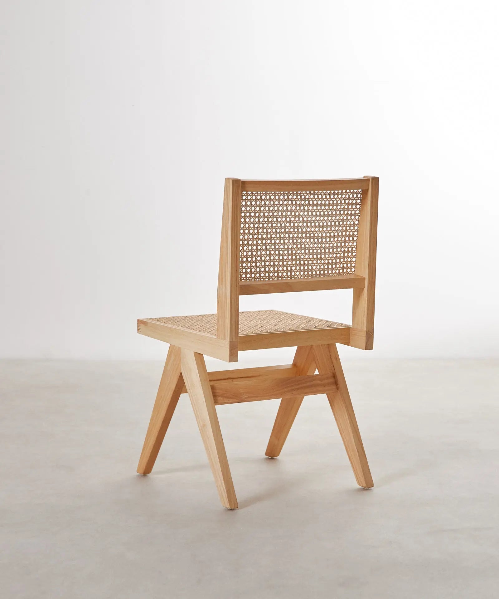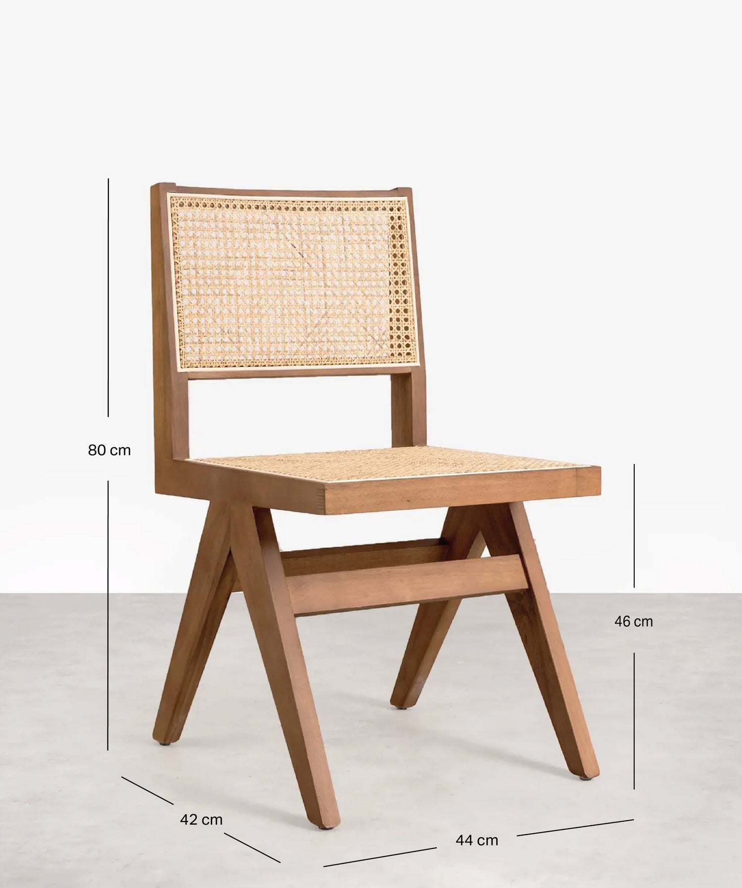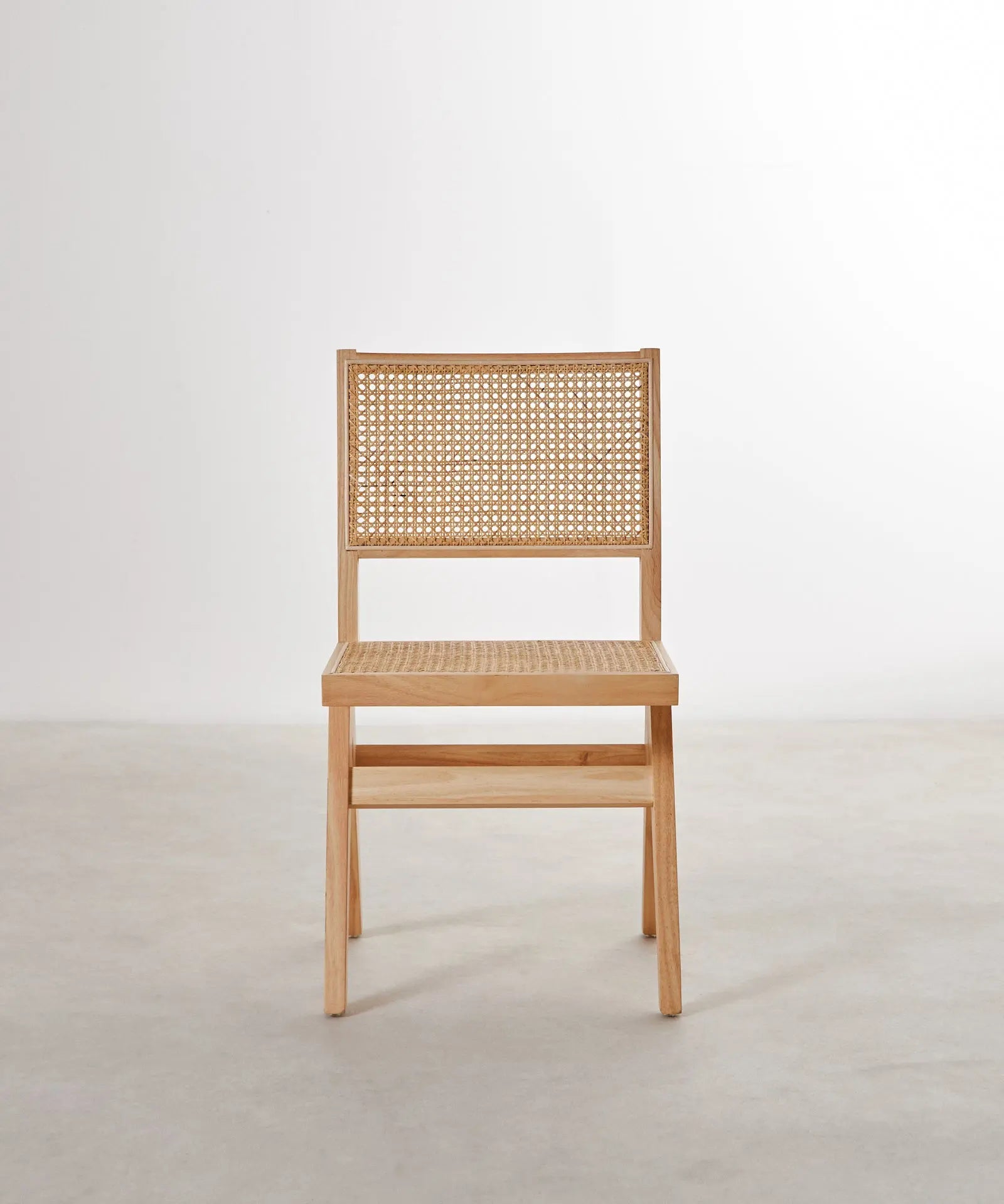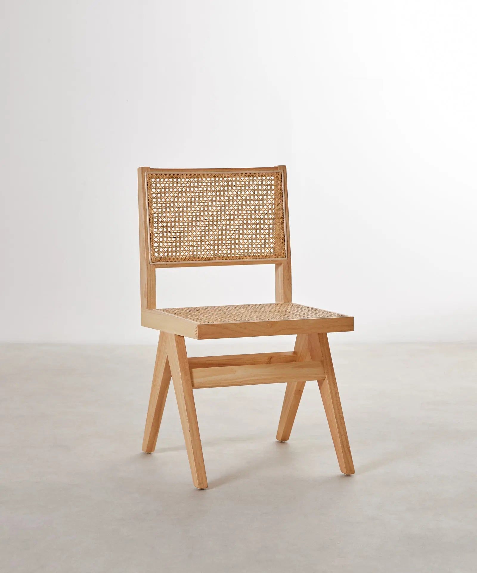 La sua struttura e lo schienale sono realizzati in robusto legno di frassino naturale che si combina perfettamente con la sua seduta rifinita in rattan.