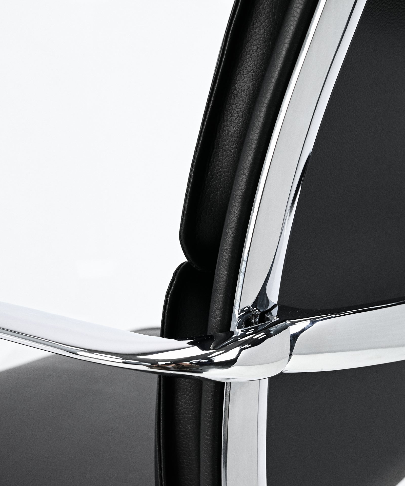 De Enid-stoel combineert elegantie en functionaliteit in een design geïnspireerd op Scandinavisch design. Het chromen aluminium frame biedt stevigheid en een moderne uitstraling, terwijl de kunstleren bekleding zorgt voor een verfijnde en onderhoudsvriendelijke afwerking.
