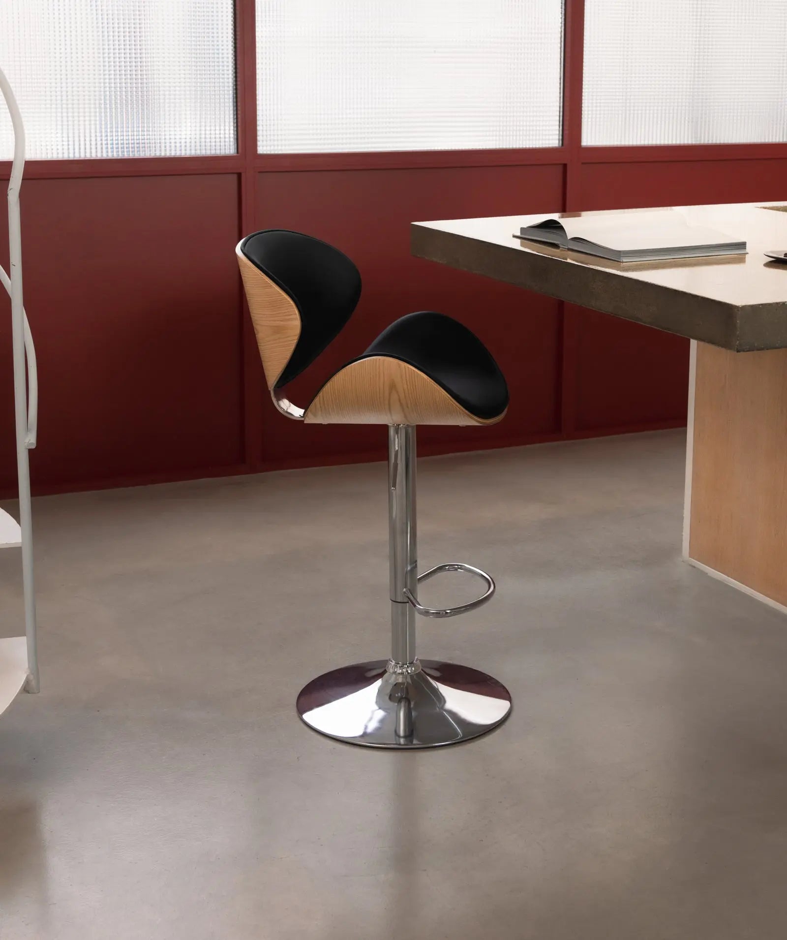 De barkruk Shelley bestaat uit een houten structuur waarvan de zichtbare nerf het een warmere en natuurlijkere uitstraling geeft. De stijl, een combinatie van Scandinavische en vintage stijl, met atypische rondingen. Je zult er ongetwijfeld van houden.