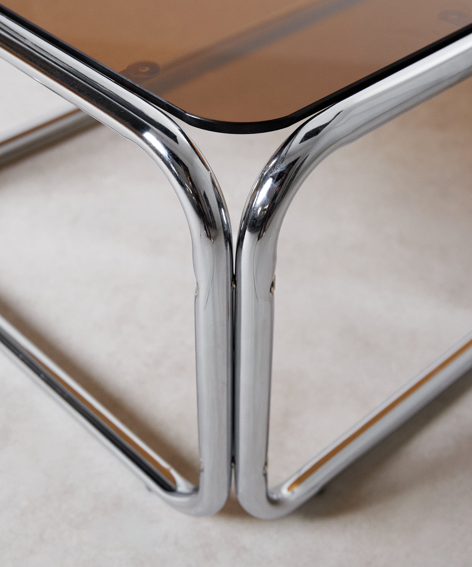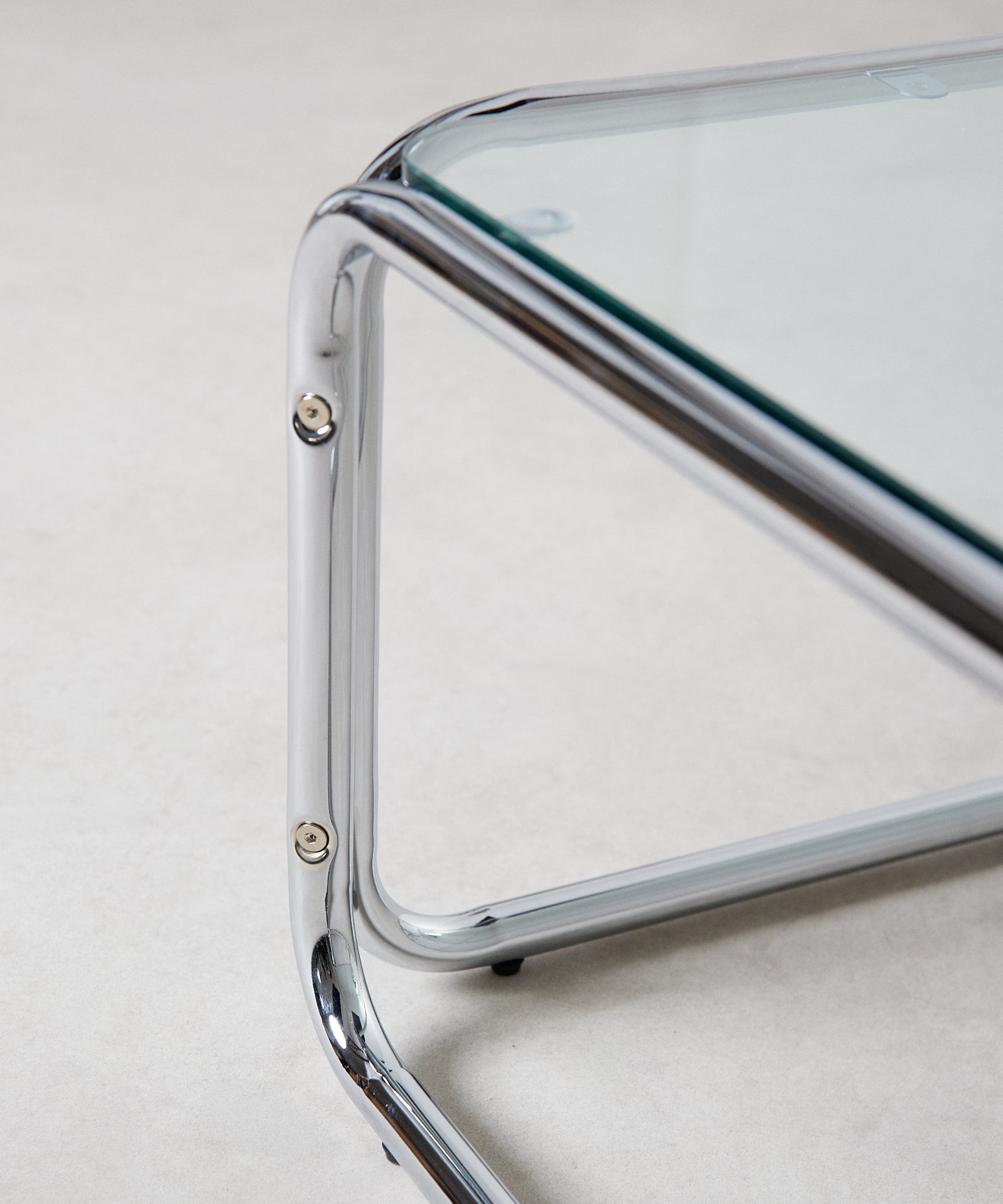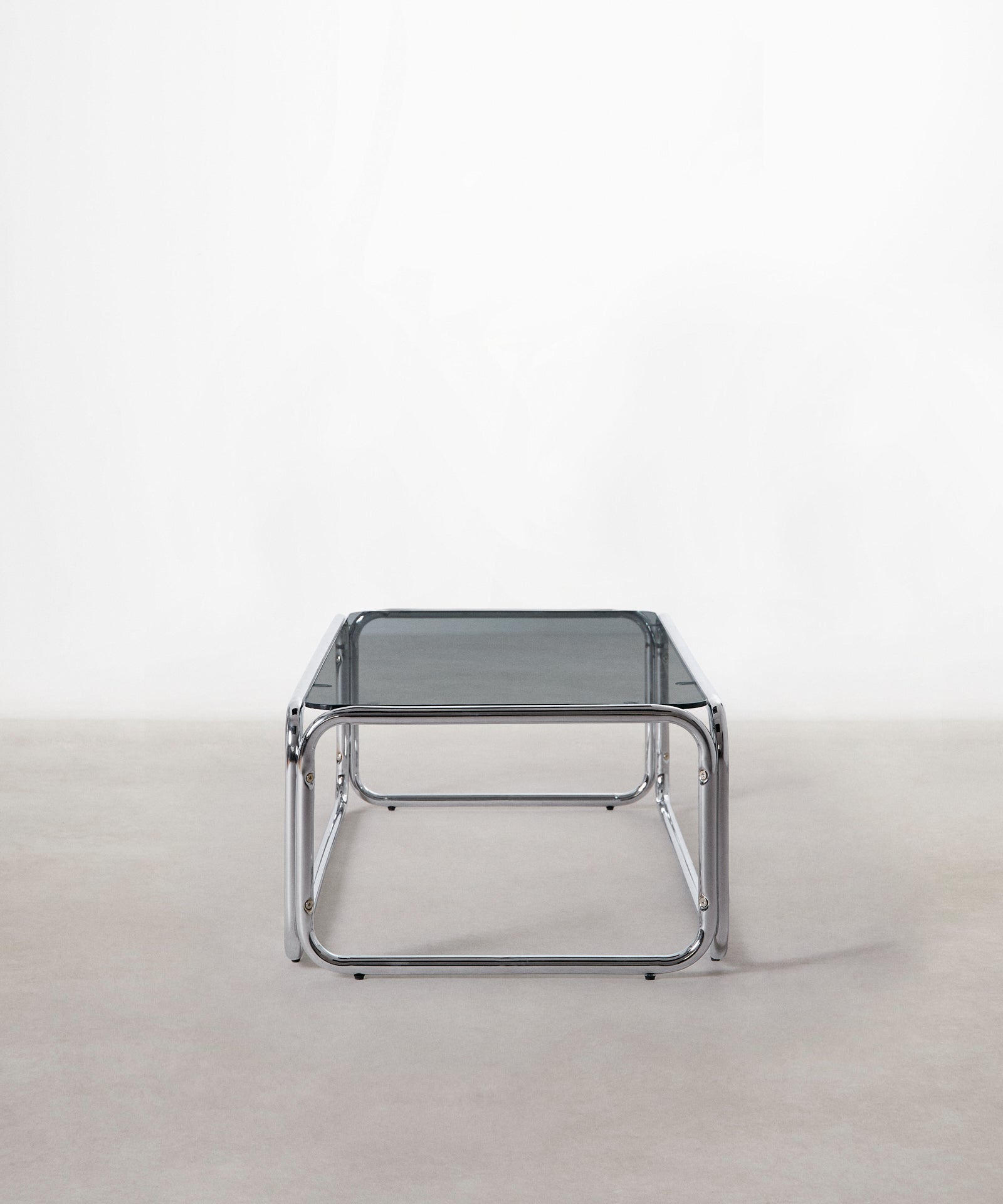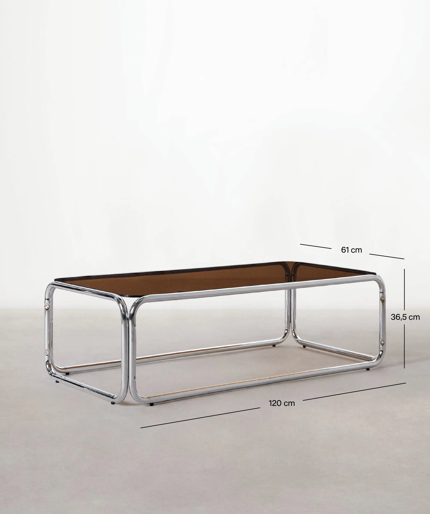 La mesa de centro Mai combina diseño moderno y funcionalidad, perfecta para interiores. Su superficie rectangular de cristal templado aporta elegancia y ligereza visual, mientras que su estructura de acero inoxidable cromado asegura estabilidad y estilo contemporáneo.