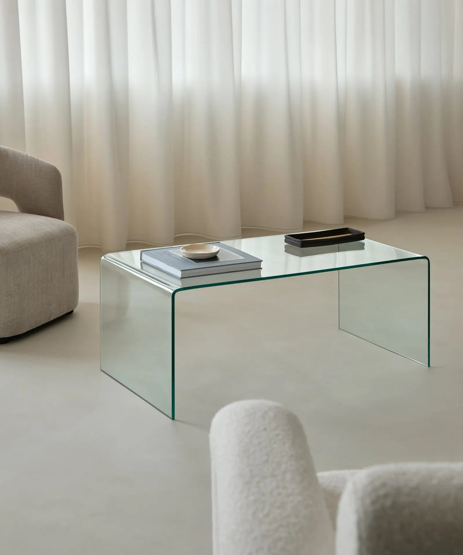 Przedstawiamy nowy stół w stylu nordyckim Cheval. Ten szklany stół kawowy jest wykonany w całości ze szkła hartowanego o grubości 10 mm. Jego wykończenie jest całkowicie przezroczyste.