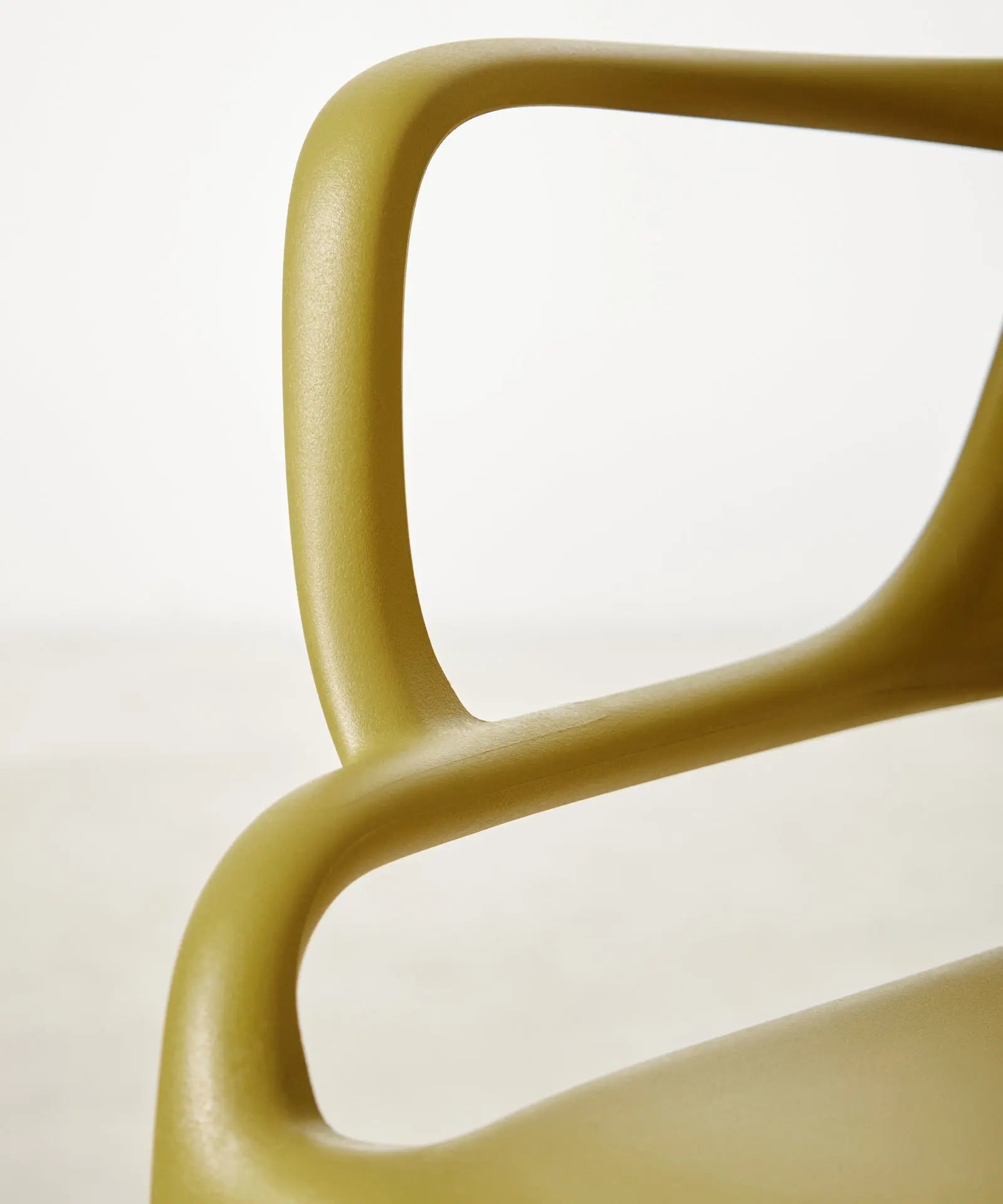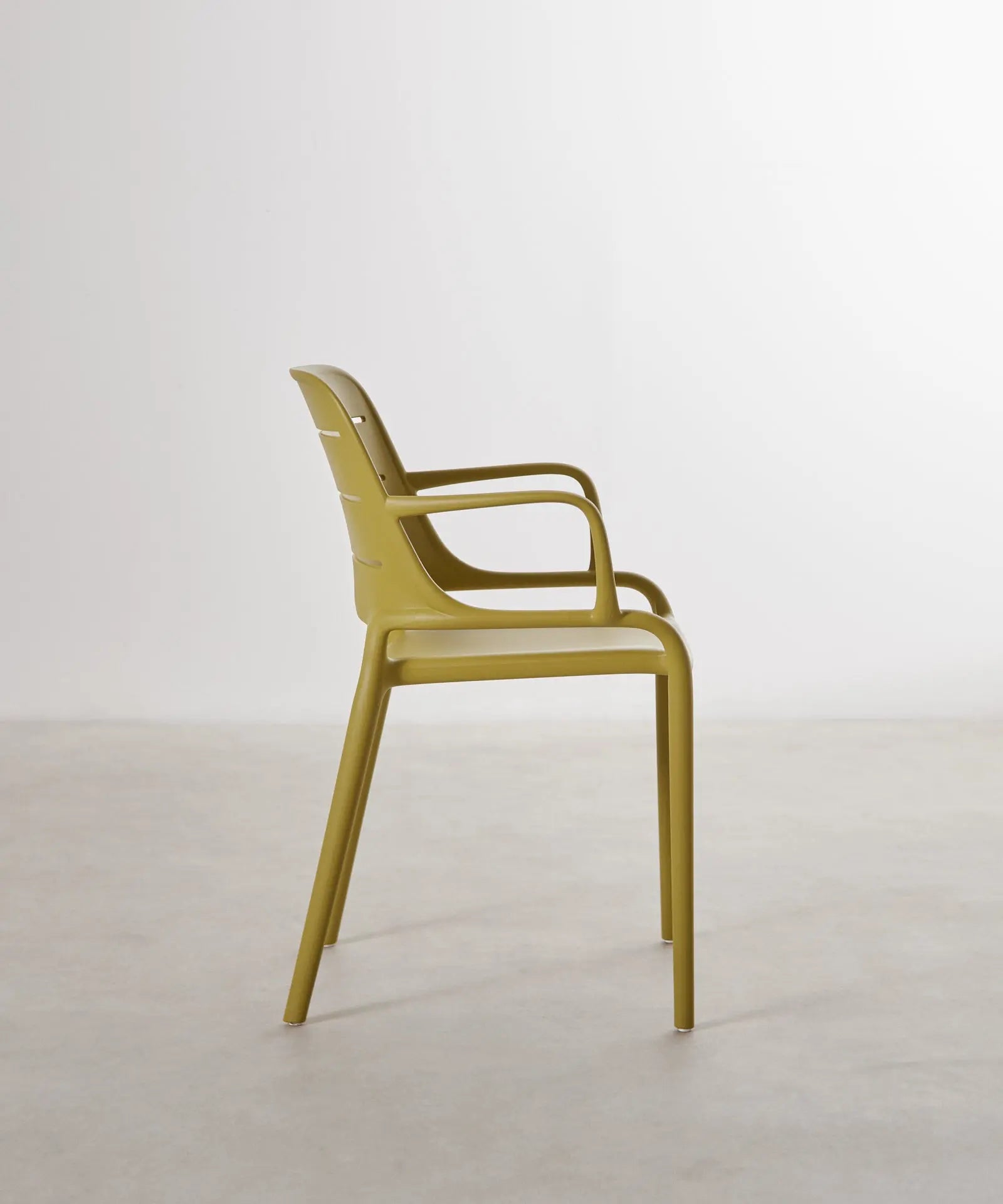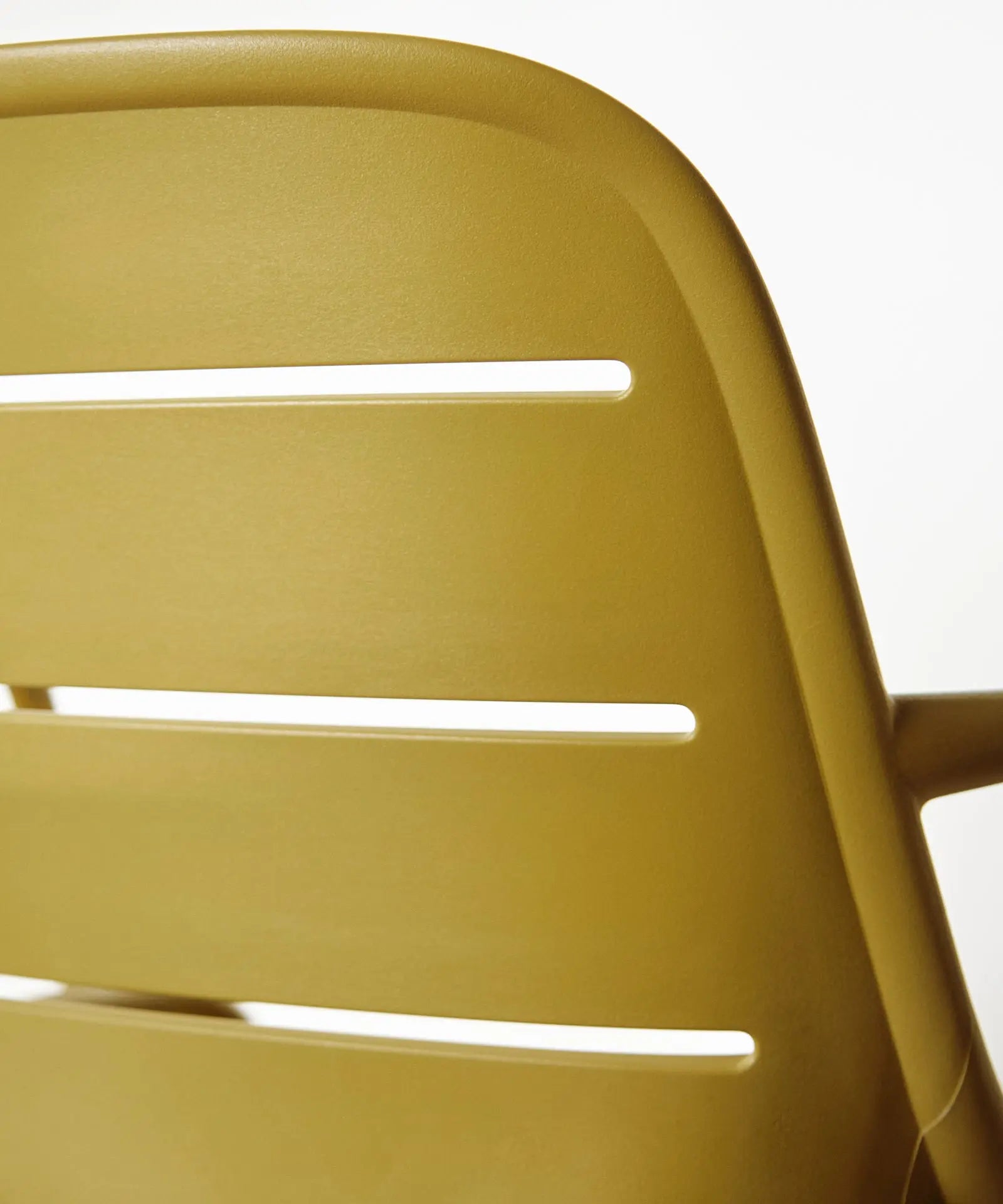 Wykonane jest z wytrzymałego, wysokiej jakości polipropylenu, co czyni je idealnym do codziennego użytku dzięki trwałości i łatwości w czyszczeniu. Zintegrowane podłokietniki i ażurowe oparcie zapewniają większy komfort i odpowiednią wentylację.