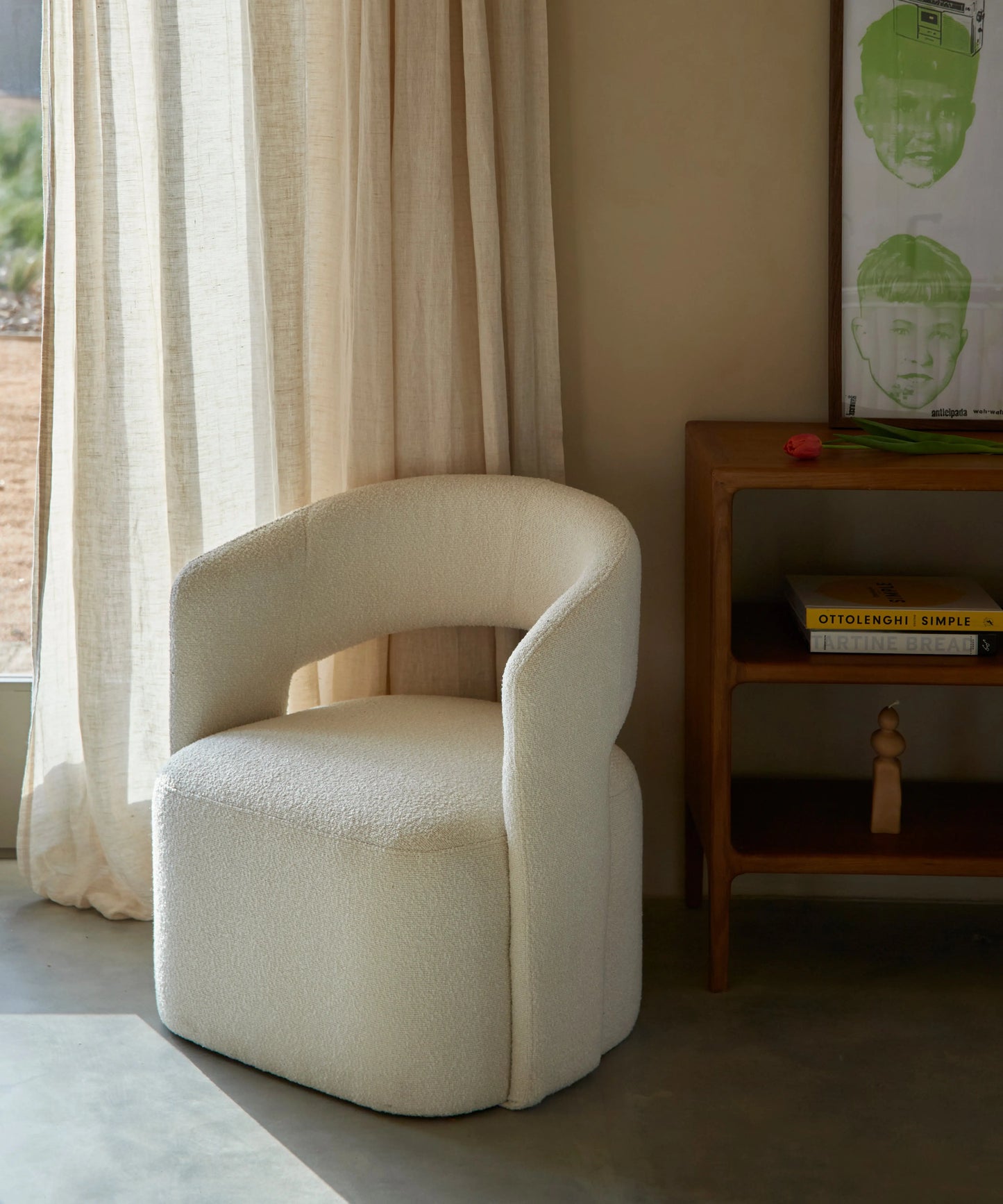 Fotel Naya wyróżnia się otulającym i kompaktowym designem. Jego rozmiar sprawia, że jest idealny do salonów, kącików do czytania lub przestrzeni do pracy.