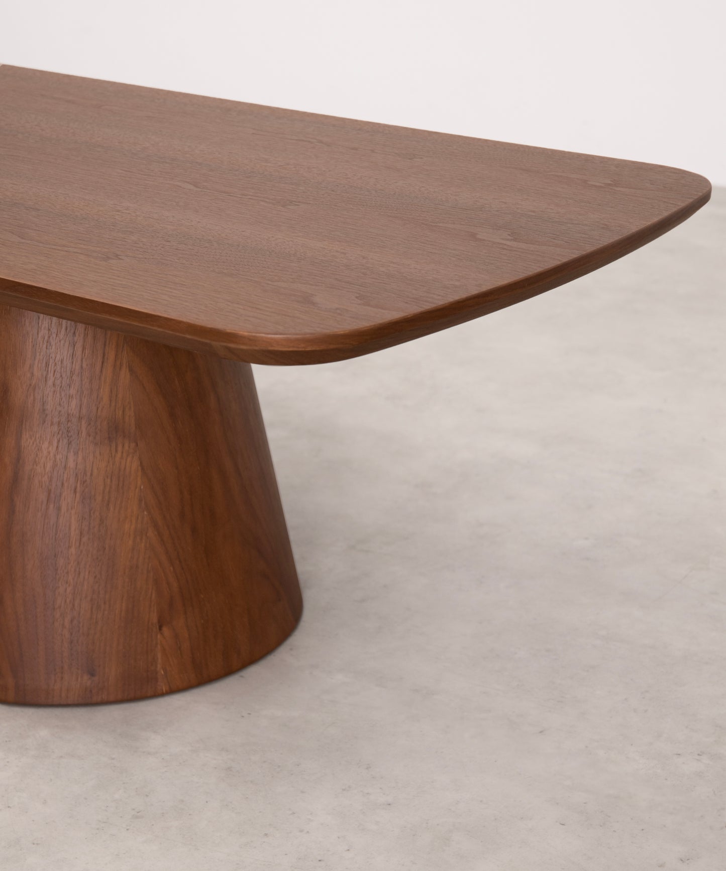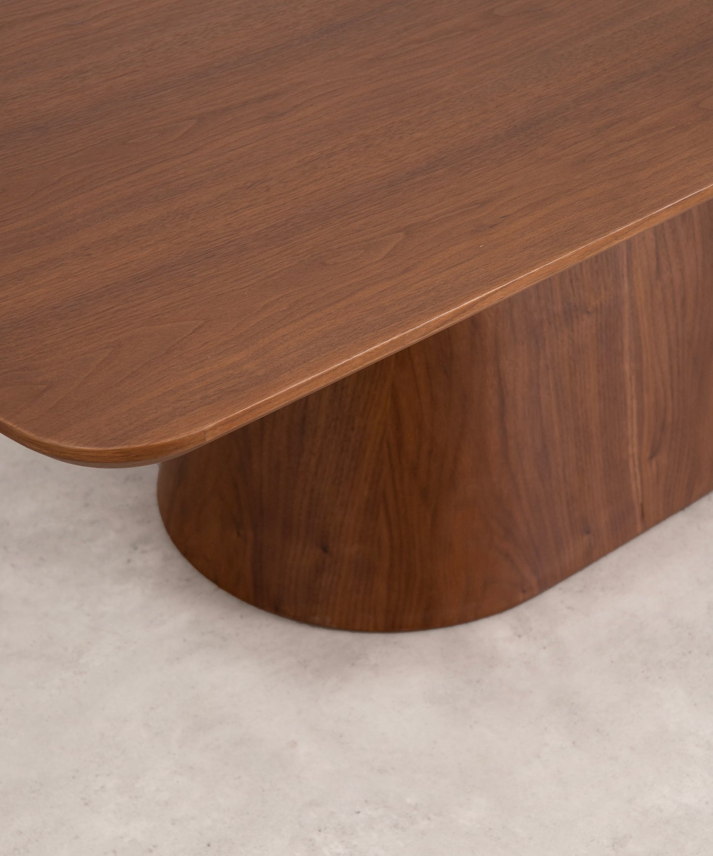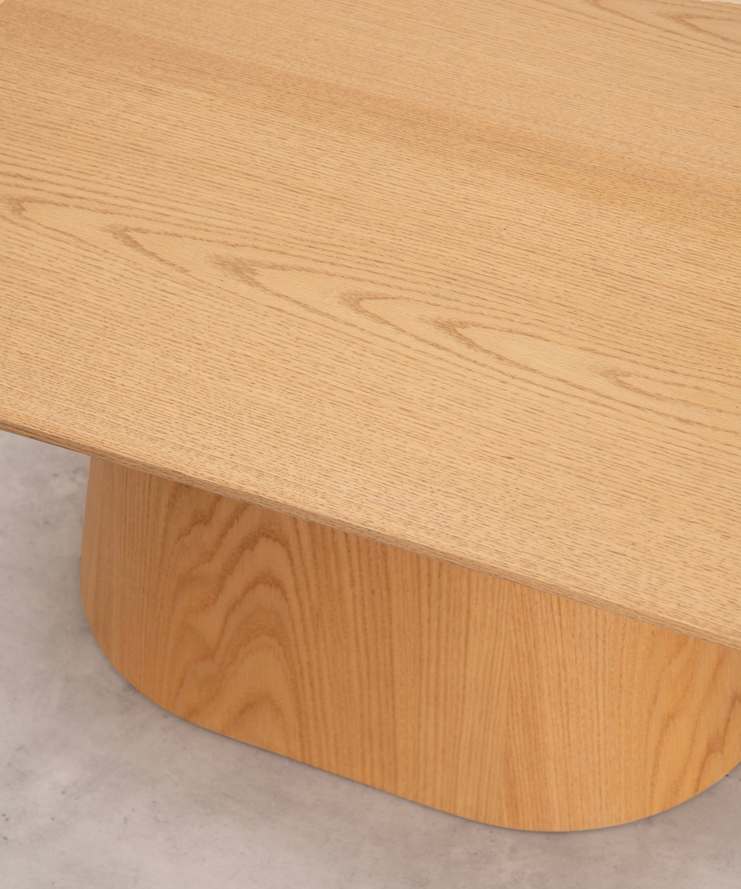 Su estructura formada por madera de roble revela las vetas de la propia madera. Destaca por tener una única base sólida y robusta.