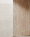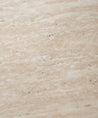 El tablero está fabricado en material con acabado tipo travertino, imitando con gran realismo la textura y el tono de esta piedra clásica. Es una pieza pensada para interiores contemporáneos, mediterráneos o minimalistas.
