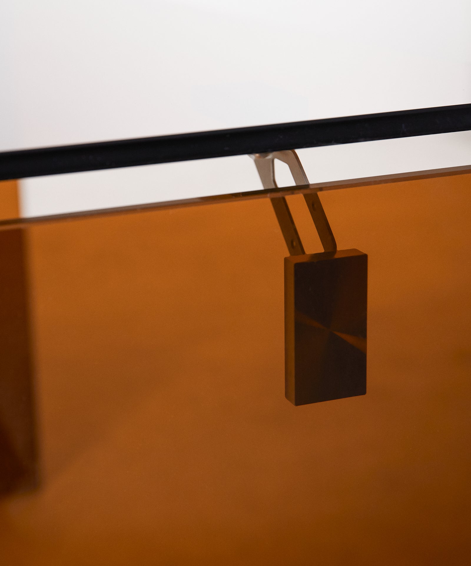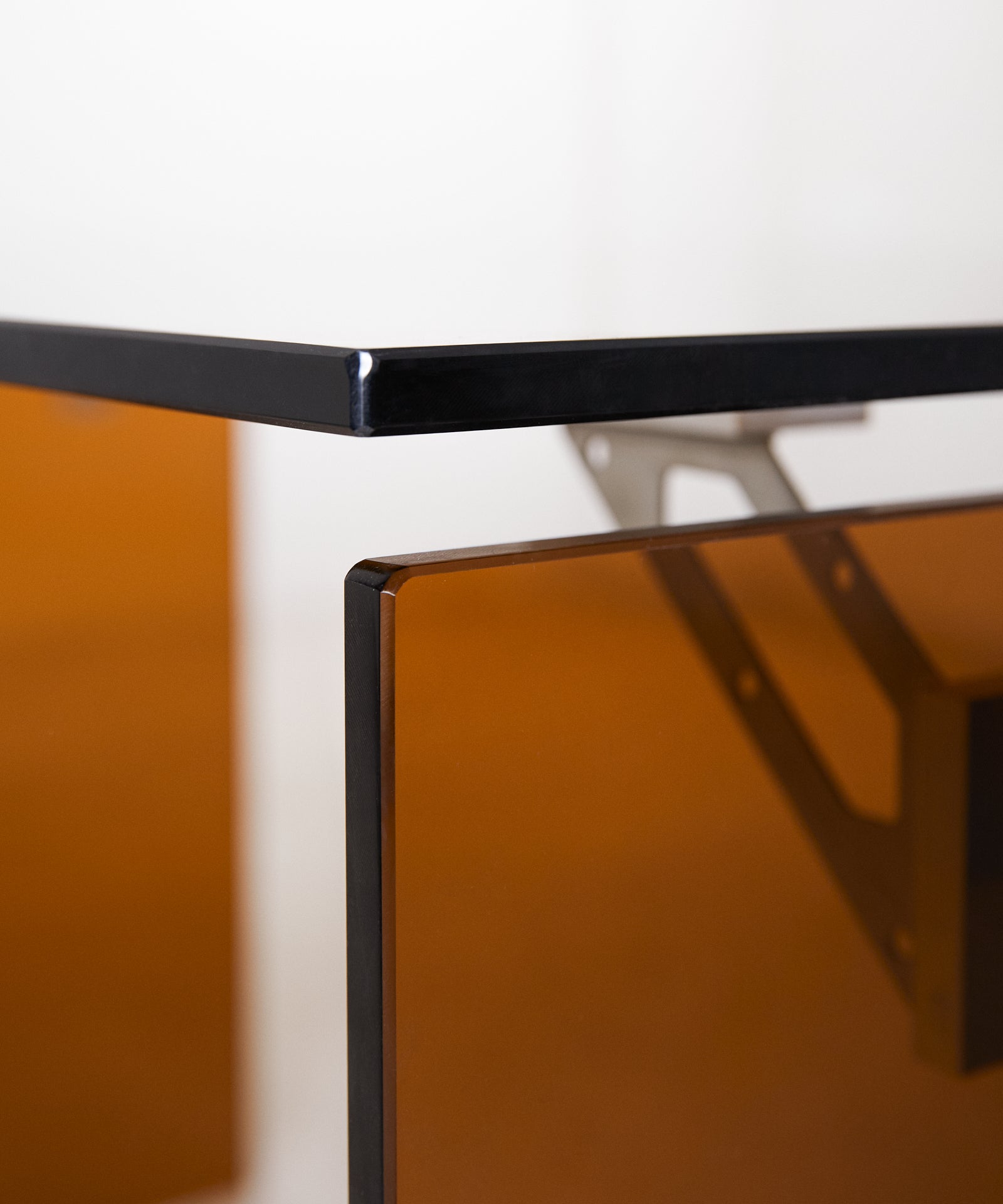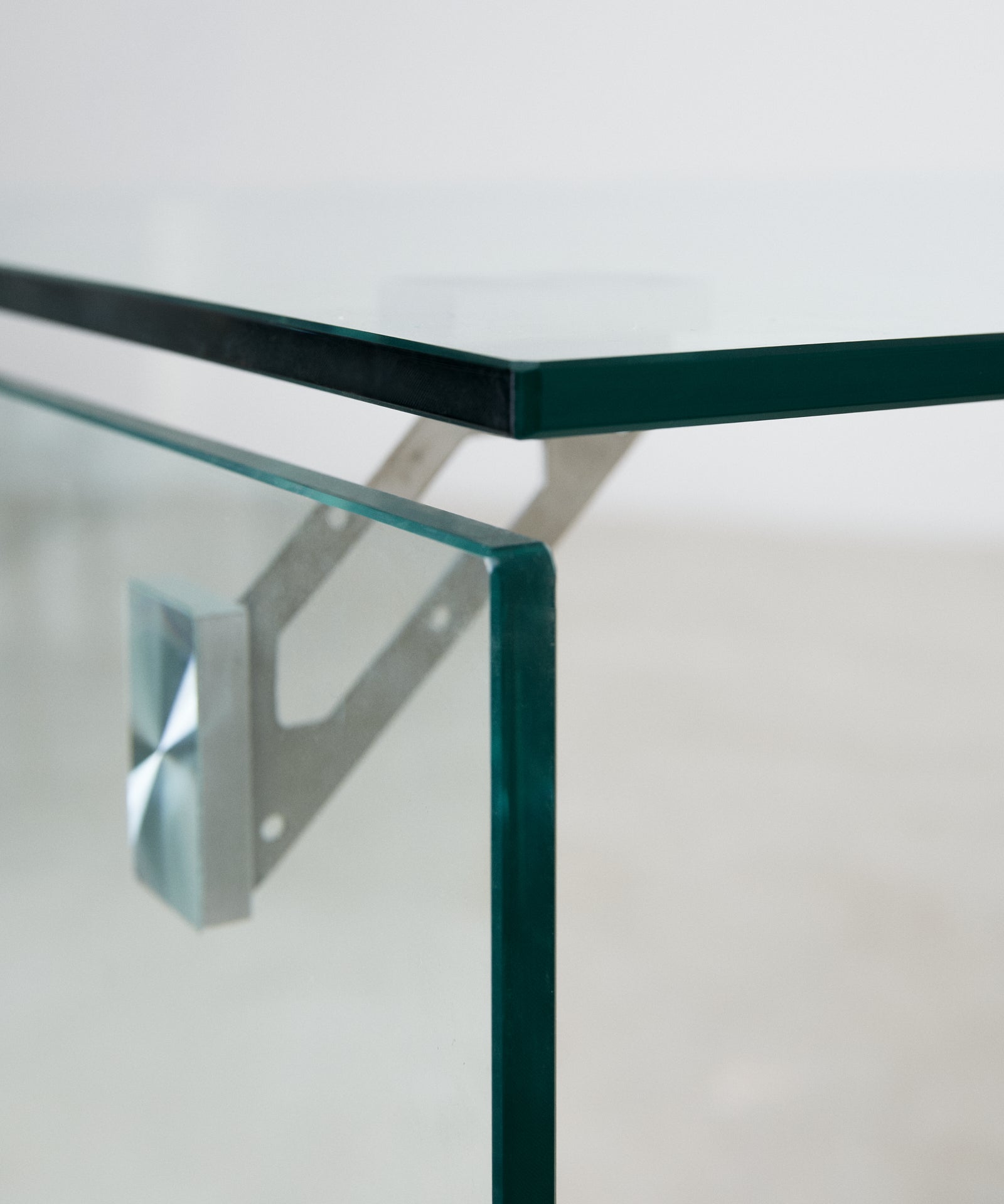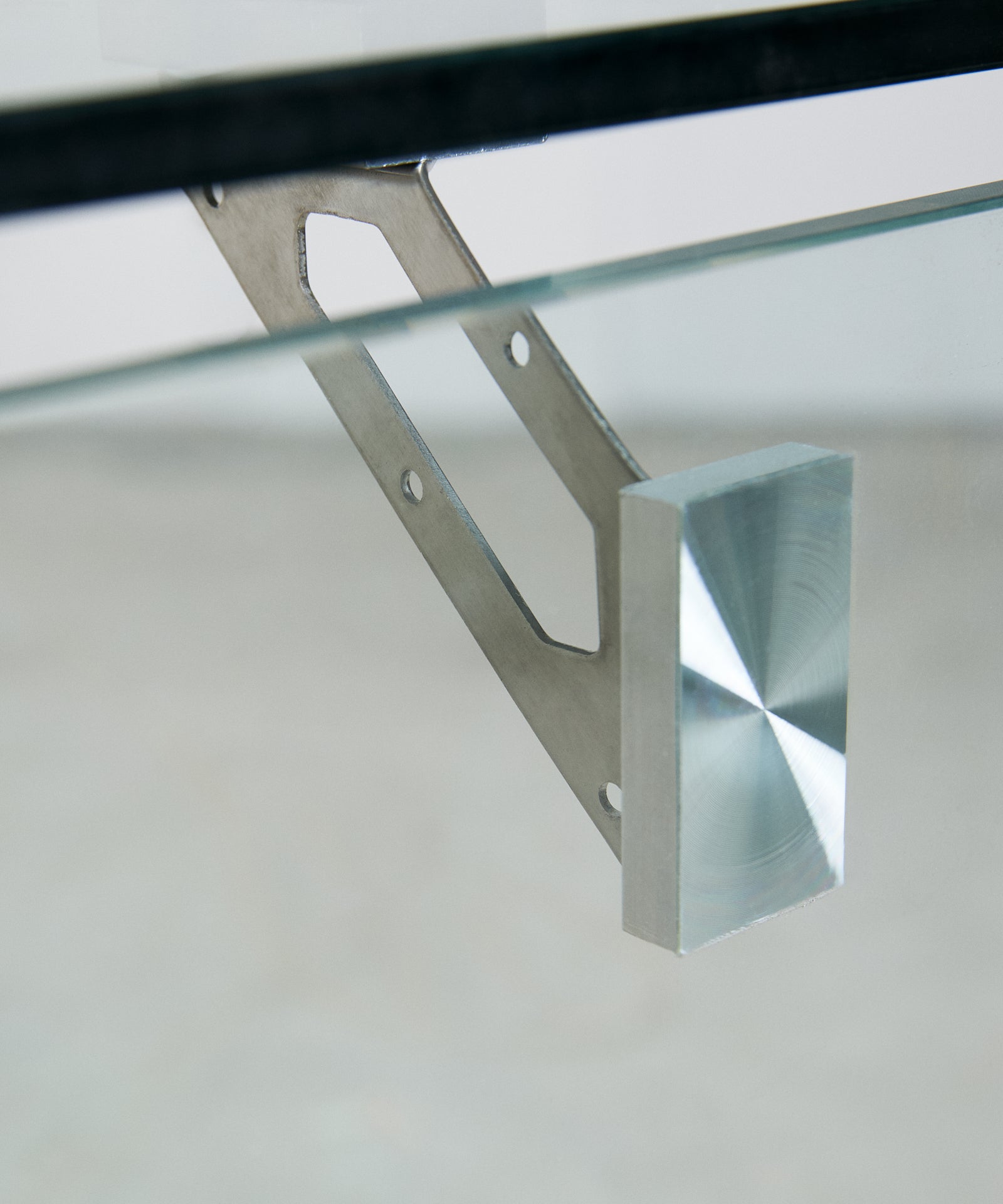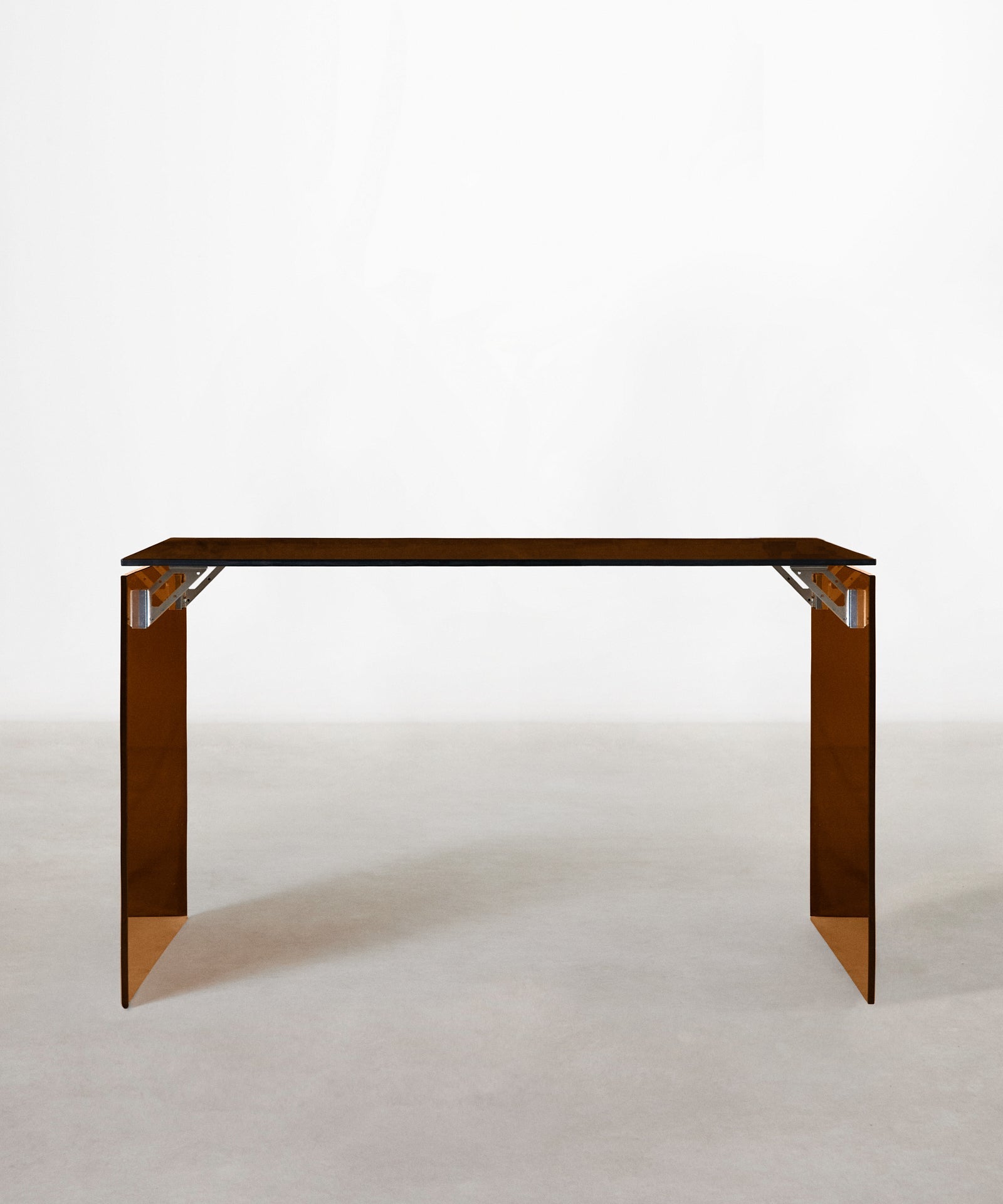 Su estructura de líneas rectas crea un efecto minimalista que encaja fácilmente en despachos, estudios o zonas de trabajo. El cristal permite que la luz fluya a través de la pieza, haciendo que el espacio se vea más amplio y despejado.