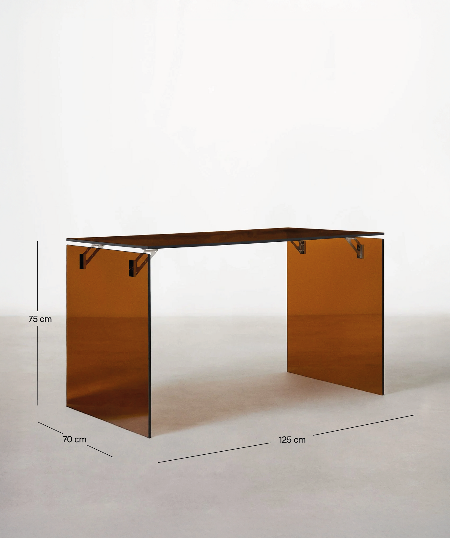 La mesa de escritorio Suri destaca por su diseño limpio y actual, ideal para espacios de trabajo modernos. Está fabricada en cristal templado, un material resistente que aporta ligereza visual y un acabado elegante.