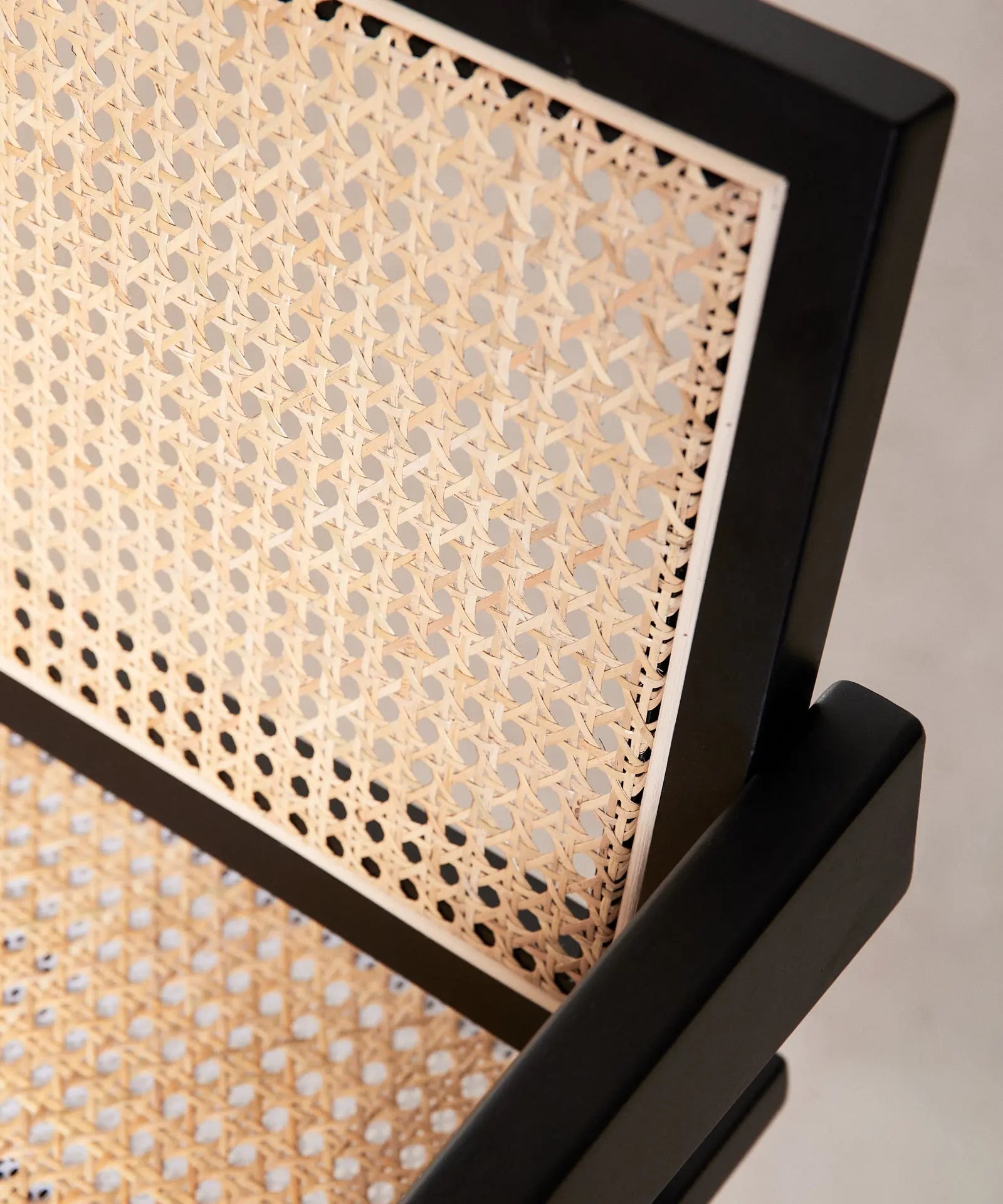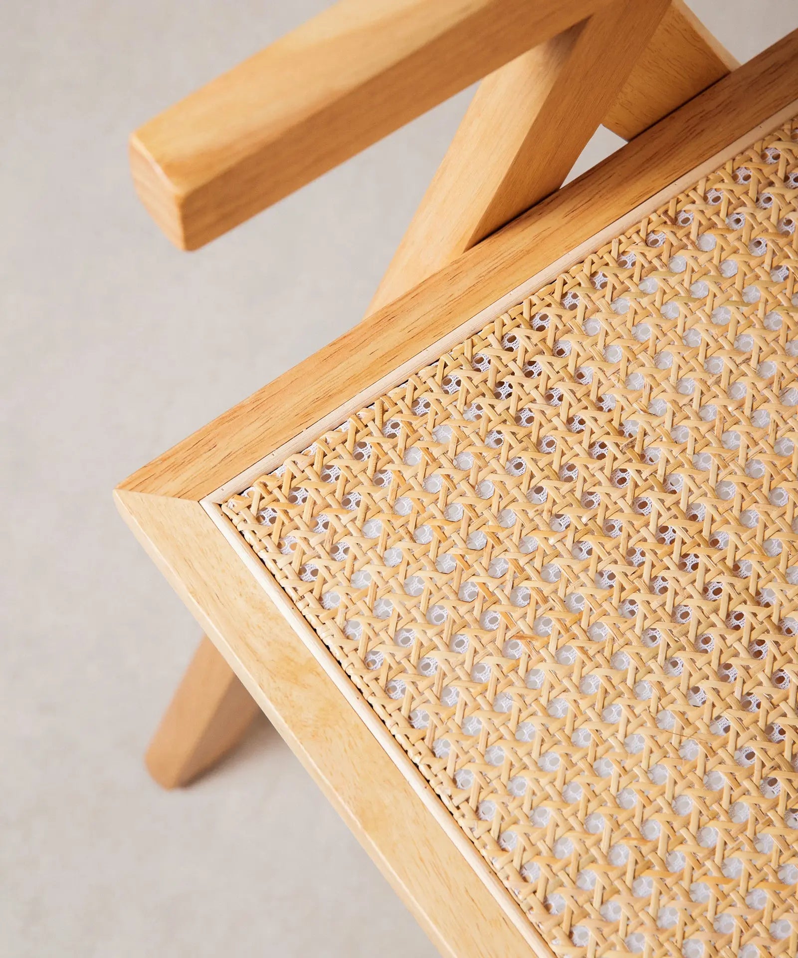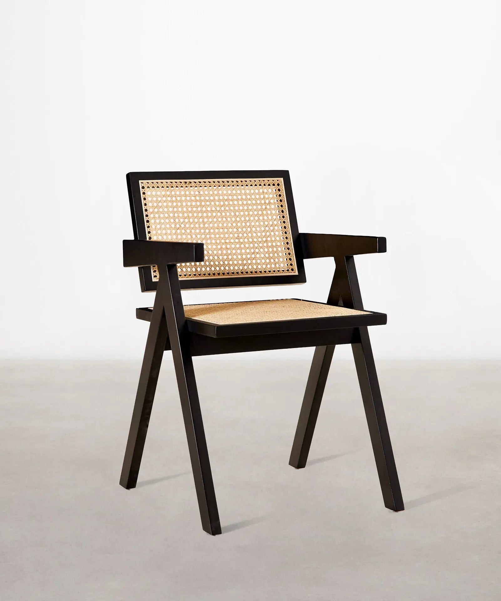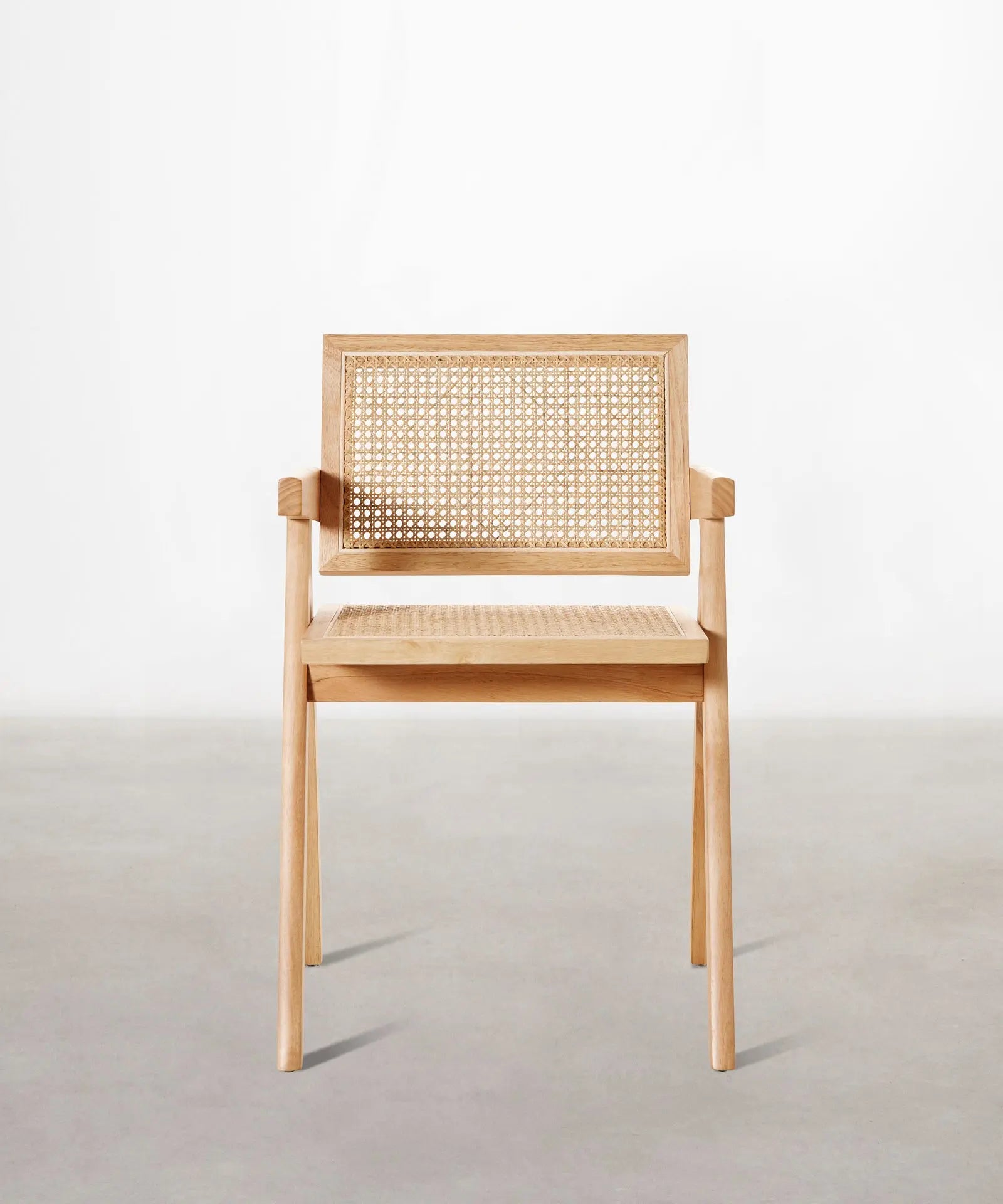Su estructura, respaldo y reposabrazos están fabricados en robusta madera de fresno natural que combina a la perfección con su asiento acabado en ratán.