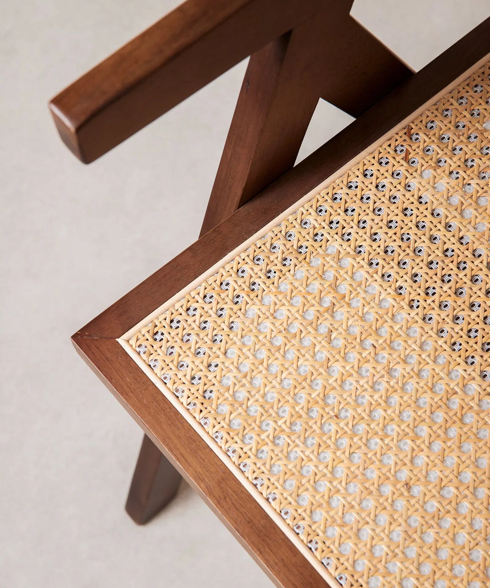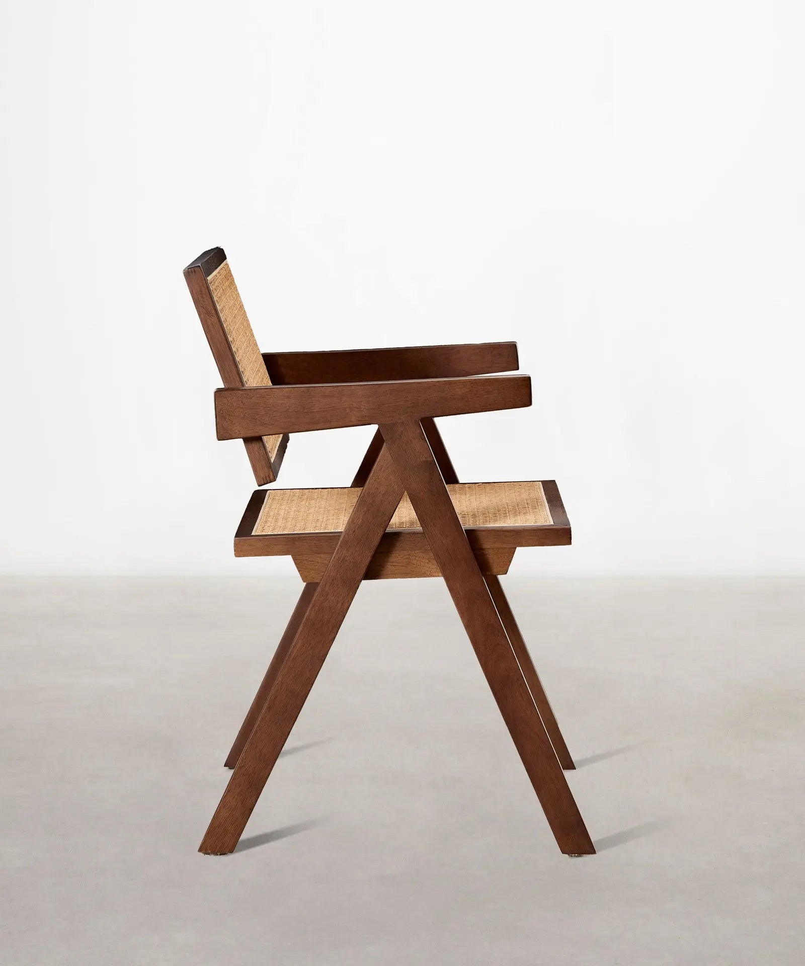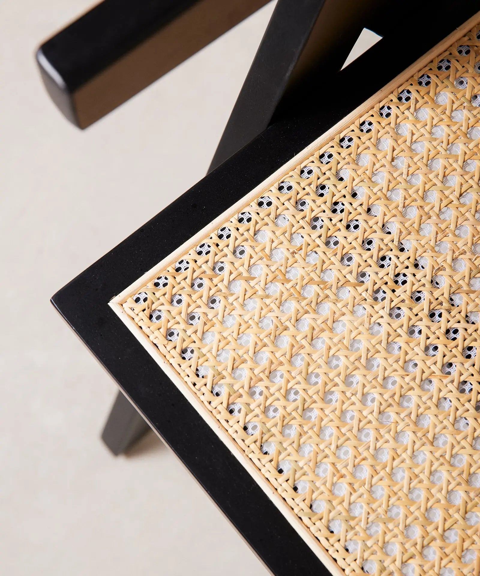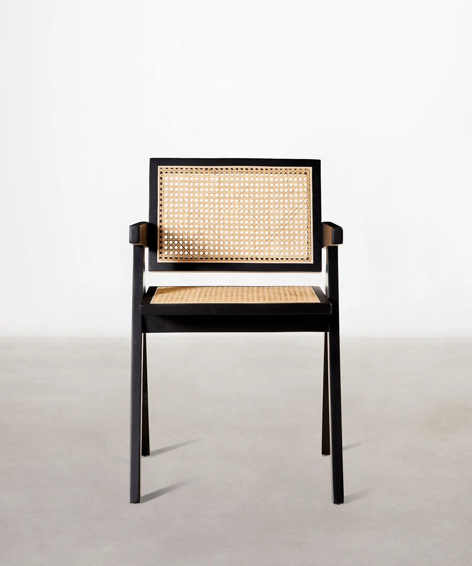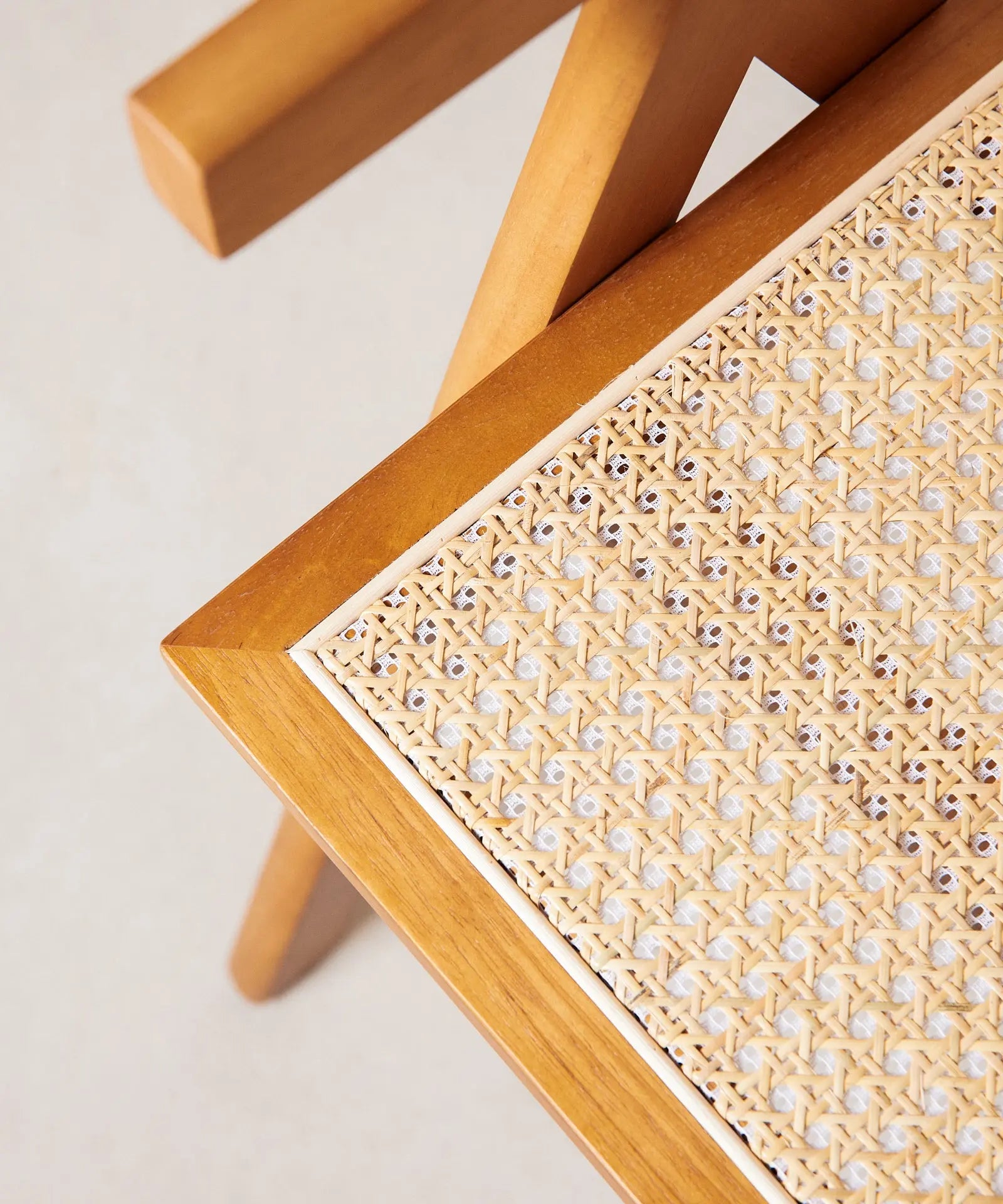 Su estructura, respaldo y reposabrazos están fabricados en robusta madera de fresno natural que combina a la perfección con su asiento acabado en ratán.