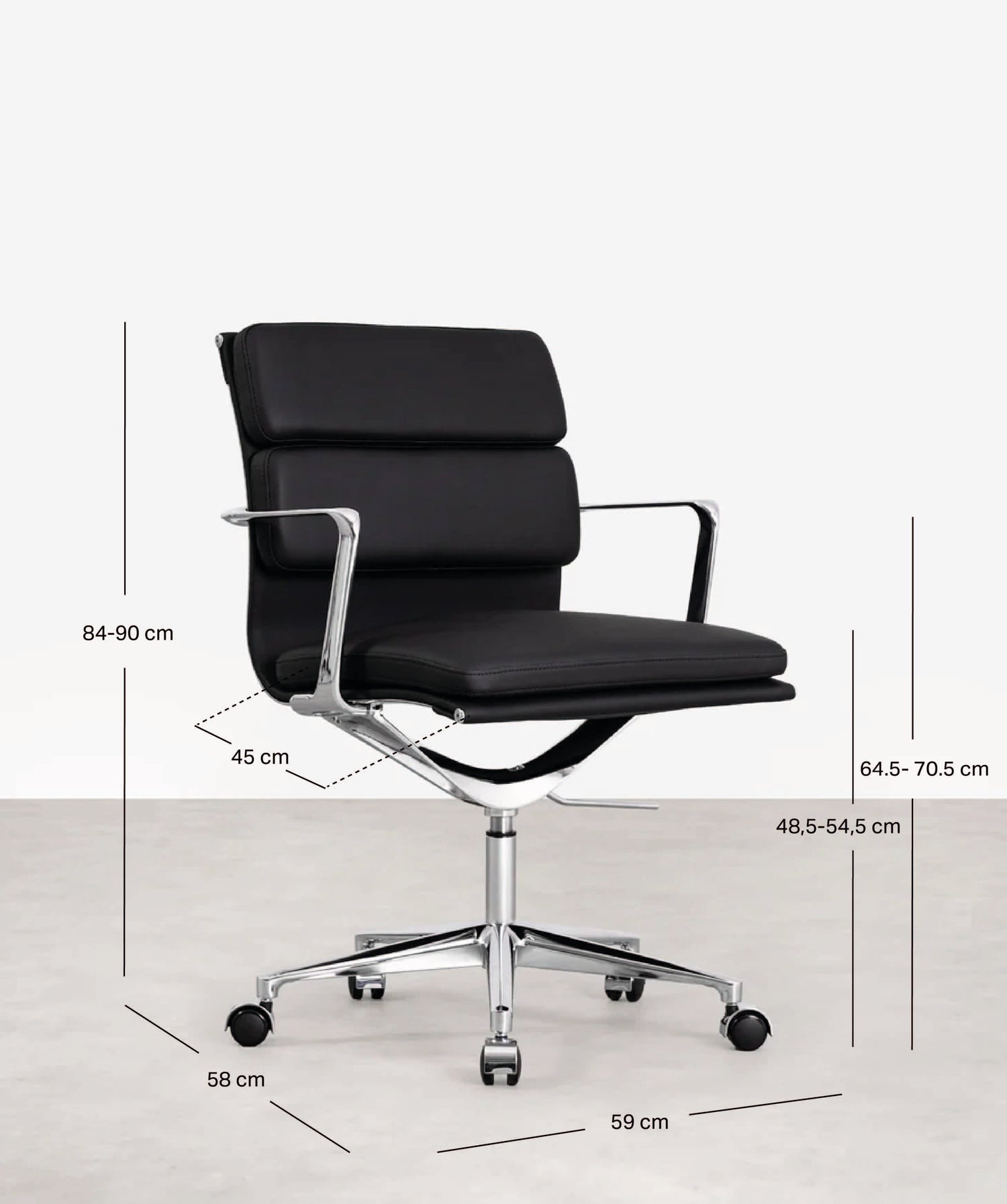 - Altura del reposabrazos: 64.5- 70.5 cm