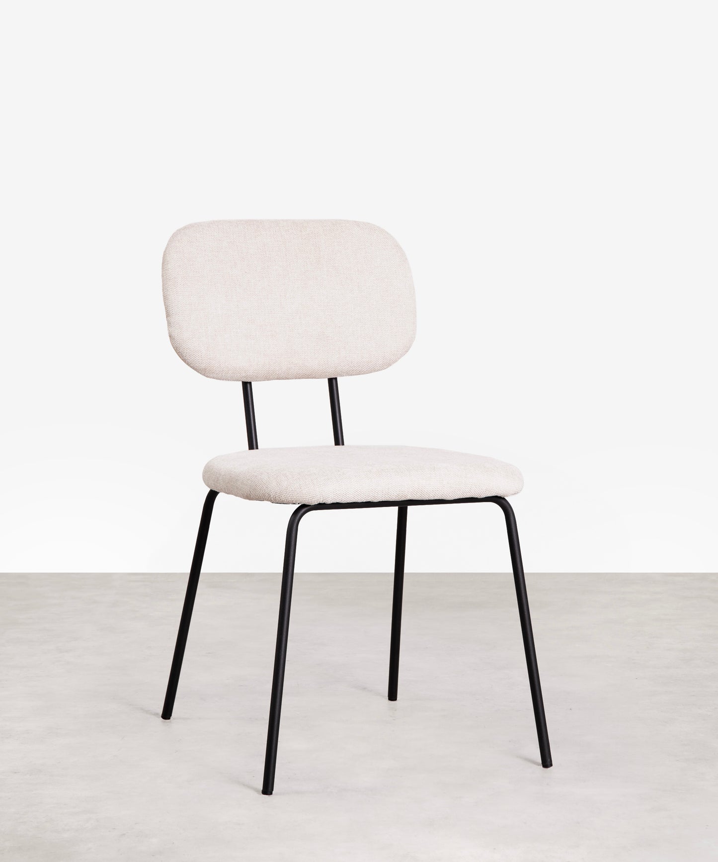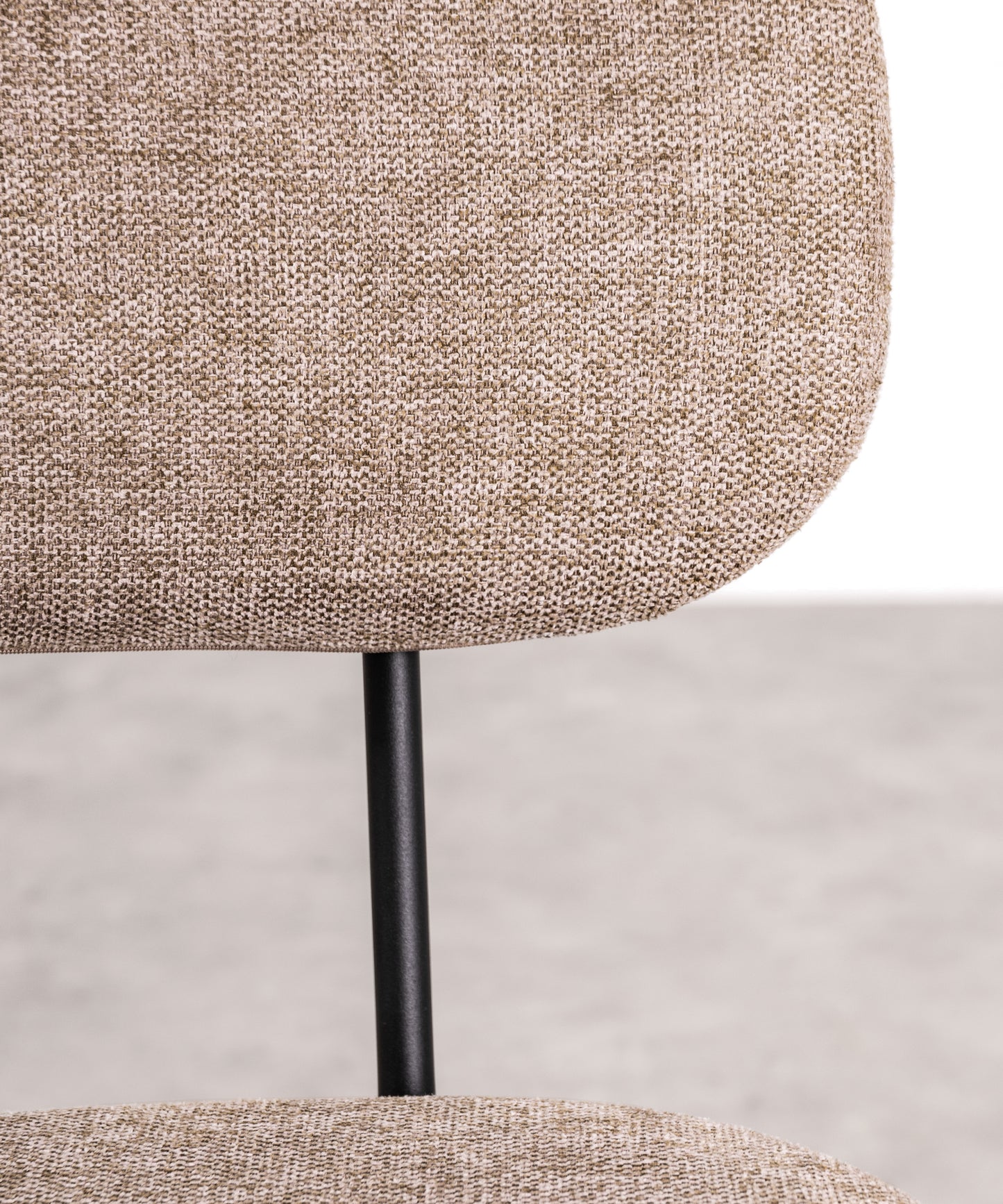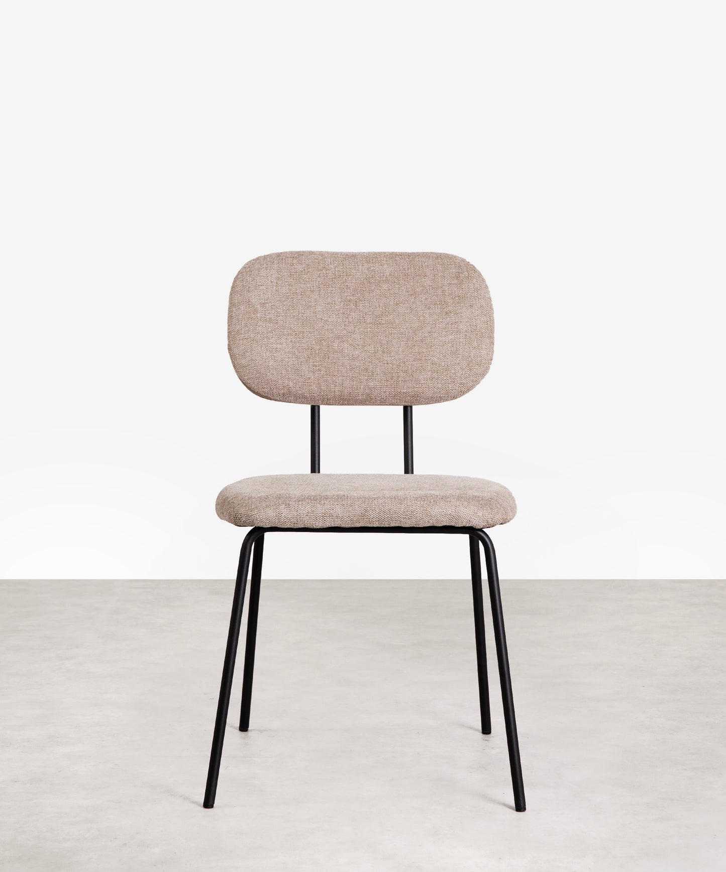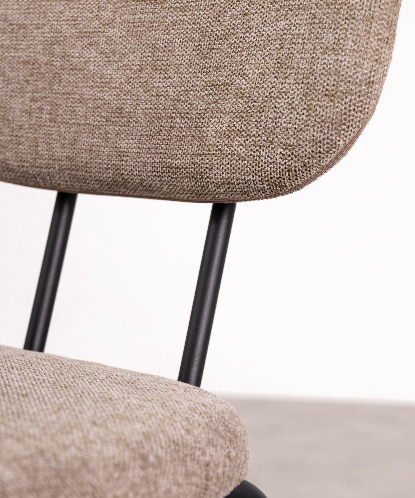 El asiento y el respaldo están tapizados en un tejido de alta calidad. No solo es agradable al tacto, sino también duradero y fácil de mantener. Las patas de metal en acabado mate ofrecen diseño, estabilidad y resistencia.