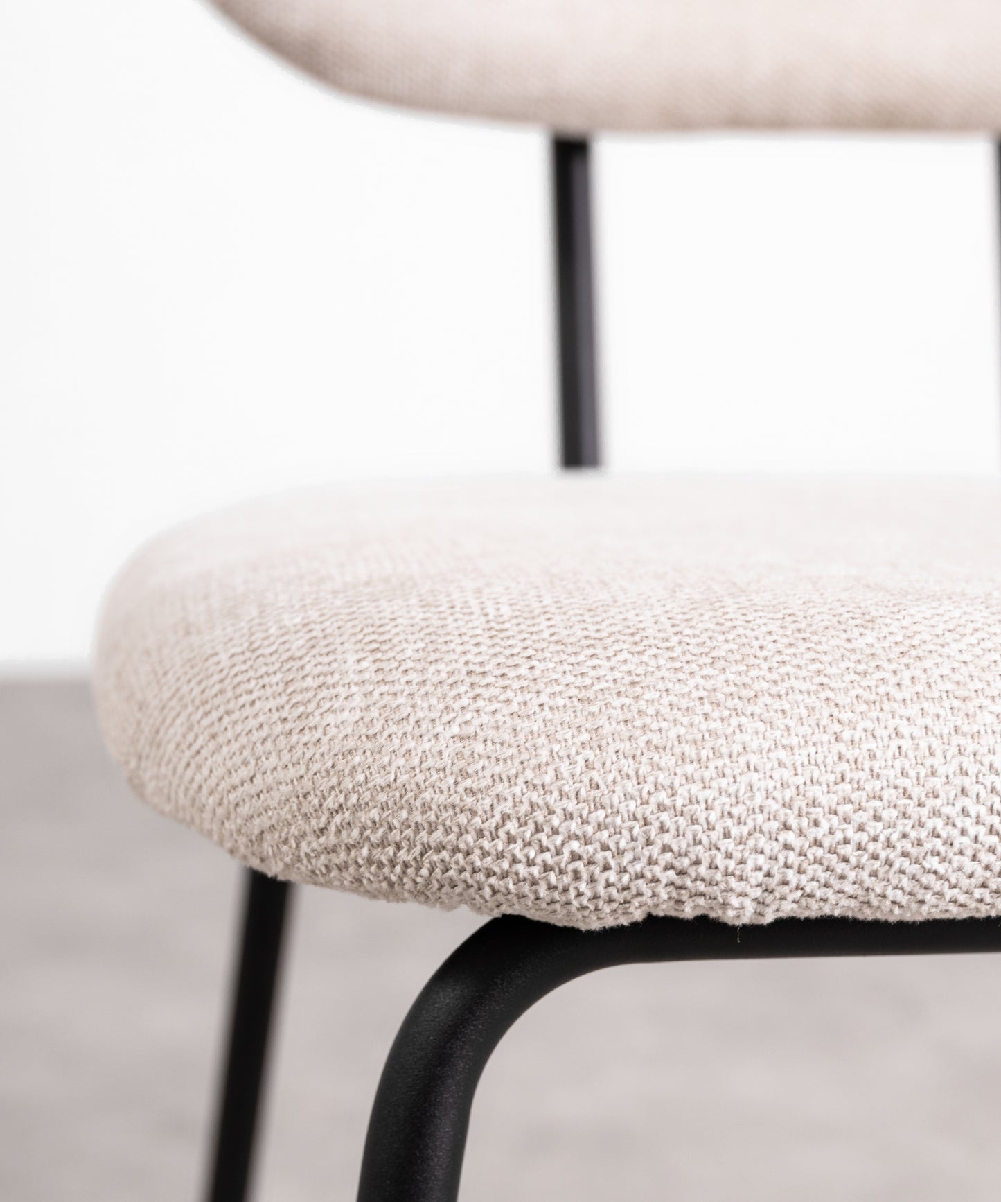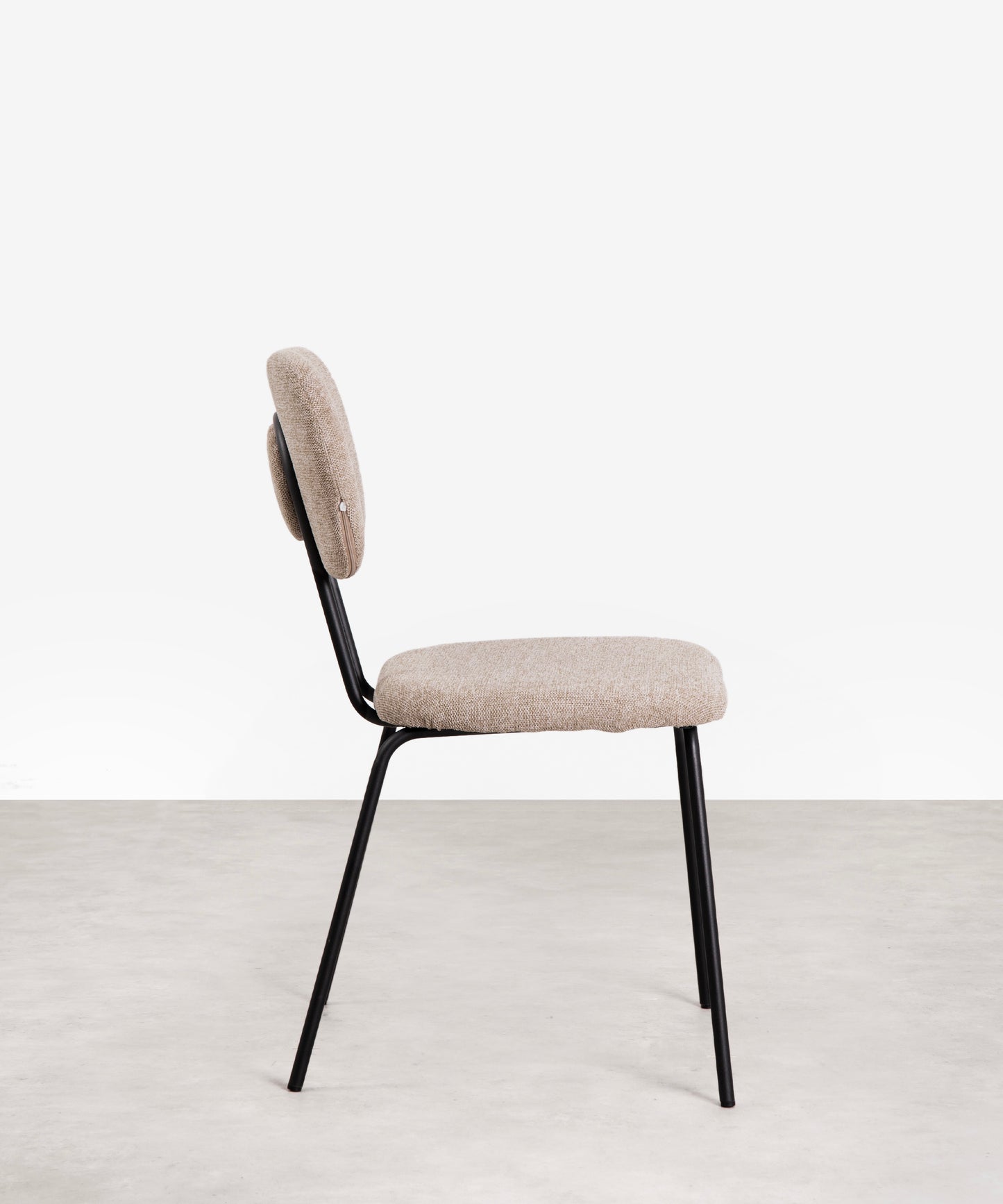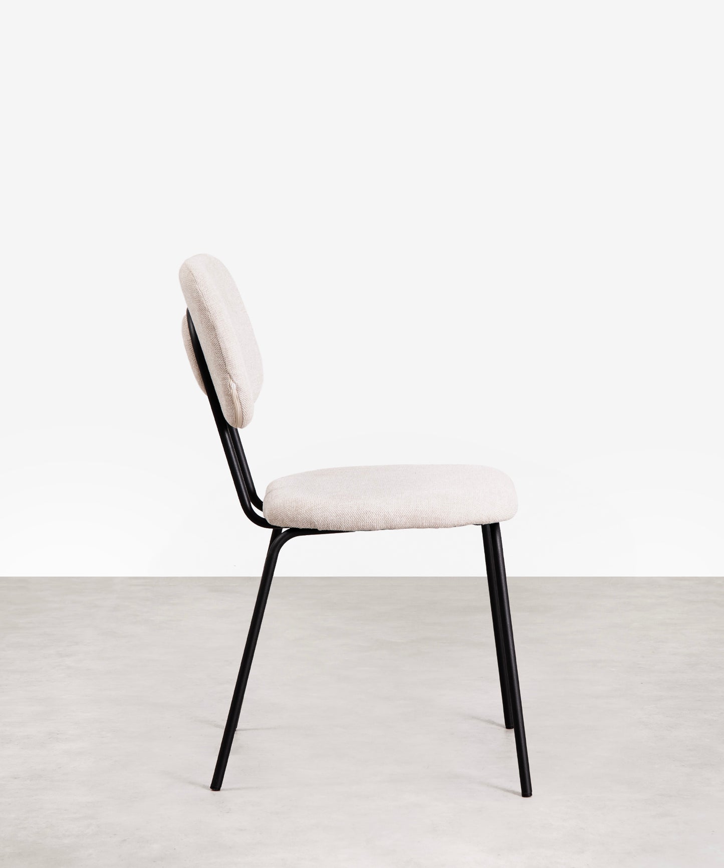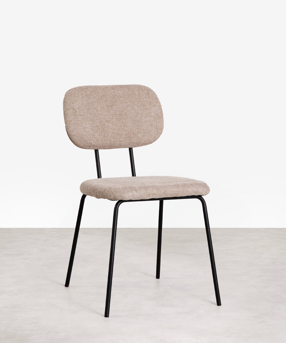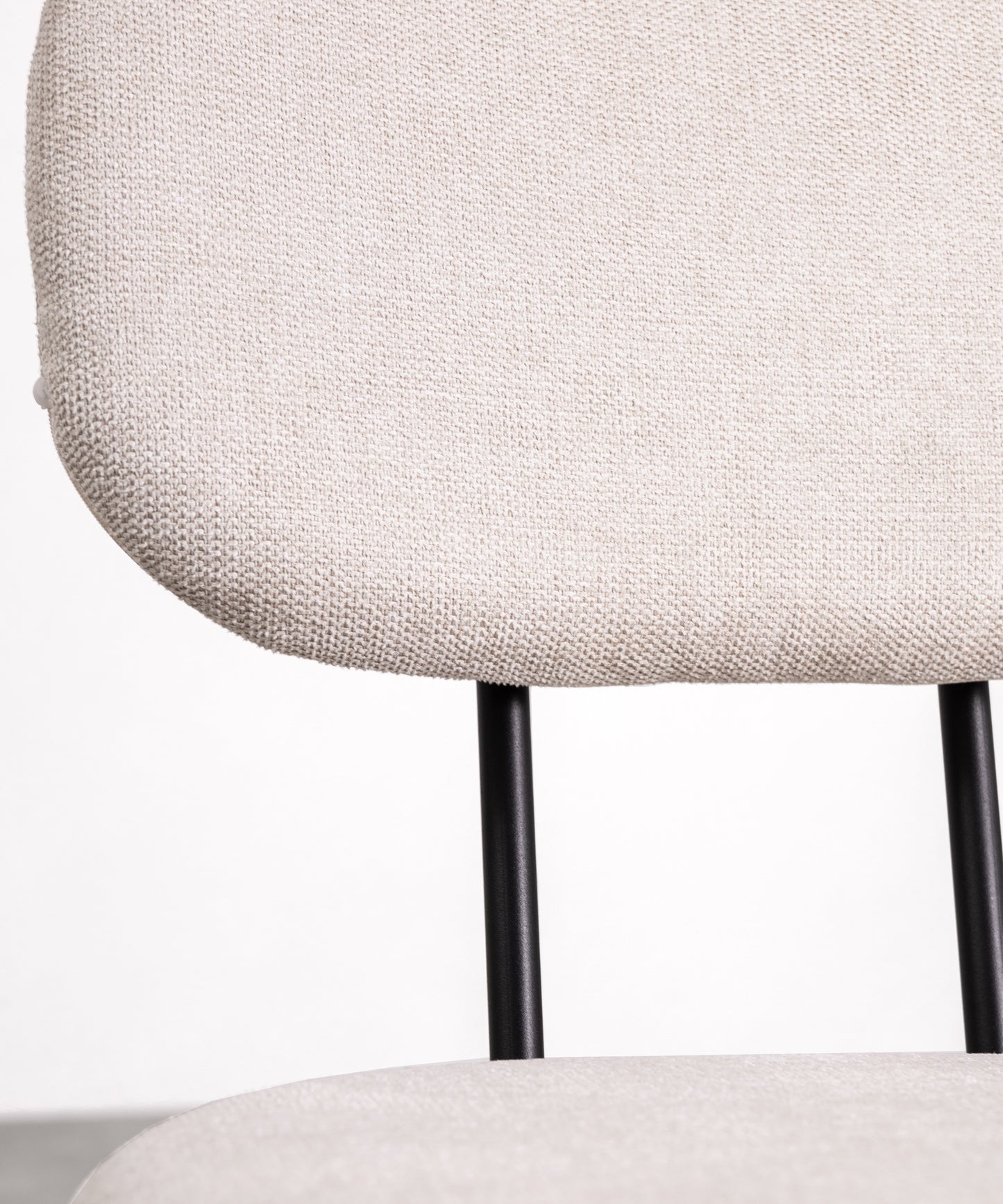 El asiento y el respaldo están tapizados en un tejido de alta calidad. No solo es agradable al tacto, sino también duradero y fácil de mantener. Las patas de metal en acabado mate ofrecen diseño, estabilidad y resistencia.