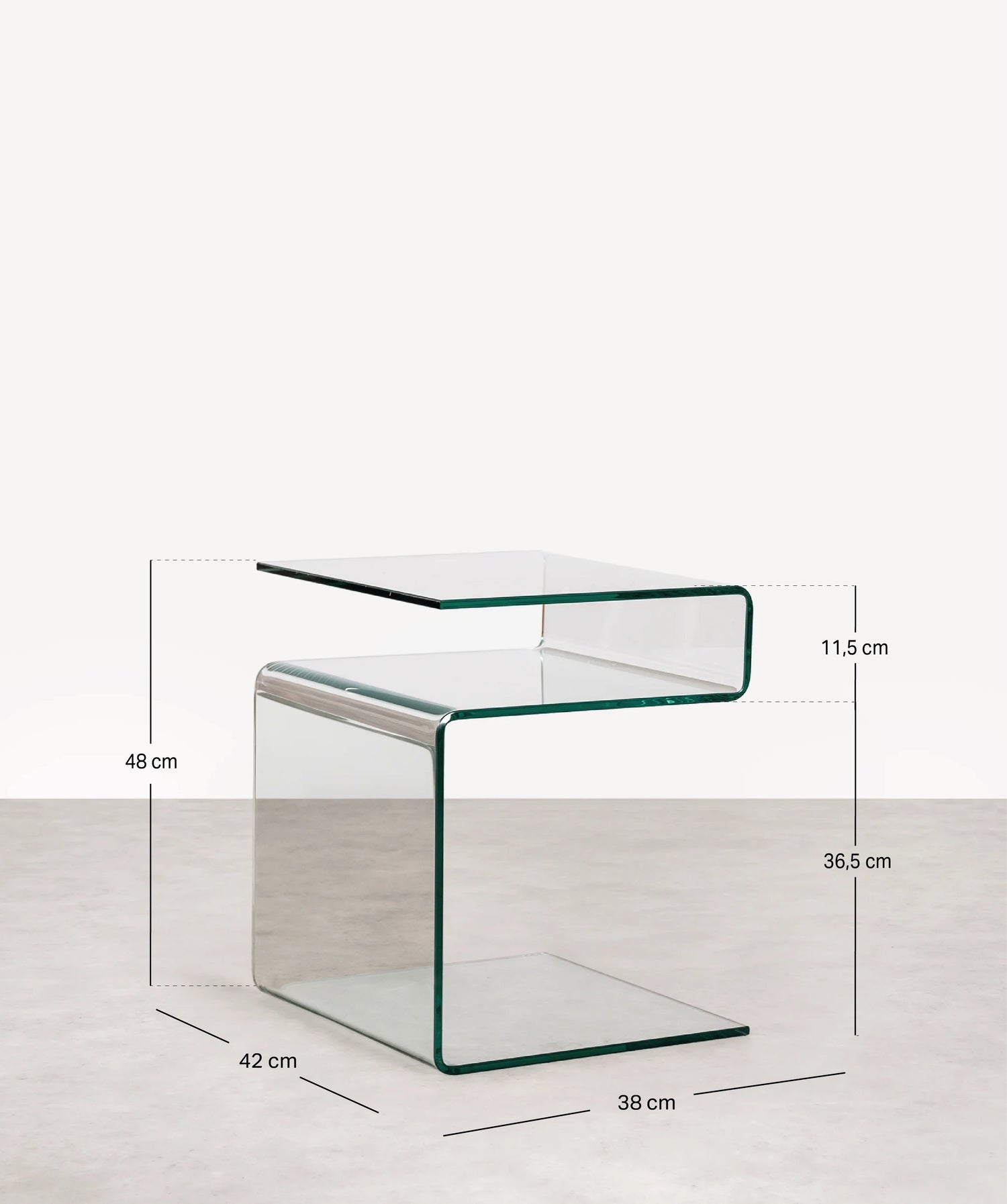 O vidro temperado confere-lhe um aspeto moderno e sofisticado, enquanto a sua forma única de "S" adiciona um toque de distinção a qualquer ambiente. Seja como mesa de cabeceira no quarto, como mesa auxiliar na sala de estar ou como elemento decorativo em qualquer espaço, a mesa auxiliar de vidro temperado Saura será o centro das atenções.