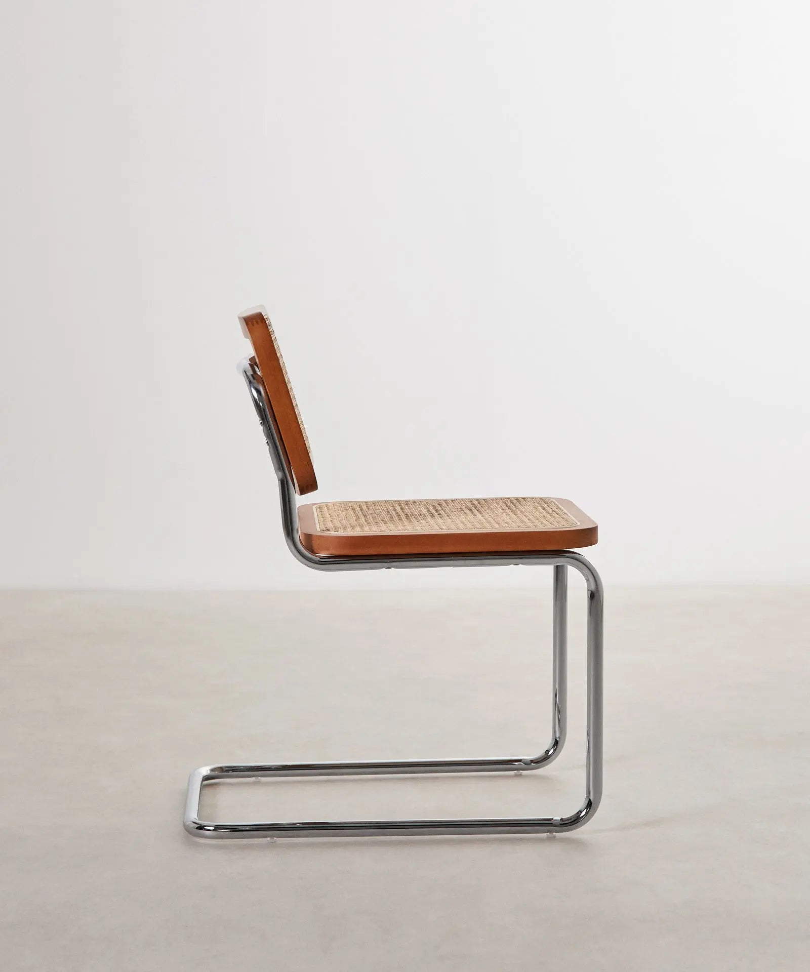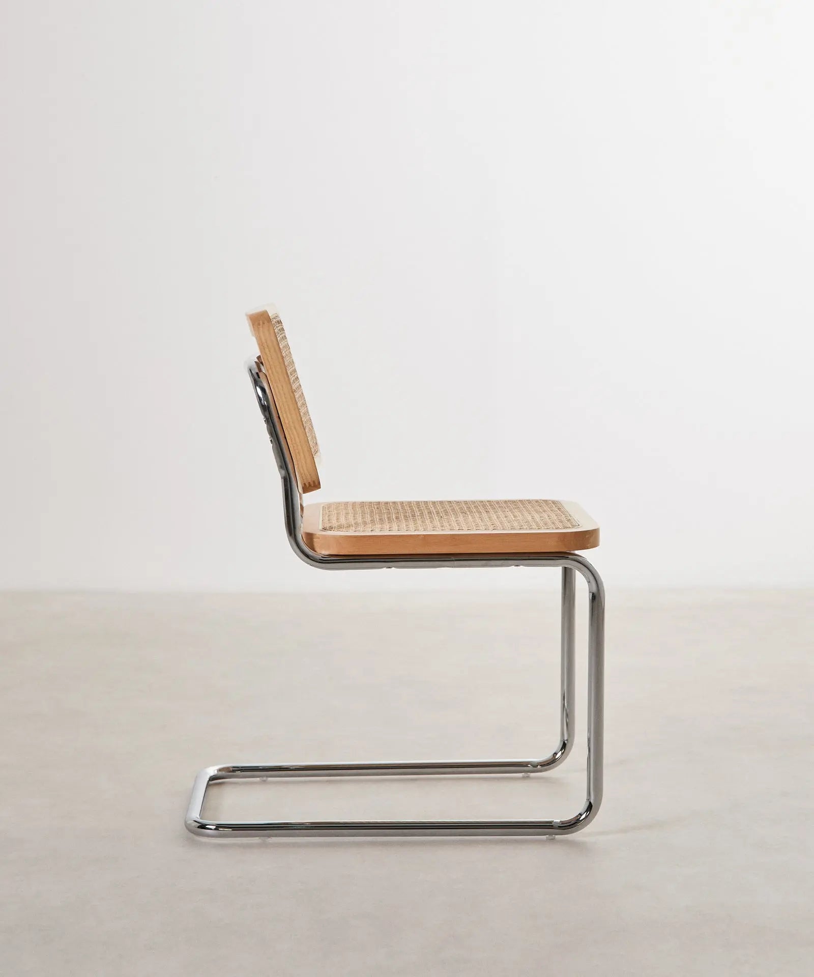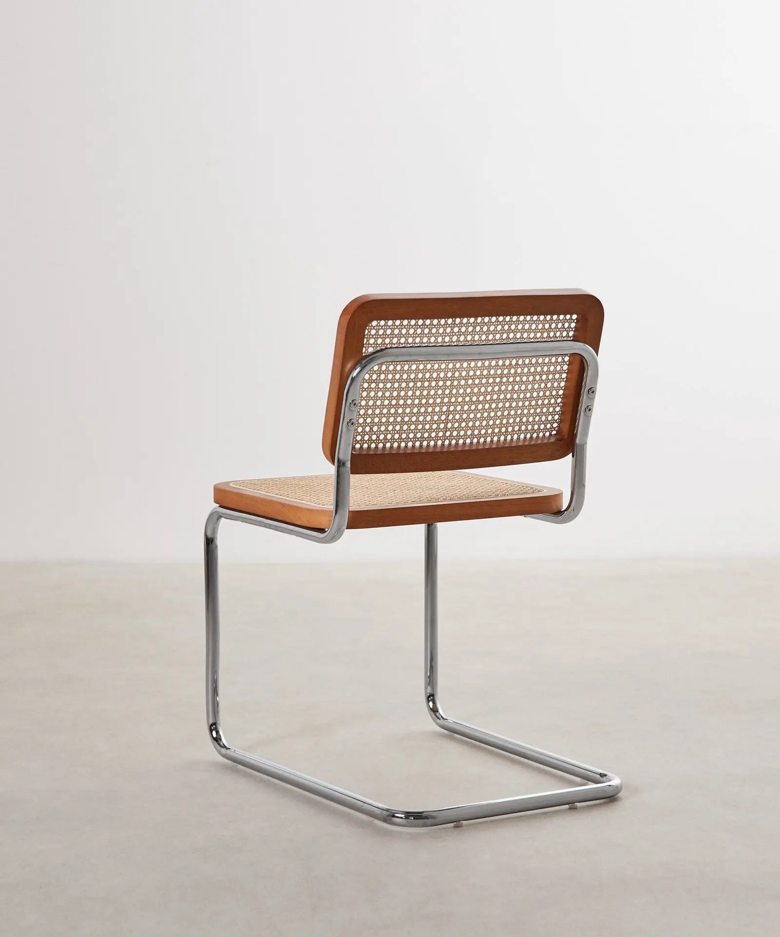Traga um toque de vindima à sua casa com a nossa Cadeira de Jantar Candela. O seu encosto e assento em madeira e rotim natural contrastam perfeitamente com as sua estrutura em aço inoxidável.