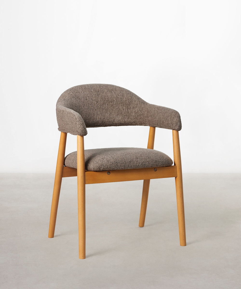 É composta por um encosto curvado e estofado em tecido macio que proporciona conforto e estilo. A Sua estrutura em madeira maciça de faia caracteriza-se por linhas limpas e robustas.