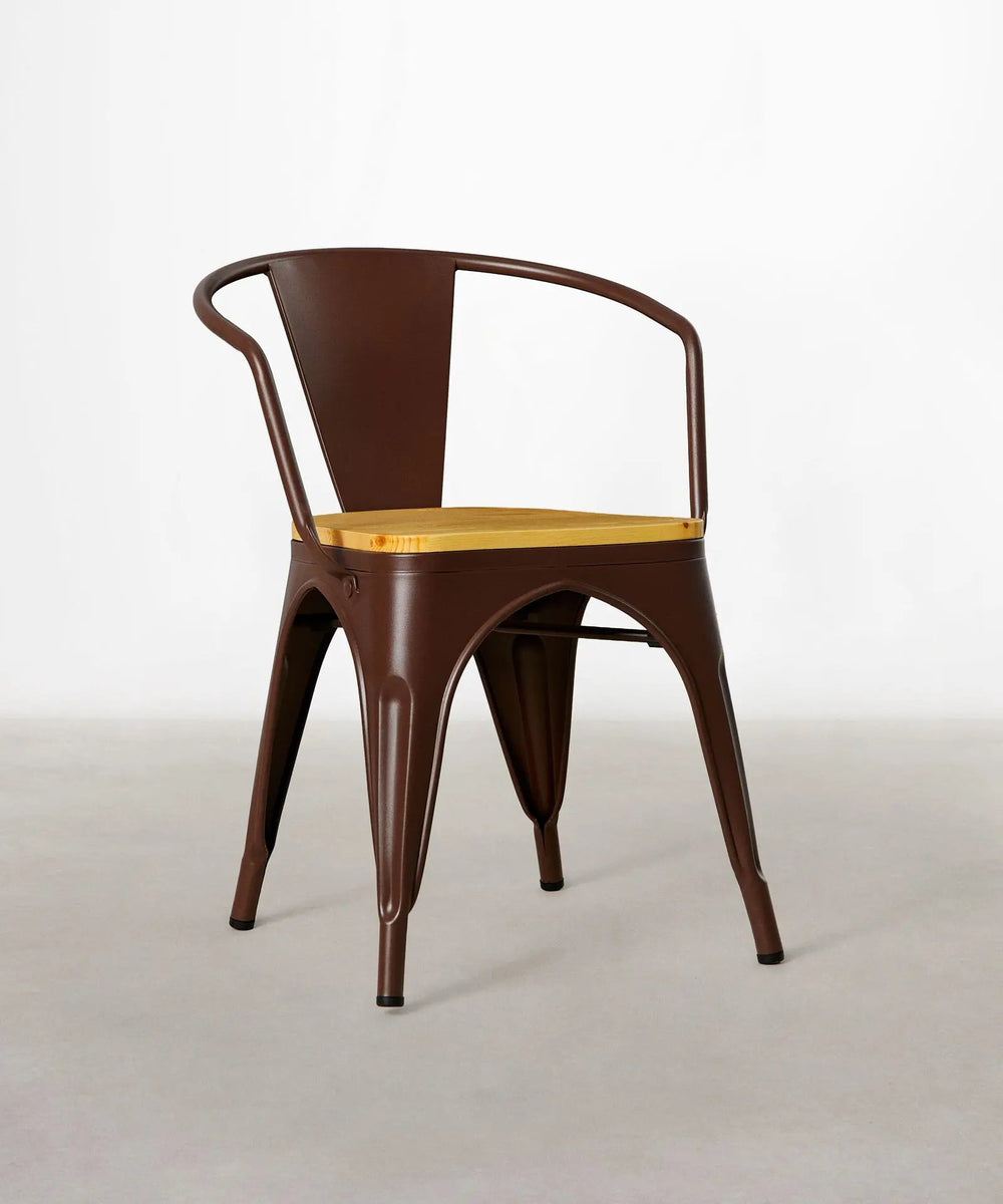 A cadeira Tolik, agora equipada com um assento de madeira e elegantes apoios de braços, adiciona calor, conforto e um toque de distinção ao seu design. Construída com aço reforçado, nossa versão da Cadeira Tolix está disponível em uma ampla gama de acabamentos e cores para que você possa encontrar a combinação perfeita que se adapta ao seu estilo e preferências.