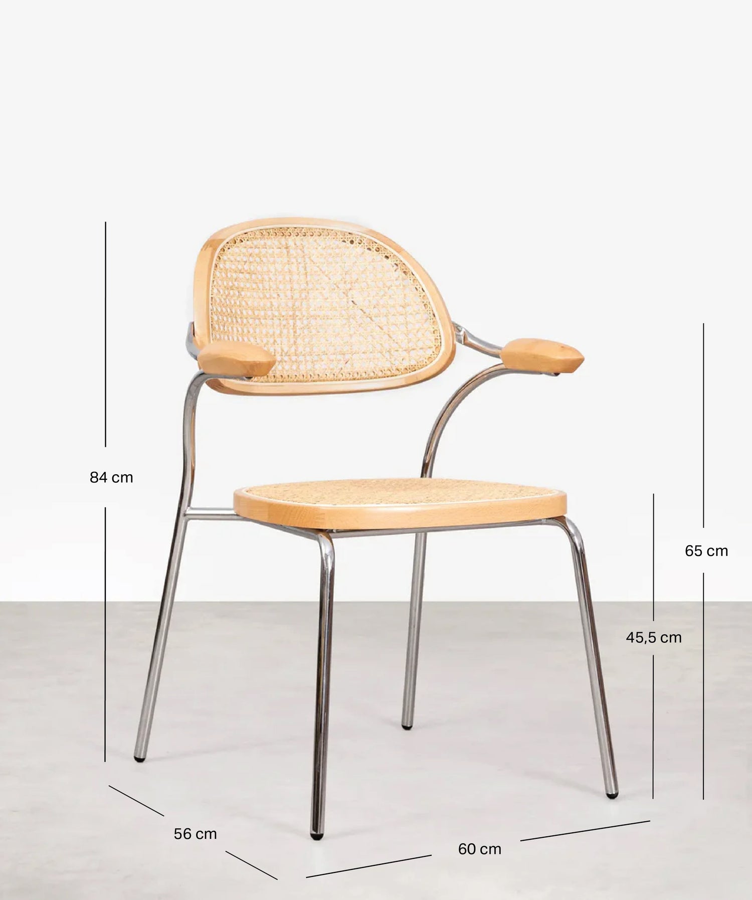 Nossa cadeira Elin é uma obra-prima em design e conforto. Com sua combinação de rattan natural no encosto e assento, madeira de faia nos braços e uma estrutura metálica cromada resistente, esta cadeira adiciona um toque de estilo natural e moderno a qualquer espaço.