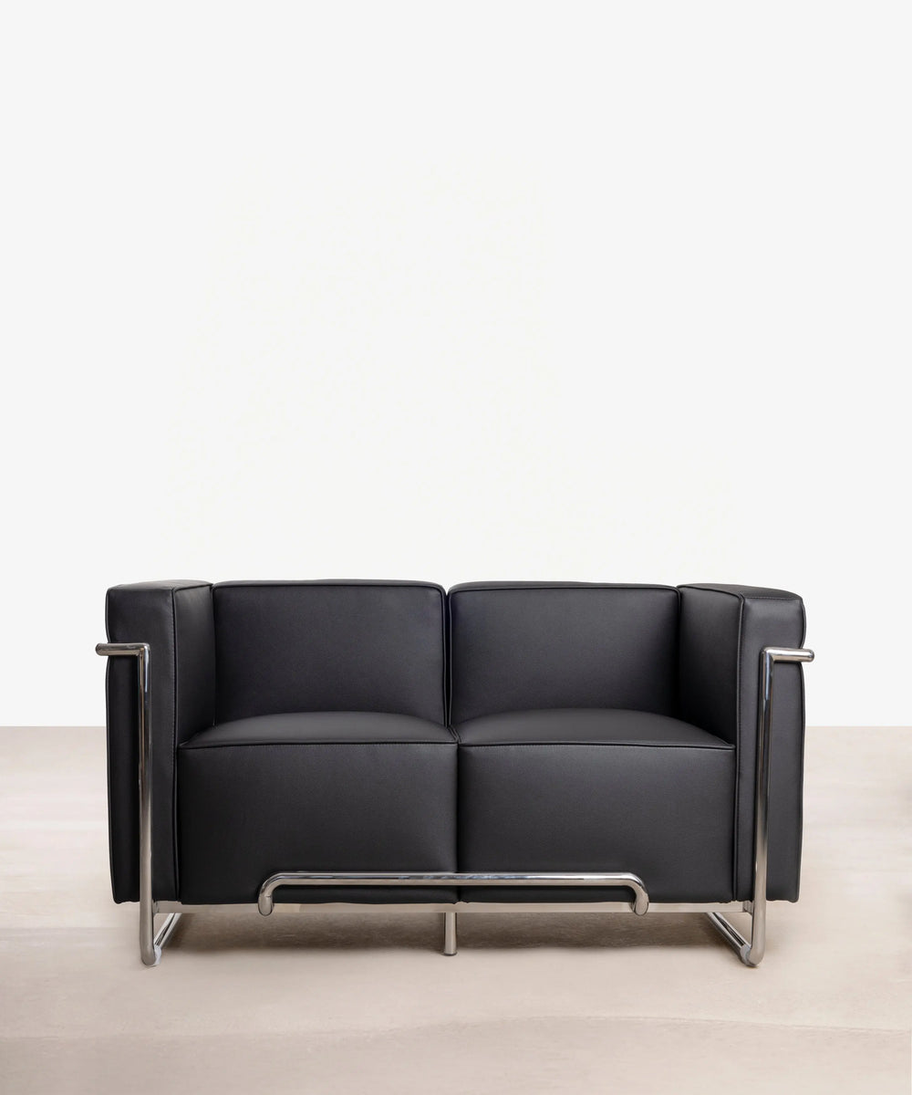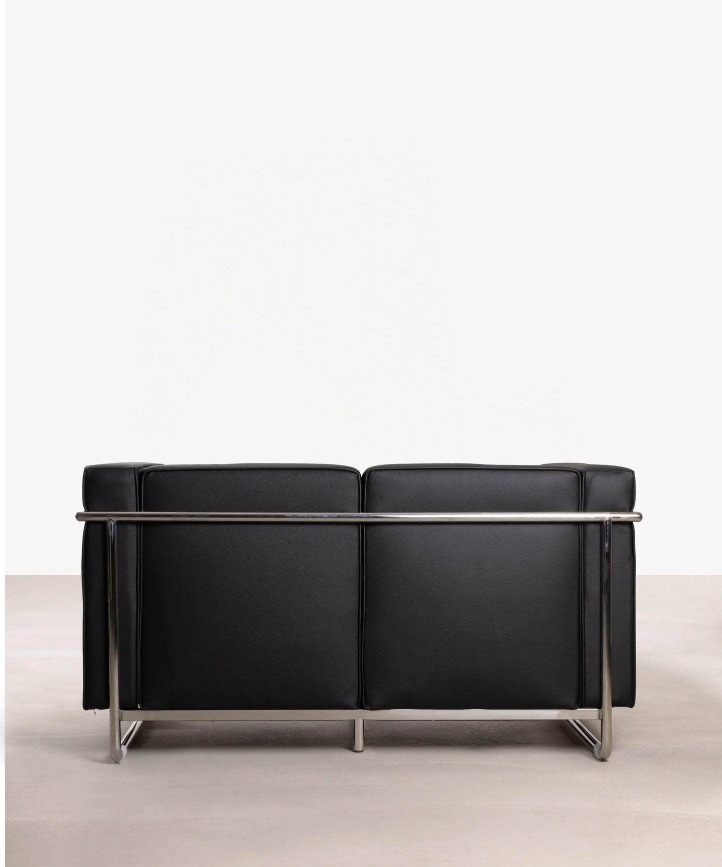 Sofá de 2 Lugares em Couro Italiano e Metal Box