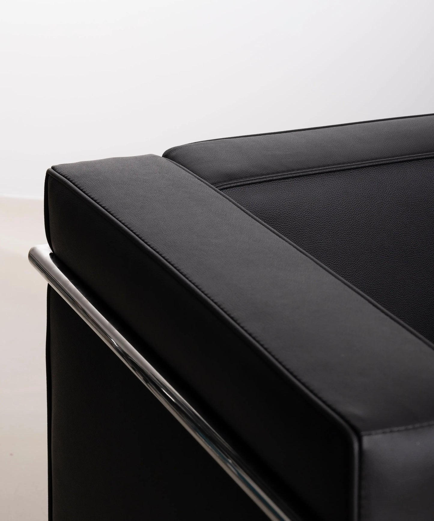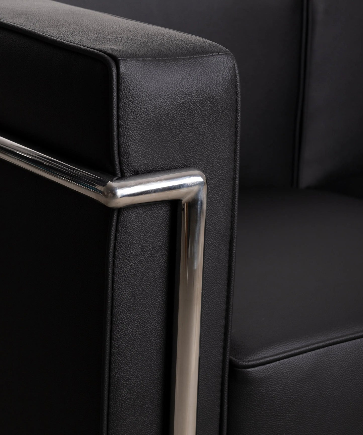 Nossa réplica está fabricada com uma estrutura tubular de aço inoxidável que sobressai da base, conseguindo um sofá moderno e com estilo graças a suas linhas simétricas.